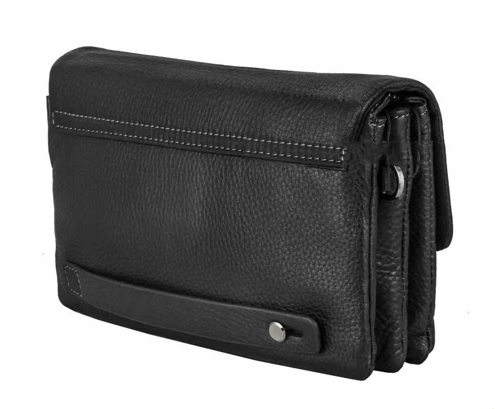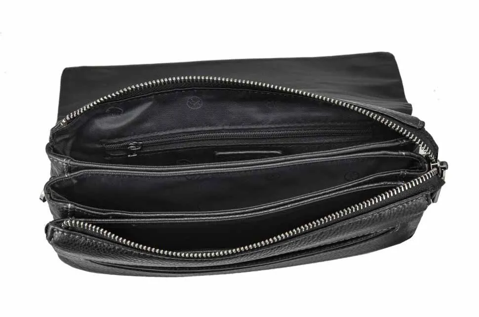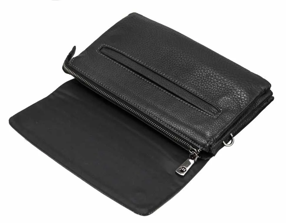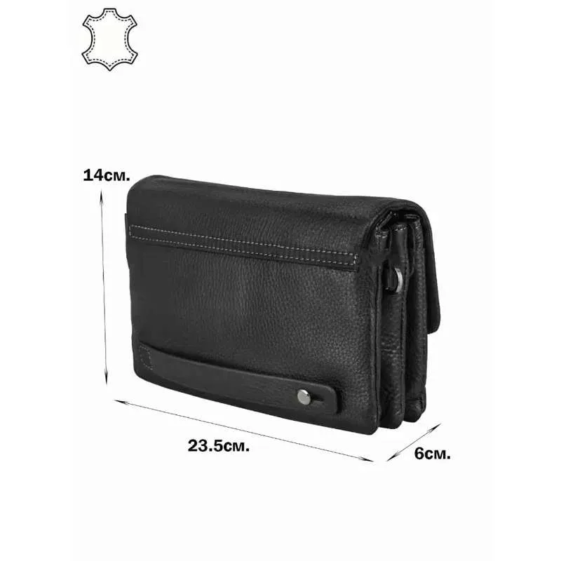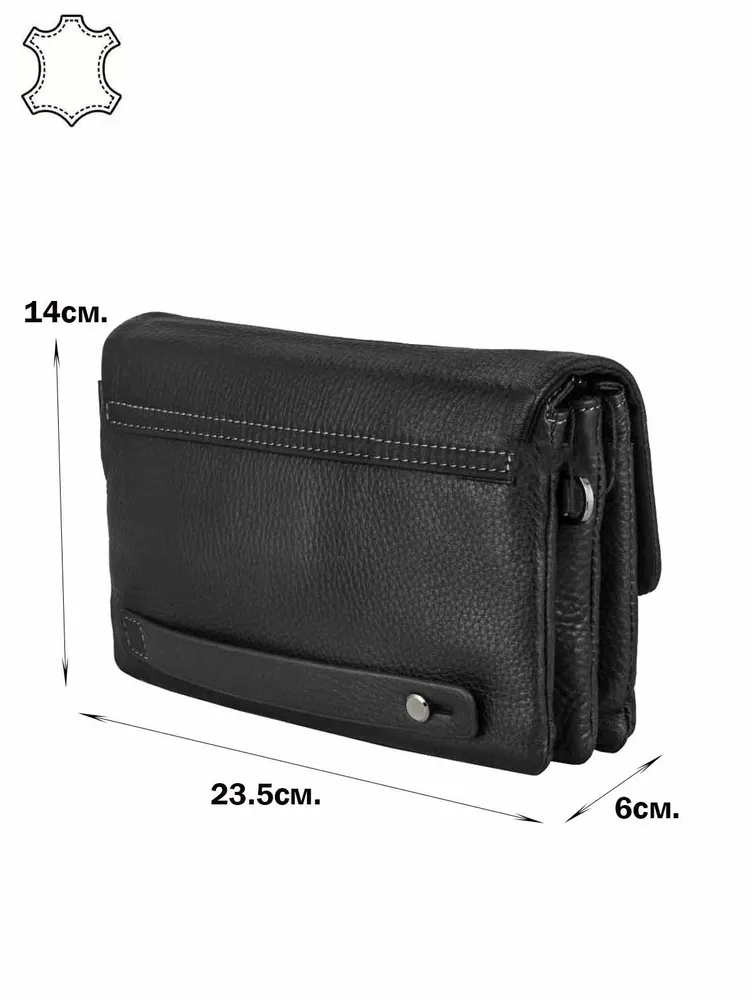 Мужской клатч – это аксессуар, который сочетает в себе функциональность и элегантность, идеально подходящий для современного мужчины. Изготовленный из натуральной кожи черного цвета, он излучает сдержанную роскошь и подчеркивает безупречный вкус своего владельца. Надежная система закрытия, состоящая из клапана с магнитными кнопками и молнии, гарантирует сохранность ваших вещей. Внутри клатча организовано три отделения, позволяющих удобно разместить все необходимое: от телефона и кошелька до документов и ключей. Боковые кармашки, один на молнии и один открытый, обеспечивают быстрый доступ к самым важным мелочам. Три кармашка для пластиковых карт позволяют держать их всегда под рукой, избавляя от необходимости носить с собой громоздкий кошелек. Под клапаном расположен врезной карман, который идеально подходит для хранения билетов, чеков или других небольших предметов, которые могут понадобиться в любой момент. Снаружи, на оборотной стороне, расположен захват для руки, обеспечивающий удобство и уверенность при ношении клатча в руке. Сумка комплектуется съемной ручкой на запястье, позволяющей носить клатч как браслет, освобождая руки. Для тех, кто предпочитает более традиционный способ ношения, в комплекте предусмотрен съемный текстильный ремень, который позволяет носить клатч на плече или через плечо, обеспечивая максимальный комфорт и свободу движений. Этот клатч станет незаменимым аксессуаром для мужчины, ценящего стиль, комфорт и практичность. . Размеры: ширина - 23.5 см, высота - 14 см, глубина - 6 см.3010