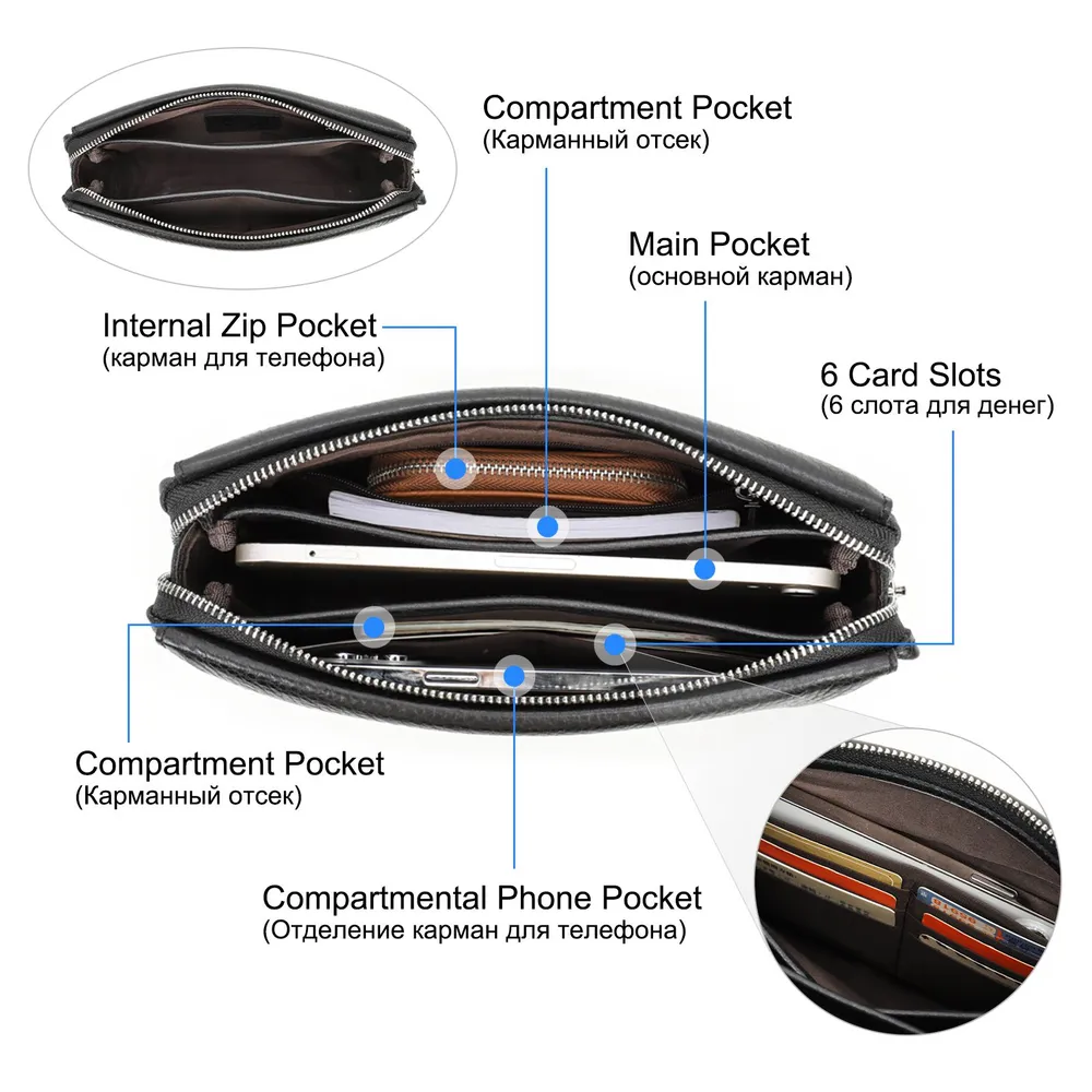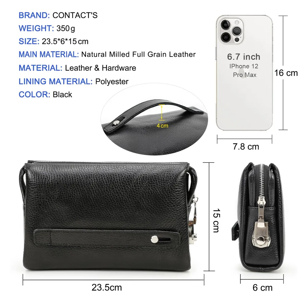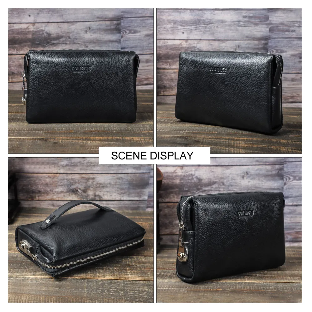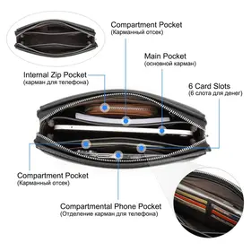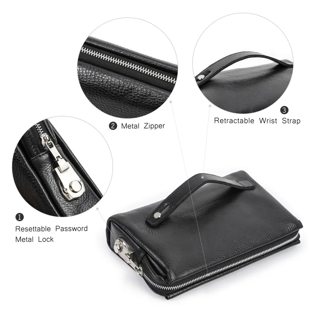 **Кожаный клатч с кодовым замком для защиты вашей конфиденциальности** Этот стильный клатч из натуральной кожи идеально сочетает в себе элегантность и практичность. Благодаря высококачественным материалам и продуманному дизайну, он станет вашим надёжным спутником в повседневной жизни, на деловых встречах, в путешествиях и любых других ситуациях. **Антипиратский дизайн** Клатч оснащён комбинированным кодовым замком, который защищает вашу личную информацию и предотвращает несанкционированный доступ к содержимому. Пароль замка можно легко сбросить и изменить, обеспечивая дополнительную безопасность ваших вещей. **Высококачественные кожаные материалы** Клатч изготовлен из натуральной коровьей кожи премиального качества. Мягкая, тонкая, с лёгким блеском, кожа не только эстетична, но и устойчива к царапинам, что делает её долговечной и простой в уходе. Идеальный выбор для деловых встреч, путешествий, активного отдыха и повседневного использования. **Размеры и удобство** Размеры: 23,5 x 6 x 15 см Вес: 350 г Клатч лёгкий и стильный, оснащён удобным браслетом на обратной стороне, что делает его особенно комфортным для ношения в руке. Отлично подходит для работы, путешествий и других мероприятий. **Большая вместимость** - 6 слотов для карт - 1 основной карман - 2 отделения с перегородками - Отдельный карман для мобильного телефона - Внутренний карман на молнии Мужской клатч легко вмещает смартфон (включая iPhone 12 Pro Max), карты, наличные деньги, монеты, квитанции и даже сигареты, при этом оставаясь компактным и удобным для использования. Все ваши необходимые вещи всегда под рукой! Этот кожаный клатч — идеальное сочетание стиля, комфорта и функциональности, который добавит элегантности в ваш образ и станет незаменимым аксессуаром для каждого дня.
