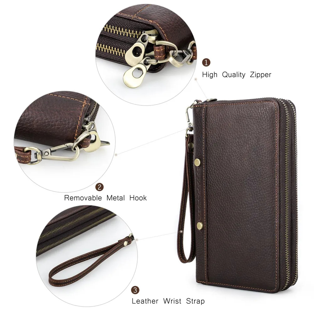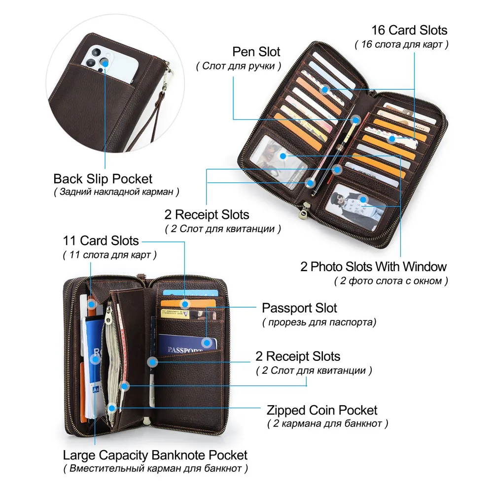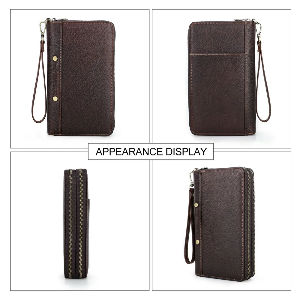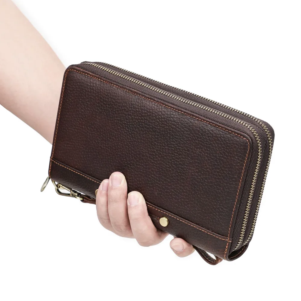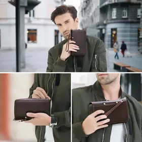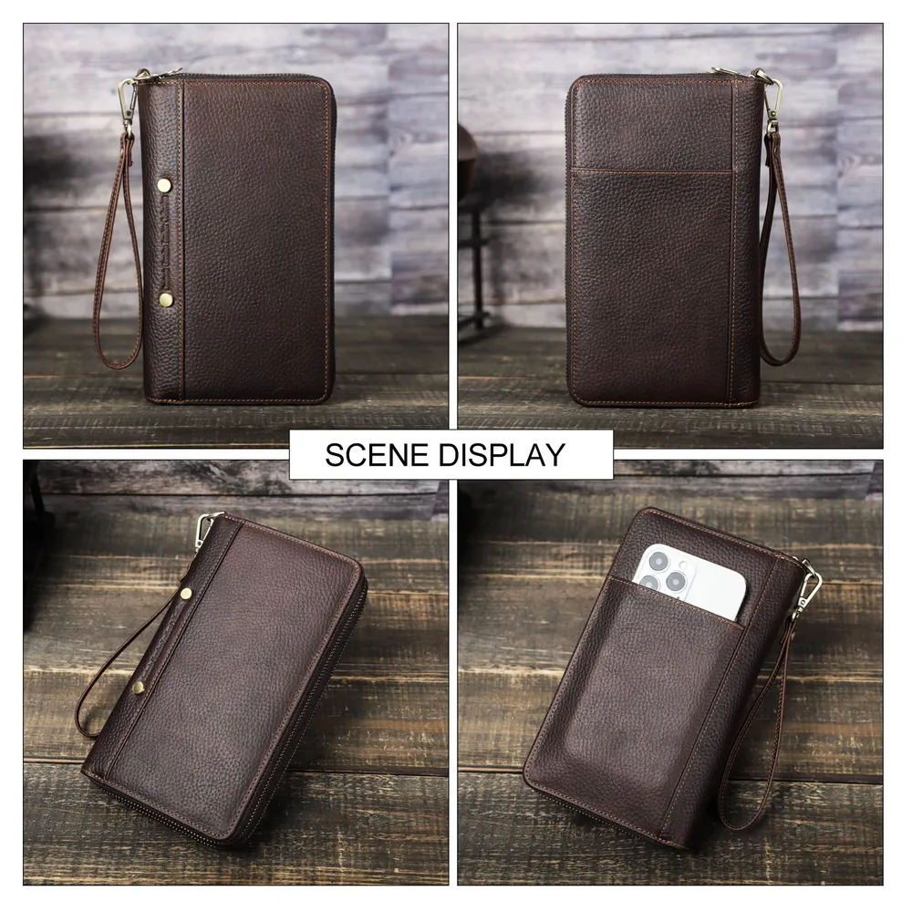 ### Клатч из натуральной кожи для мужчин **Описание продукта:** Представляем вашему вниманию стильный клатч из натуральной кожи, который идеально подходит для современного мужчины. Этот аксессуар не только удобен, но и выглядит элегантно благодаря своему кофейному цвету и высококачественному полному зерну кожи. **Характеристики:** - **Размеры:** 12.5 см (длина) × 4 см (ширина) × 21.5 см (высота) - **Вес:** 435 г - **Материал:** Полнозернистая натуральная кожа - **Удобные ручки:** Клатч оснащен ручкой для комфортного ношения в руке. - **Ёмкость для карт:** Внутри предусмотрено 27 карманов для карт, что позволяет удобно разместить все ваши кредитные и визитные карты. - **Затяжной карман для наличных:** Зipper-отделение для наличных обеспечивает безопасность ваших финансов. - **Отделение для телефона:** Вместительное отделение, подходящее для смартфонов с большим экраном, делает этот клатч идеальным выбором для повседневного использования. - **Фотокарман:** Два кармана для фотографий позволят вам хранить близких вам людей всегда рядом. - **Дополнительные карманы:** Есть отдельный карман для ручки и отделение для паспорта. **Заключение:** Этот клатч из натуральной кожи — отличный выбор для тех, кто ценит качество и стиль. Он станет незаменимым помощником в повседневной жизни, позволяя вам организовать все необходимые вещи в одном месте. Подчеркните свою индивидуальность с этим элегантным и практичным аксессуаром!