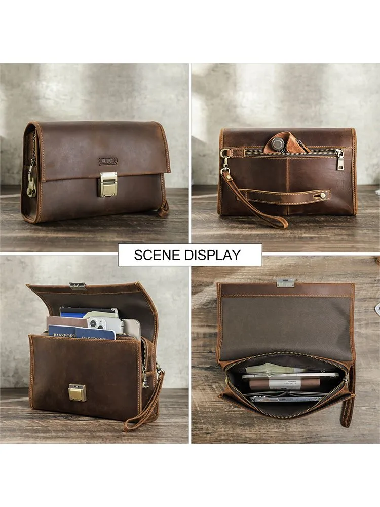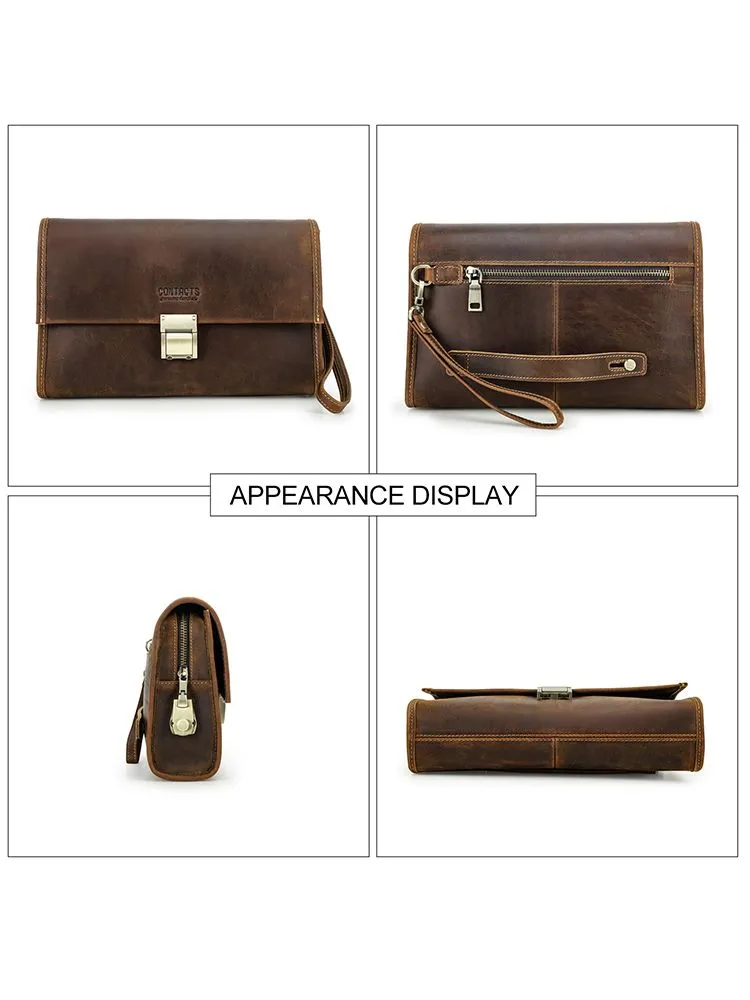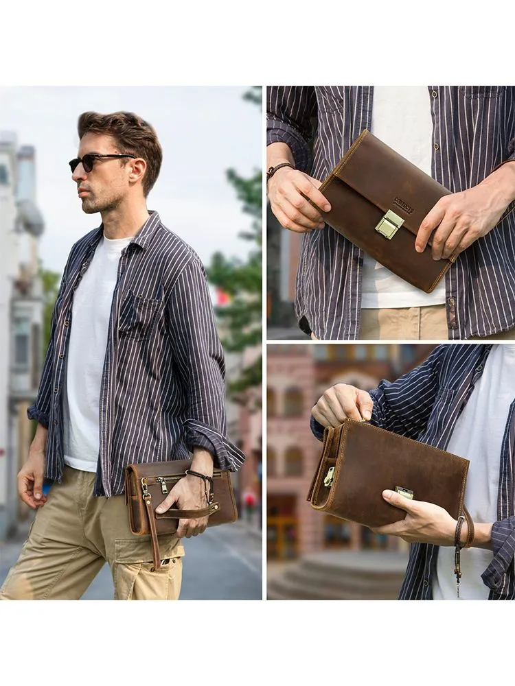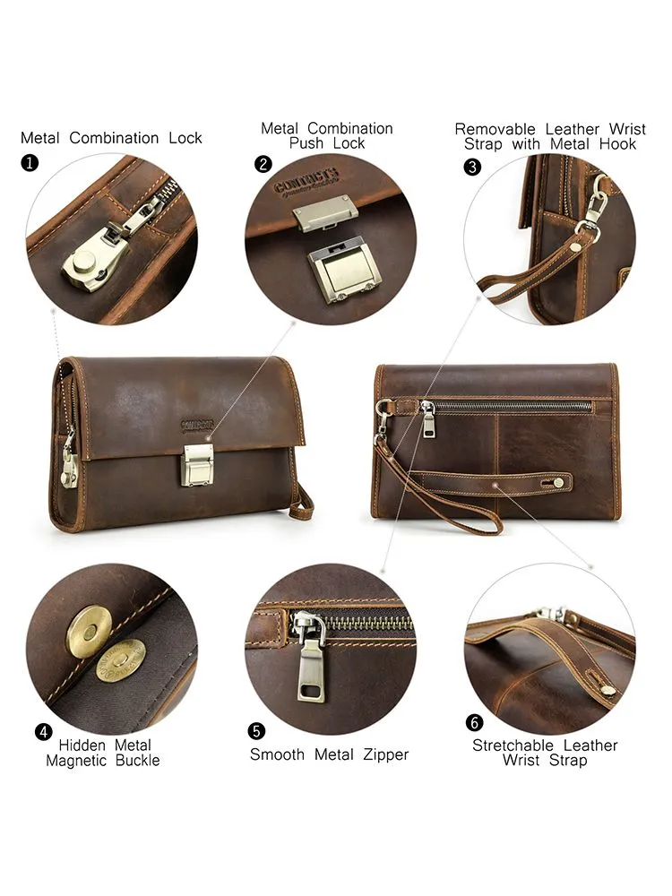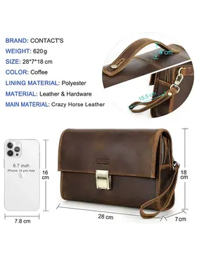 Высококачественная кожа: мужская сумка сделана из верхней безумной конской кожи, прочной и толстой, с классическим ретро роскошным видом 2 COMBINATION LOCK CLUTCHES: Мужские наручные сумки защищены от краж, чтобы защитить вашу личную конфиденциальность и не позволить другим открывать вашу сумку по своему усмотрению. Пароль металлического замка можно сбросить, и вы можете легко изменить его. Размер: 28 x 7 x 8 cm. Маленькая винтажная мужская кофейная сумка большого размера, с защелками, подходит для повседневного использования, покупок, путешествий, отдыха и бизнеса Большая емкость: 1 основной мешок для молнии (с внутренним боковым мешком для молнии и 6 разъемами), 2 мешка с металлическим магнитным затвором и 1 задний мешок для молнии. Многокамерная ручная муфта, которая позволяет легко устанавливать мобильные телефоны, чековые книжки, паспорта, банкноты, мелочь, ключи и другие мелкие предметы первой необходимости Подарок: кожаная чековая книжка с кодом кошелек сумочка маленький человек - идеальный подарок для отца, мужа, сына, брата на день рождения, День Святого Валентина, День отца, День Благодарения, Рождество, Новый год