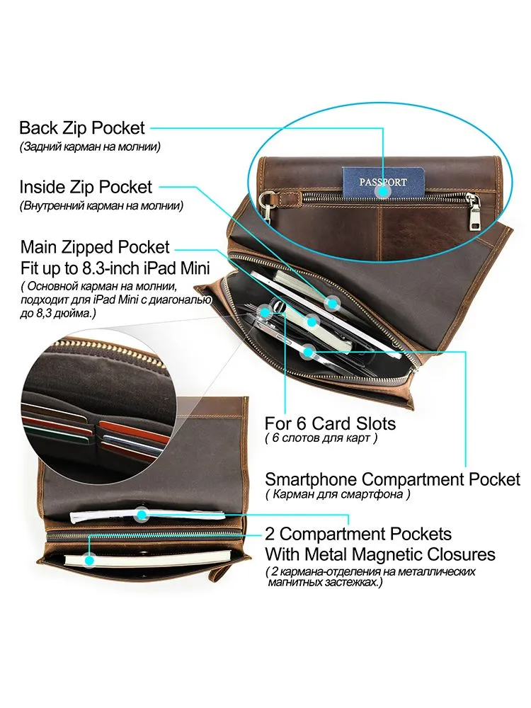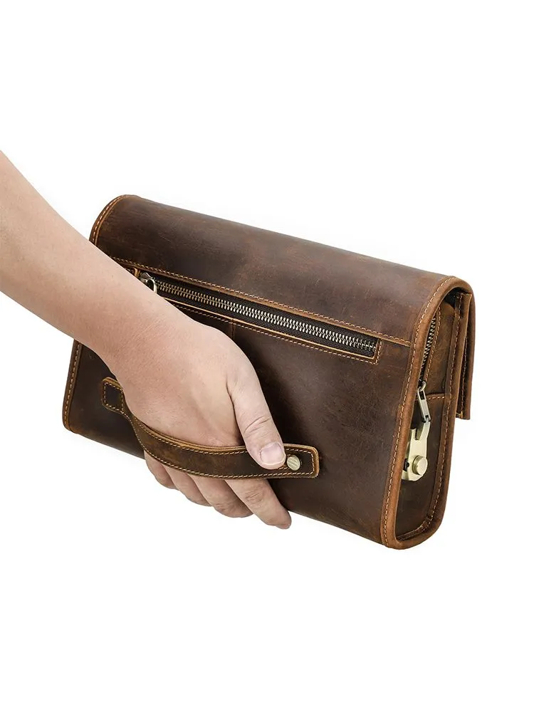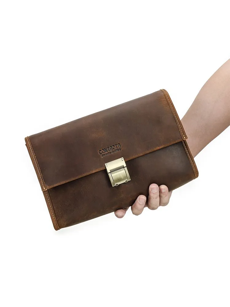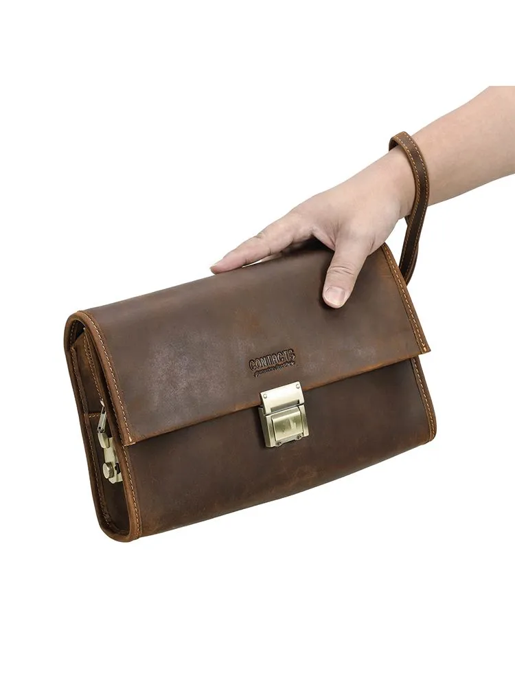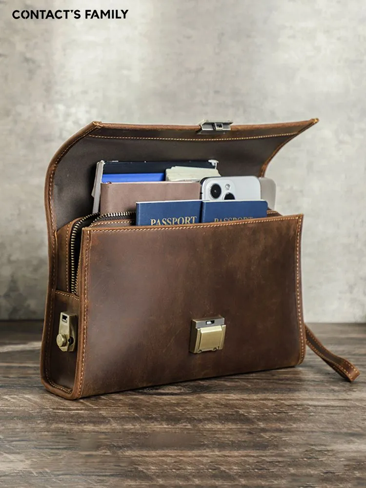 Высококачественная кожа: мужская сумка сделана из верхней безумной конской кожи, прочной и толстой, с классическим ретро роскошным видом 2 COMBINATION LOCK CLUTCHES: Мужские наручные сумки защищены от краж, чтобы защитить вашу личную конфиденциальность и не позволить другим открывать вашу сумку по своему усмотрению. Пароль металлического замка можно сбросить, и вы можете легко изменить его. Размер: 28 x 7 x 8 cm. Маленькая винтажная мужская кофейная сумка большого размера, с защелками, подходит для повседневного использования, покупок, путешествий, отдыха и бизнеса Большая емкость: 1 основной мешок для молнии (с внутренним боковым мешком для молнии и 6 разъемами), 2 мешка с металлическим магнитным затвором и 1 задний мешок для молнии. Многокамерная ручная муфта, которая позволяет легко устанавливать мобильные телефоны, чековые книжки, паспорта, банкноты, мелочь, ключи и другие мелкие предметы первой необходимости Подарок: кожаная чековая книжка с кодом кошелек сумочка маленький человек - идеальный подарок для отца, мужа, сына, брата на день рождения, День Святого Валентина, День отца, День Благодарения, Рождество, Новый год