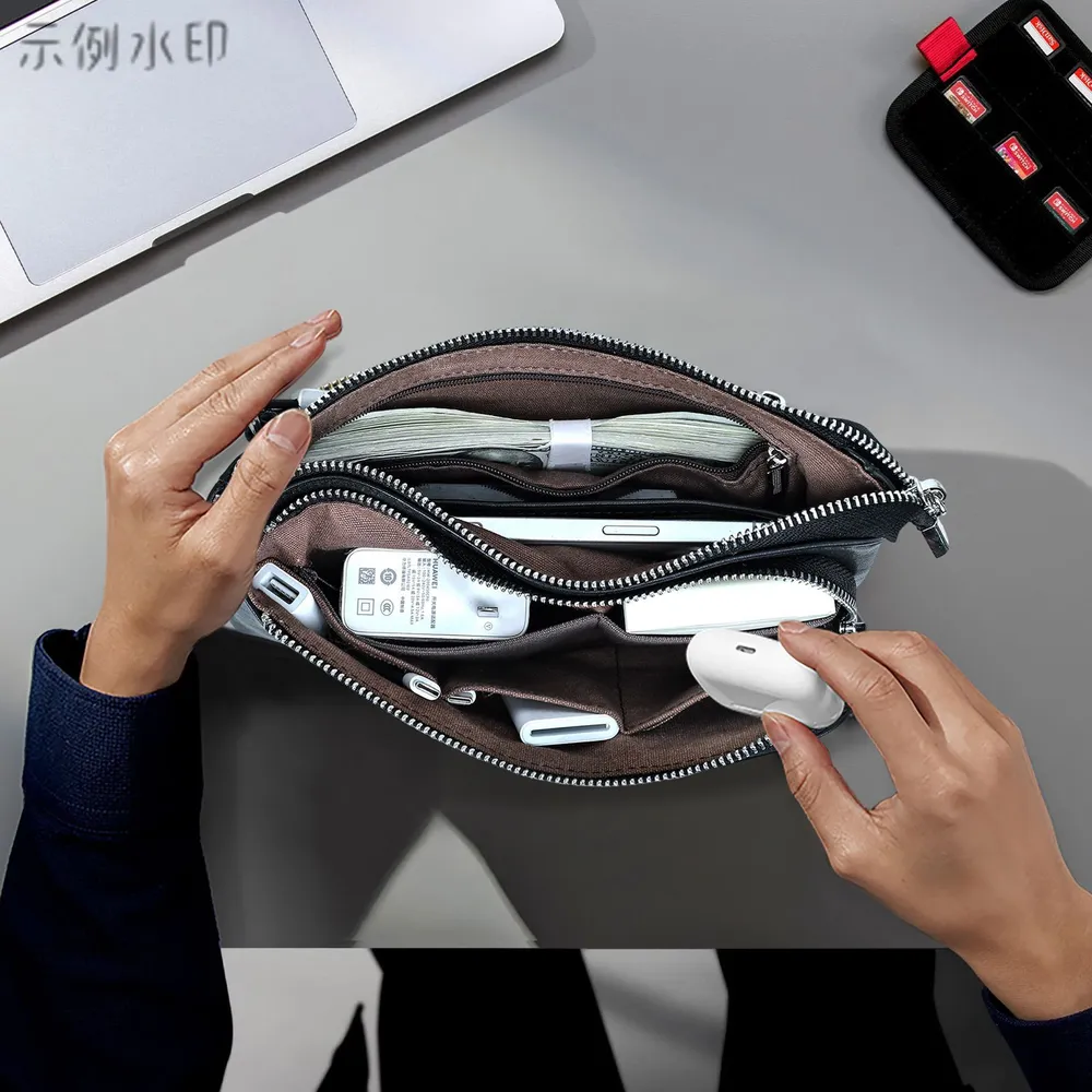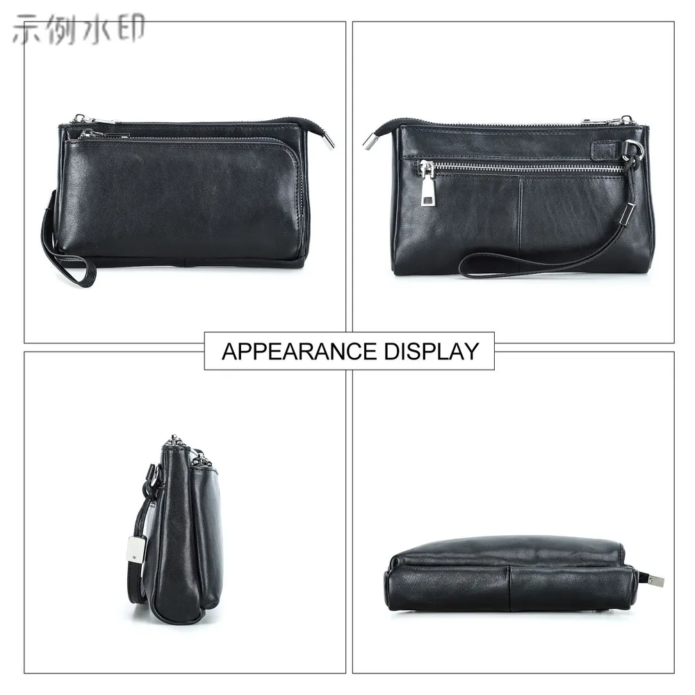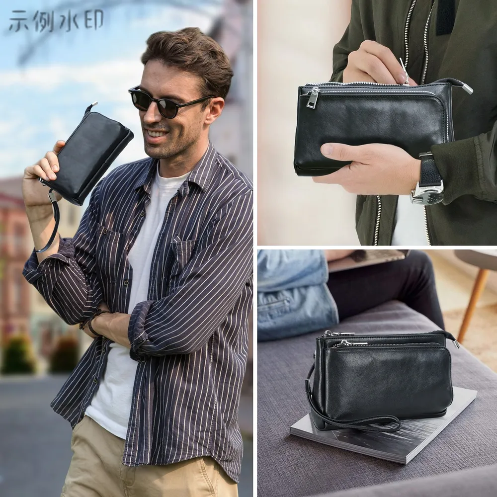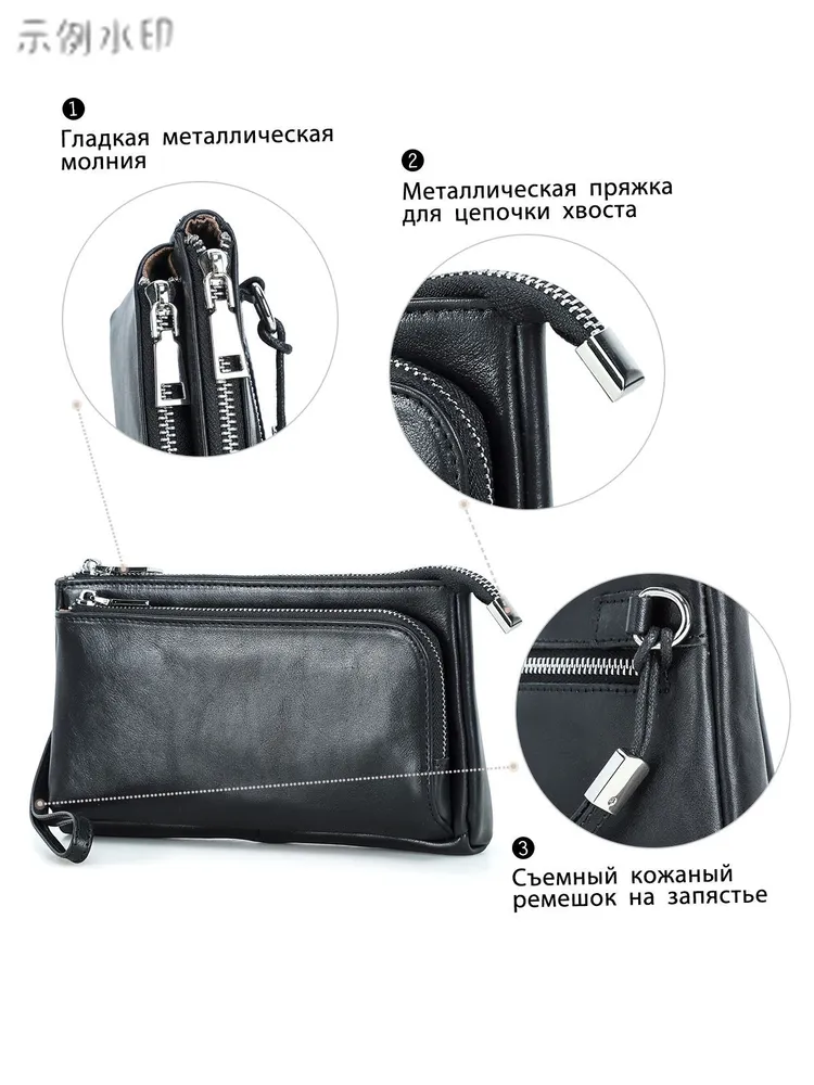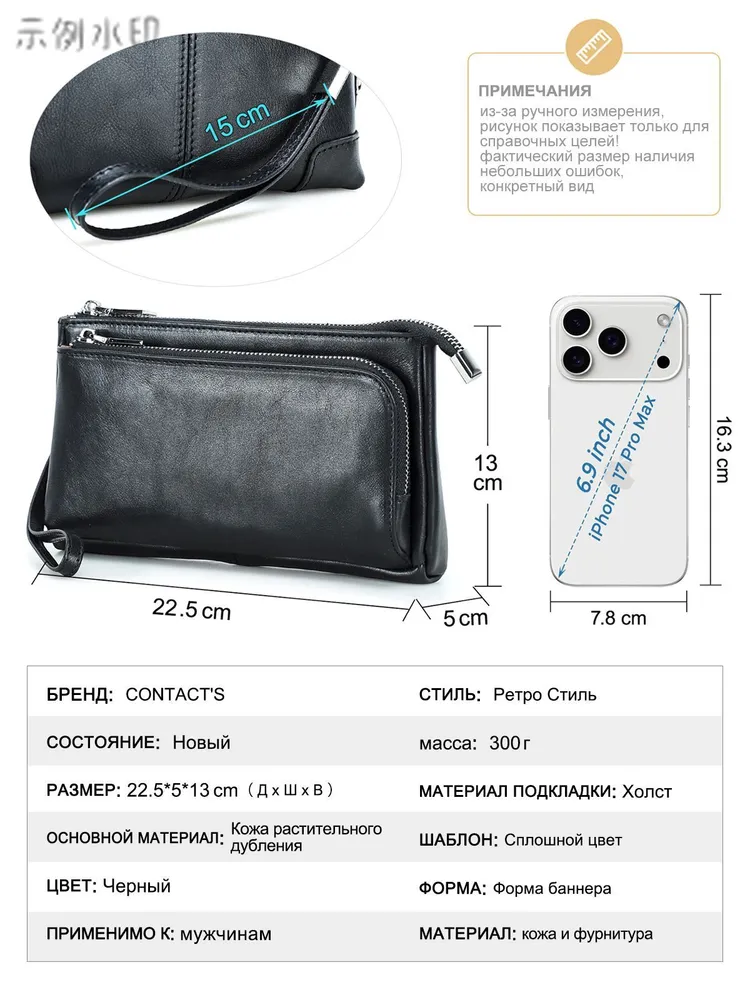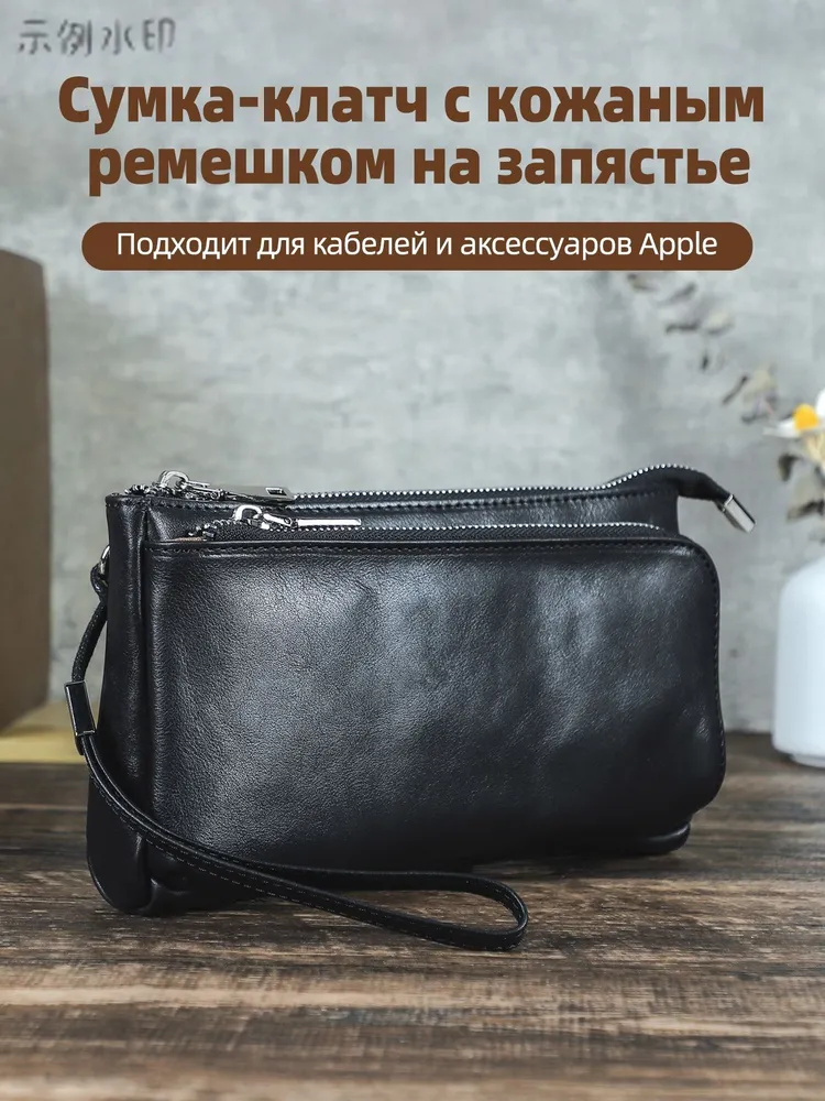 ### Продукт: Кожаный мужской клатч CONTACT'S для хранения электронных аксессуаров **Описание продукта:** Эта элегантная и функциональная сумка выполнена из высококачественной натуральной кожи и предназначена для хранения электронных аксессуаров. С размерами 22.5x13x5 см и весом 300 грамм, она удобна для переноски и оснащена удобным ремешком для запястья. Доступна в стильном кофейном цвете. **Основные характеристики:** 1. **Высококачественная кожа:** Мужская сумка изготовлена из натуральной кожи, что придает ей уникальный и роскошный внешний вид. Со временем кожа становится еще красивее и лучше, приобретая благородную патину. 2. **Вместимость:** Клатч предназначен для хранения различных электронных аксессуаров. В переднем кармане на молнии есть 5 открытых отделений, где можно разместить кабели, AirPods, зарядные устройства MagSafe и другие мелкие предметы. Основной карман вмещает мобильные телефоны и другие аксессуары, такие как зарядные устройства. 3. **Компактные размеры:** С размерами 22.5x13x5 см, сумка легко помещается в рюкзак, сумку или багаж. Она компактна и легка, что делает её идеальным выбором для повседневного использования. 4. **Портативность:** Коричневая кожаная сумка идеально подходит для ночевок, отдыха, деловых поездок, путешествий и повседневной жизни. Она организует ваши электронные аксессуары для путешествий, демонстрируя ваш идеальный стиль и джентльменский вкус.