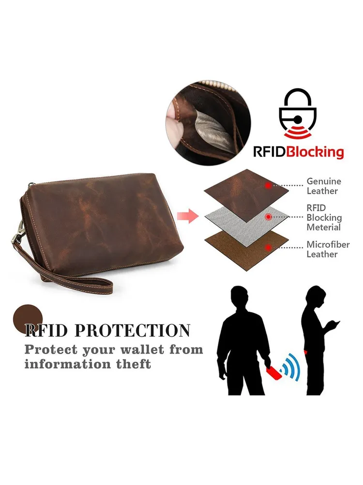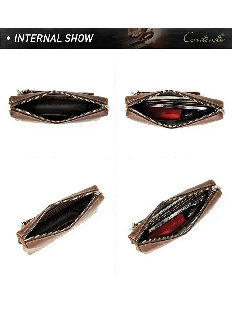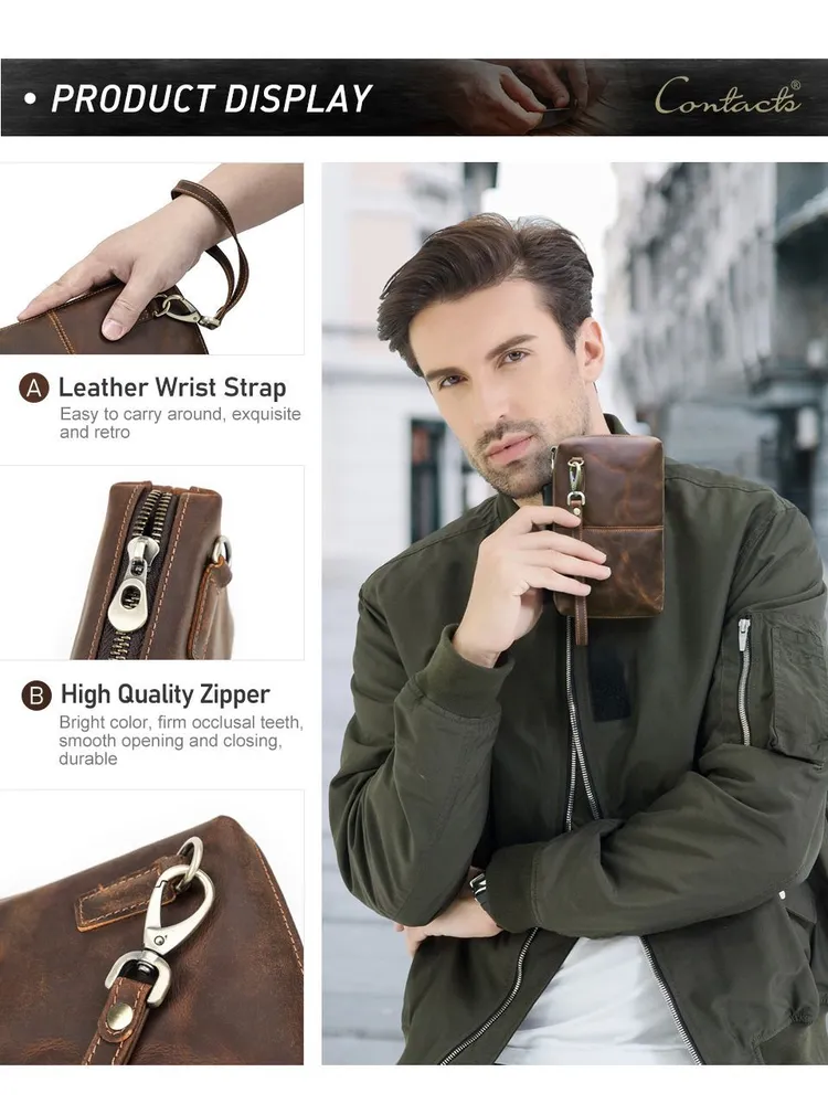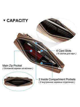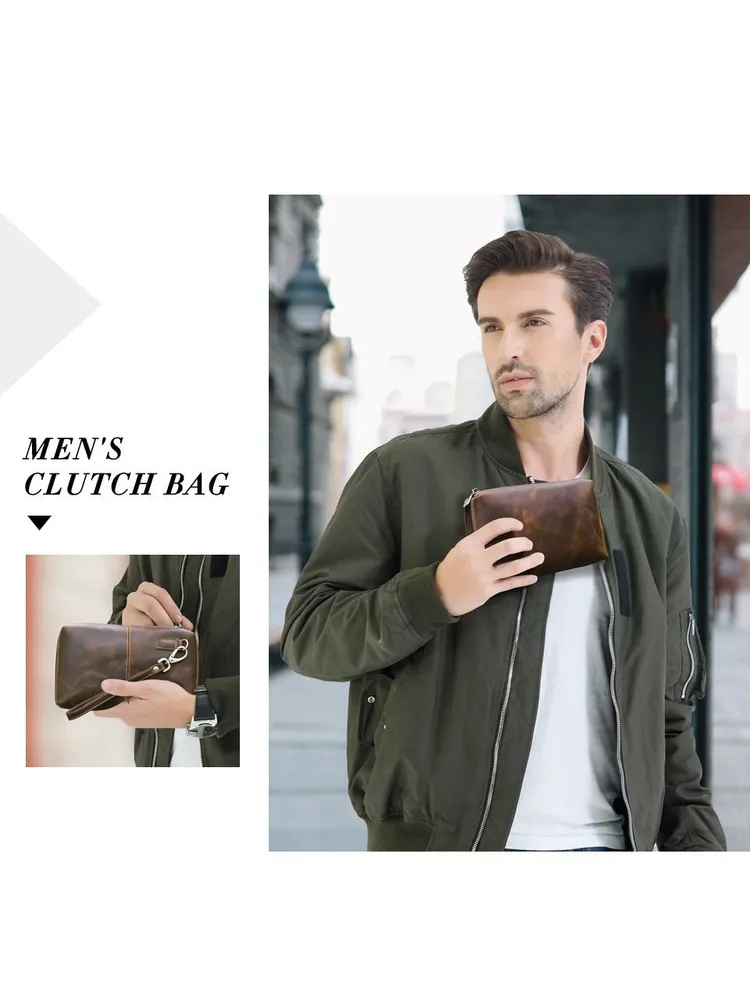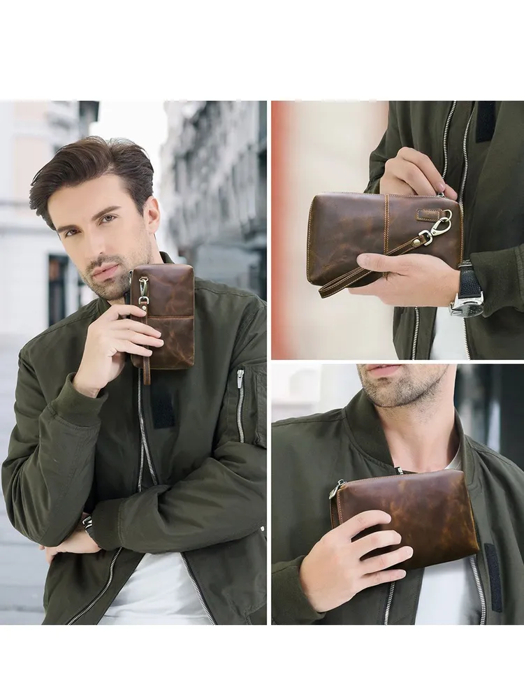### Продукт: Мужская кожаная сумка-клатч из натуральной кожи с RFID защитой **Описание продукта:** Эта изысканная мужская сумка-клатч выполнена из высококачественной натуральной кожи в винтажном стиле. Благодаря своей универсальности и функциональности, она станет идеальным аксессуаром для современных мужчин. **Основные характеристики:** 1. **Винтажный дизайн:** Клатч выполнен в ретро-стиле, что придает ему уникальный и элегантный вид. 2. **Высококачественные материалы:** Натуральная кожа обеспечивает долговечность и эстетичность, защищая содержимое от повреждений. 3. **Большая вместимость:** Сумка имеет достаточно места для хранения всех необходимых вещей, включая длинный кошелек и другие аксессуары. 4. **RFID защита:** Встроенная RFID защита предотвращает несанкционированное считывание данных с ваших банковских карт и документов. 5. **Удобный ремешок:** Сумка оснащена удобным ручным ремешком, что обеспечивает дополнительное удобство при использовании.
