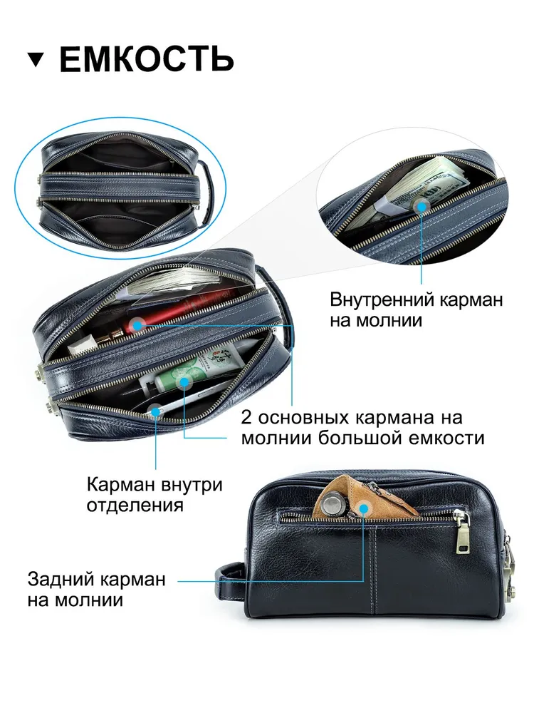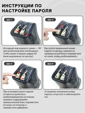 **Кожаный клатч с кодовым замком** Эта элегантная кожаная сумка-клатч станет вашим надежным спутником в любой ситуации. Изготовленная из высококачественной натуральной кожи, она не только практична, но и стильно выглядит, что делает ее идеальным выбором для деловых встреч, путешествий или повседневного использования. - **Размеры и вес**: Клатч имеет удобные габариты 24.5*11*14 см и весит 510 г, что позволяет вместить все необходимые вещи, оставаясь компактным и легким для переноски. - **Два отделения с замком**: Внутри предусмотрено два отдельных кармана на молнии, каждое из которых оснащено индивидуальным кодовым замком. Это обеспечит дополнительную безопасность ваших личных вещей и документов. - **Совет по настройке замка**: Изначально кодовый замок настроен на "00", однако вы можете легко изменить комбинацию на свою собственную, чтобы повысить уровень безопасности. - **Стиль и функциональность**: Этот клатч сочетает в себе высокую степень защиты и изысканный дизайн, что делает его неотъемлемой частью гардероба современного человека. Выберите свой клатч с кодовым замком и будьте уверены, что ваши вещи всегда под надежной защитой!