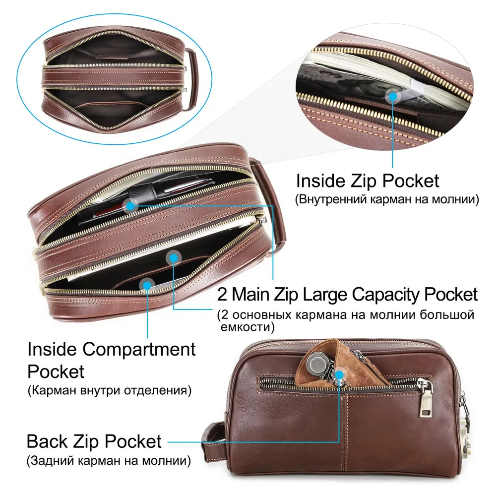**Кожаный клатч с кодовым замком** Эта элегантная кожаная сумка-клатч станет вашим надежным спутником в любой ситуации. Изготовленная из высококачественной натуральной кожи, она не только практична, но и стильно выглядит, что делает ее идеальным выбором для деловых встреч, путешествий или повседневного использования. - **Размеры и вес**: Клатч имеет удобные габариты 24.5*11*14 см и весит 510 г, что позволяет вместить все необходимые вещи, оставаясь компактным и легким для переноски. - **Два отделения с замком**: Внутри предусмотрено два отдельных кармана на молнии, каждое из которых оснащено индивидуальным кодовым замком. Это обеспечит дополнительную безопасность ваших личных вещей и документов. - **Совет по настройке замка**: Изначально кодовый замок настроен на "00", однако вы можете легко изменить комбинацию на свою собственную, чтобы повысить уровень безопасности. - **Стиль и функциональность**: Этот клатч сочетает в себе высокую степень защиты и изысканный дизайн, что делает его неотъемлемой частью гардероба современного человека. Выберите свой клатч с кодовым замком и будьте уверены, что ваши вещи всегда под надежной защитой!