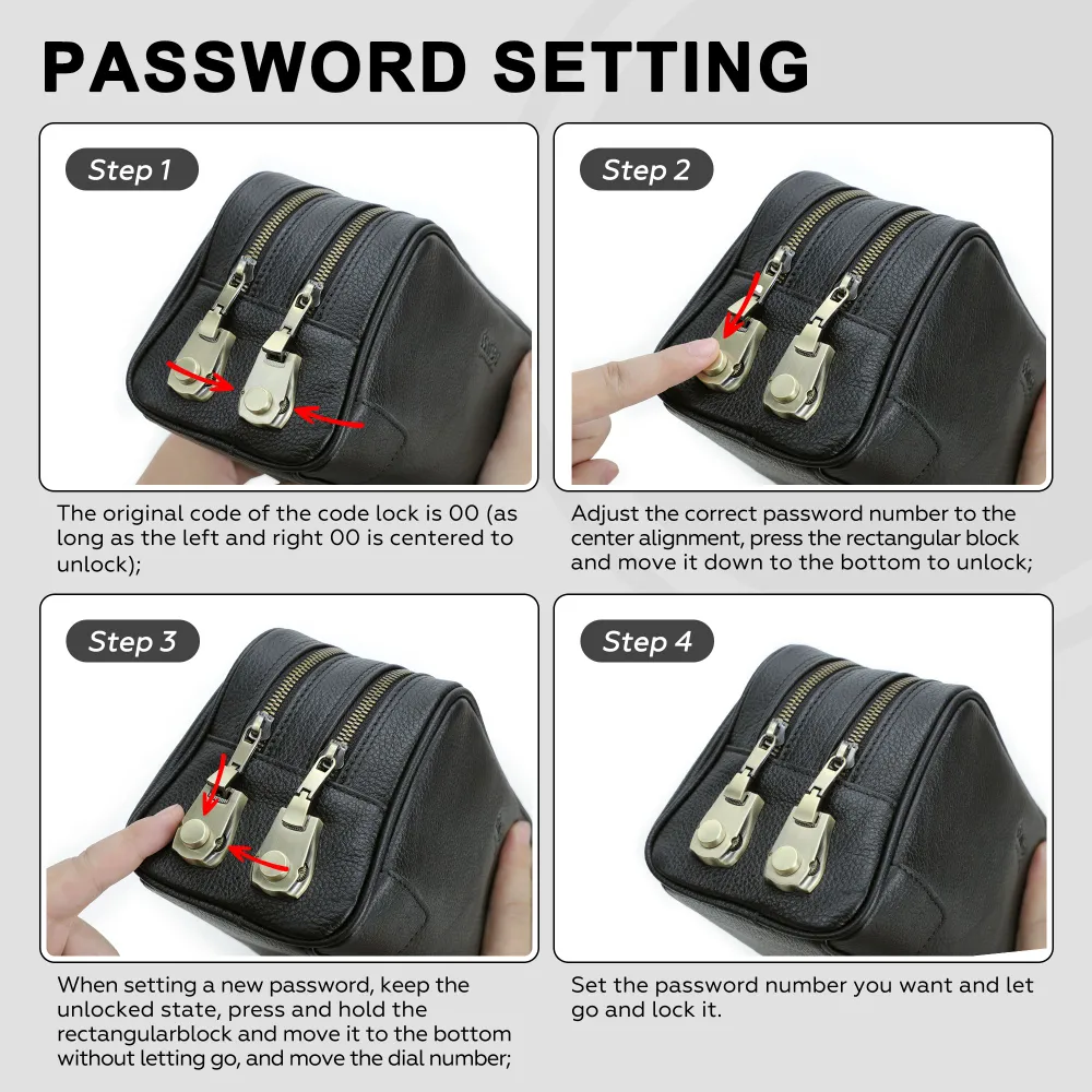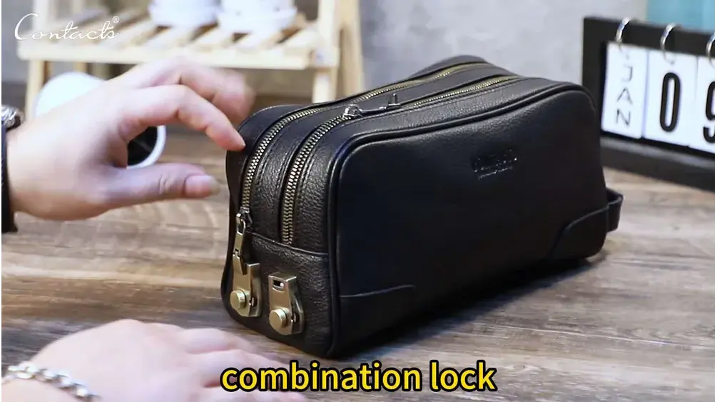 **Кожаный клатч с кодовым замком** Эта элегантная кожаная сумка-клатч станет вашим надежным спутником в любой ситуации. Изготовленная из высококачественной натуральной кожи, она не только практична, но и стильно выглядит, что делает ее идеальным выбором для деловых встреч, путешествий или повседневного использования. - **Размеры и вес**: Клатч имеет удобные габариты 24.5*11*14 см и весит 510 г, что позволяет вместить все необходимые вещи, оставаясь компактным и легким для переноски. - **Два отделения с замком**: Внутри предусмотрено два отдельных кармана на молнии, каждое из которых оснащено индивидуальным кодовым замком. Это обеспечит дополнительную безопасность ваших личных вещей и документов. - **Совет по настройке замка**: Изначально кодовый замок настроен на "00", однако вы можете легко изменить комбинацию на свою собственную, чтобы повысить уровень безопасности. - **Стиль и функциональность**: Этот клатч сочетает в себе высокую степень защиты и изысканный дизайн, что делает его неотъемлемой частью гардероба современного человека. Выберите свой клатч с кодовым замком и будьте уверены, что ваши вещи всегда под надежной защитой!
