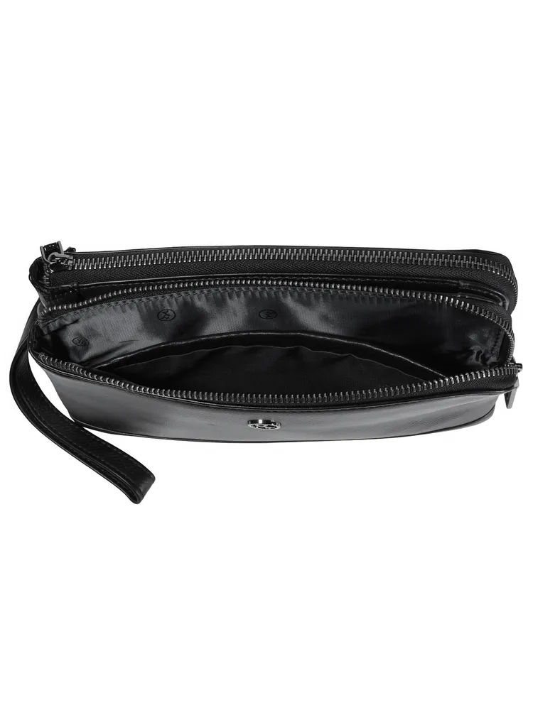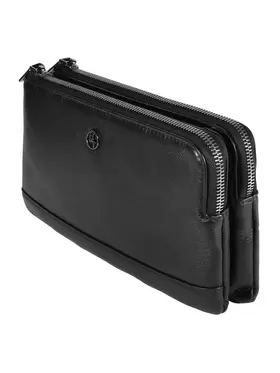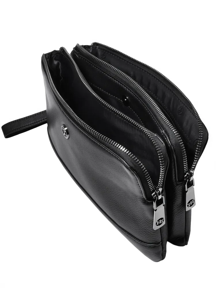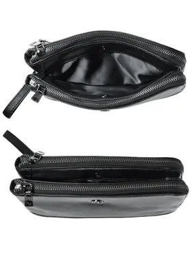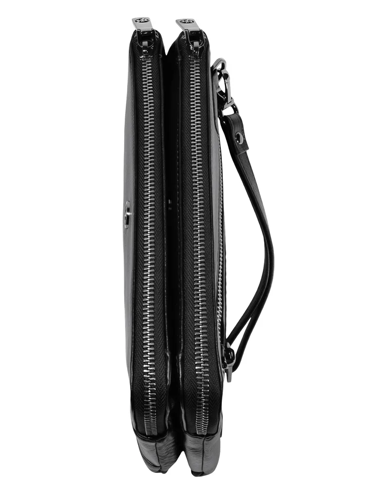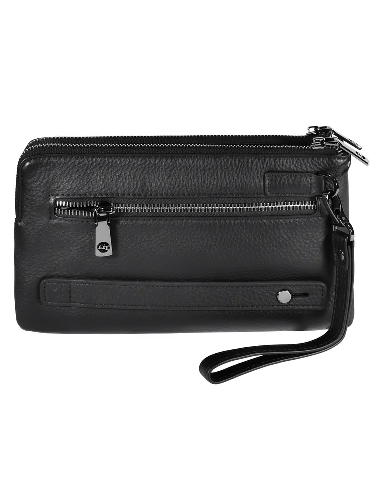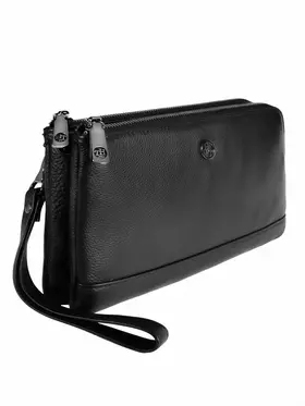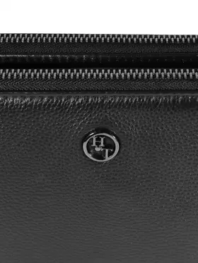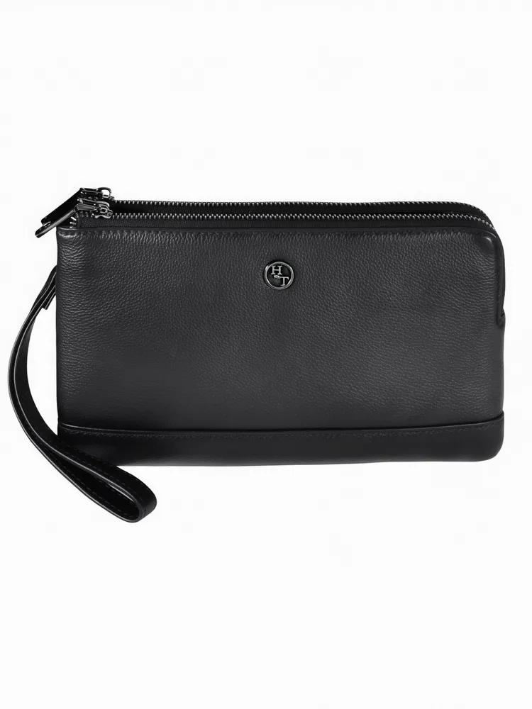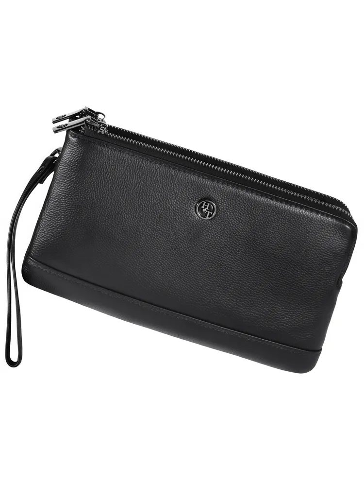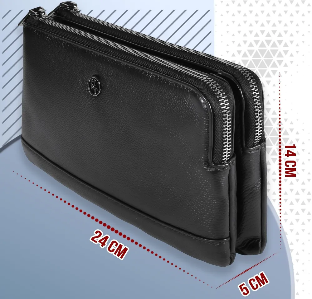 Мужской клатч HT 7935-264 из натуральной мелкозернистой кожи черного цвета премиум качества, фурнитура из высококачественного материала цвета тонированного серебра. Мужская кожаная барсетка бренда HT прекрасно держит форму и имеет два основных отделений на молнии и одно отделение-перегородку на кнопке. Внутри, в одном из основных отделений присутсвует один карман на молнии для документов, во втором открытый накладной карман для смартфона. Снаружи, стыльной стороны захват для руки. В комплекте кожаная ручка хлястик для ношения изделье на запястье. Размеры: ширина - 24 см, высота - 14 см, глубина - 6 см. Клатч HT 7935-264 отличный подарок для любимого на день рождения, 23 февраля, новый год.
