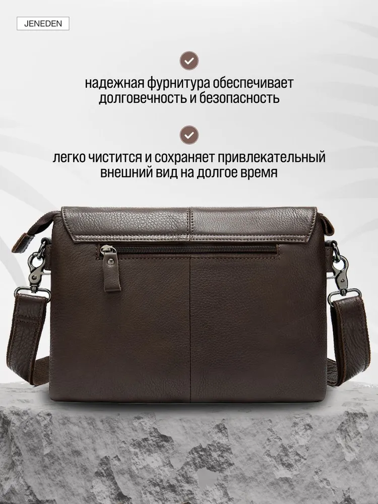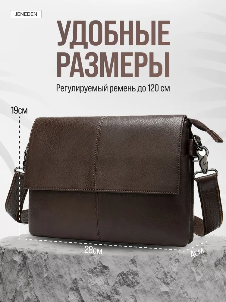 Натуральная кожа Сумка JENEDEN из натуральной воловьей кожи. Элегантность и долговечность в каждой детали. Идеально подходит как для офисного стиля, так и для повседневного использования. Большие размеры позволяют взять с собой все необходимое. Подарок Идеально подходит для подарка премиум качества мужчине на любой праздник. Сумка изготовлена из влагостойкого материала, который защищает ваши вещи от влаги и непогоды. Идеальный выбор для любого времени года. Длительная служба Натуральная кожа и качественная сборка гарантируют долговечность и надежность сумки. Следите за своим стилем годами. Идеальный выбор Сумка JENEDEN – это не просто сумка, это ваш стиль и удобство в каждый день. Выбирайте качество и надежность.