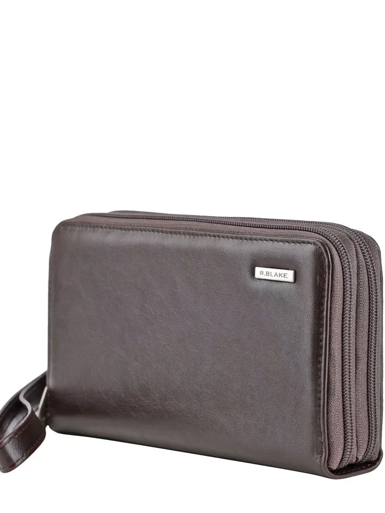 Клатч мужской кожаный на кистевом ремне Мужской клатч из натуральной кожи от российского производителя. Барсетка с двумя отделениями и кистевым ремнем заменит сумку и портмоне, т.к. вместит в себя все необходимое. В первом отделении восемь карманов для карточек, закрытый карман для мелочи, два отделения для купюр и прозрачный карман для документов. Во втором отделении закрытый карман на молнии, прозрачные окна для прав и автодокументов, дополнительно предусмотрено кольцо для ключей. Таким образом все необходимые вещи всегда будут под рукой. Кожаный мужской клатч - это современный и удобный аксессуар для делового мужчины. Он идеален для ситуаций, когда необходимые вещи должны быть при себе, но сумка мешает. Кожаная барсетка может стать и прекрасным подарком. Натуральная кожа- это материал, который никогда не выходят из моды. Натуральная кожа- это материал, который никогда не выходит из моды. Изделия из него надежны и долговечны и будут служить вам ни один год, сохраняя внешний вид как в день покупки. Качественная надежная матовая фурнитура с логотипом бренда выглядит стильно и солидно, подчеркивая хороший вкус обладателя сумки. Российское производство - это гарантия высокого качества изготовления и безопасность используемых материалов.