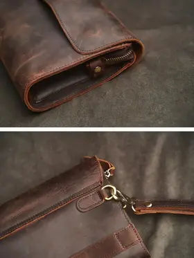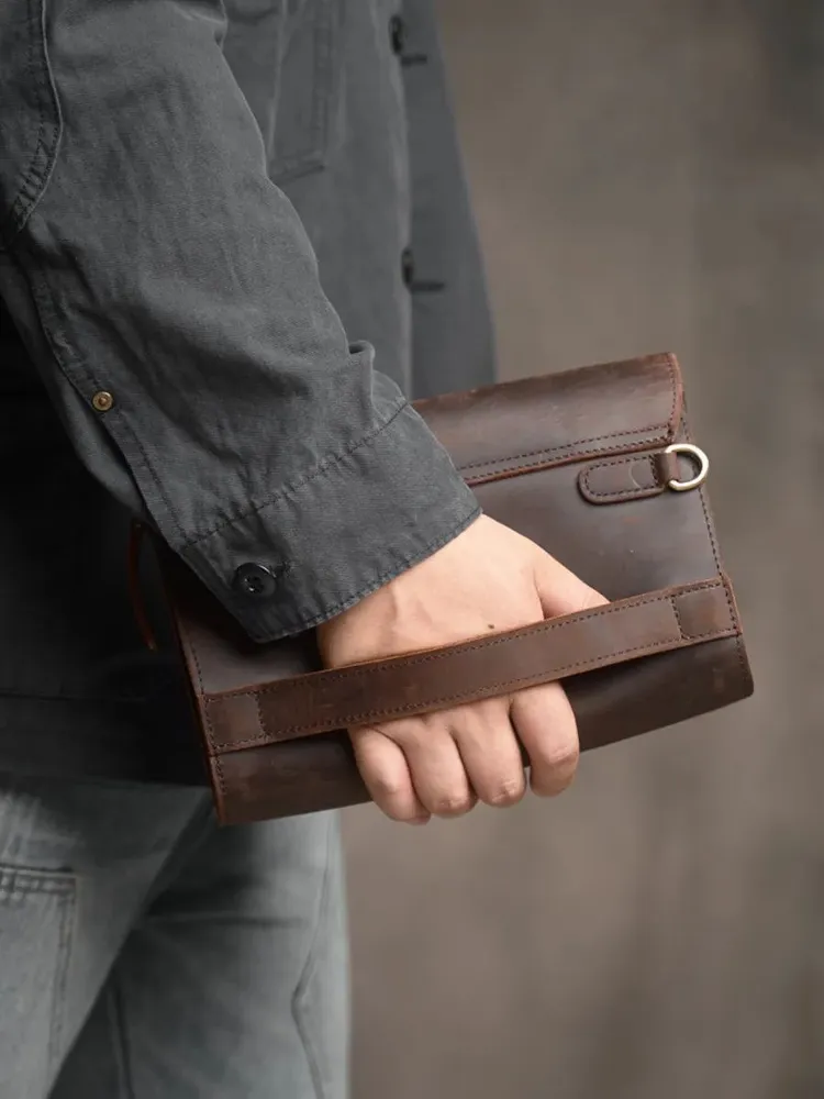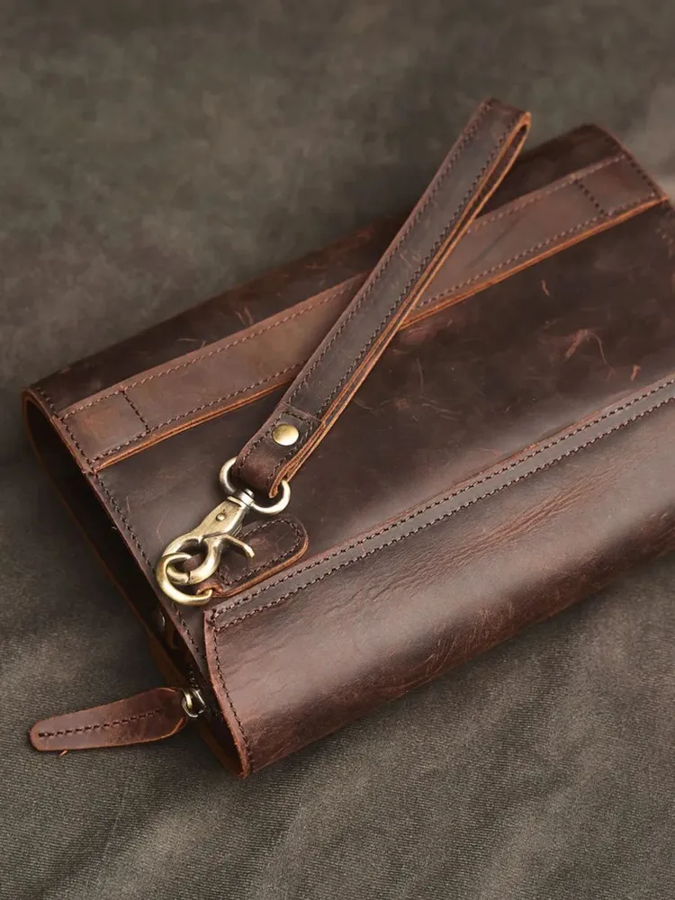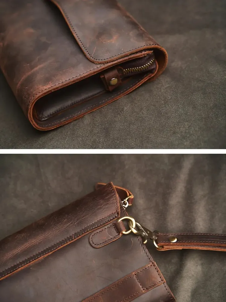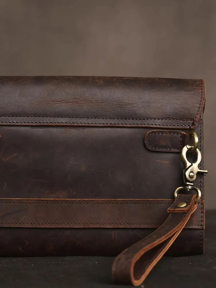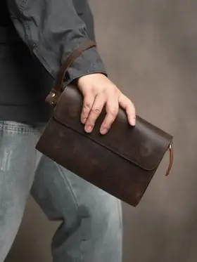 Клатч мужской из натуральной кожи — практичный аксессуар на каждый день, в дорогу и для деловых задач. Эта сумка клатч мужская выполнена из прочной кожи Crazy Horse: материал отличается выразительной фактурой, винтажным характером и со временем приобретает красивую патину. Такой клатч мужской кожаный выглядит статусно и подходит под casual и деловой стиль. Модель удобна как клатч мужской для документов: внутри можно разместить документы, телефон, банковские карты, ключи и другие нужные мелочи. За счёт формата это клатч мужской большой — всё важное под рукой, при этом аксессуар не выглядит громоздко. Если вы ищете клатч мужской натуральная кожа, который сочетает надёжность, функциональность и аккуратный внешний вид, этот вариант полностью закрывает задачу. Ключевые особенности: натуральная кожа, crazy horse кожа, удобное ношение в руке, универсальный дизайн. Это клатч мужской из натуральной кожи, рассчитанный на активное использование и долговечную службу.