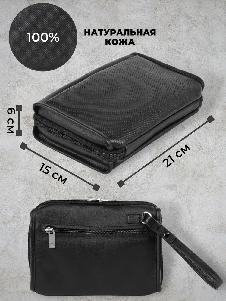 Клатч мужской кожаный Кожаная сумка BRISTOL - это идеальный выбор для мужчин, которые ценят качество и стиль. Мужской клатч изготовлен из натуральной кожи, что обеспечивает его долговечность и уникальный вид. Сумка имеет одно отделение. Внутри карман-разделитель и карман для мелочей на молнии. На передней стенке карман на скрытой магнитной кнопке. На задней стенке карман на молнии. Cумка укомплектована кистевым ремешком для ношения изделия в руке. Мужской клатч из натуральной кожи - это не просто аксессуар, но и символ статуса. Качественная надежная матовая фурнитура с логотипом бренда выглядит стильно и солидно, подчеркивая хороший вкус обладателя сумки. Этот аксессуар будет подходящим подарком для себя или близких людей. Натуральная кожа- это материал, который никогда не выходят из моды. Изделия из натуральной кожи практичны и долговечны. Российское производство - это гарантия высокого качества изготовления и безопасность используемых материалов.