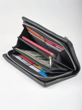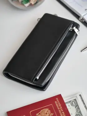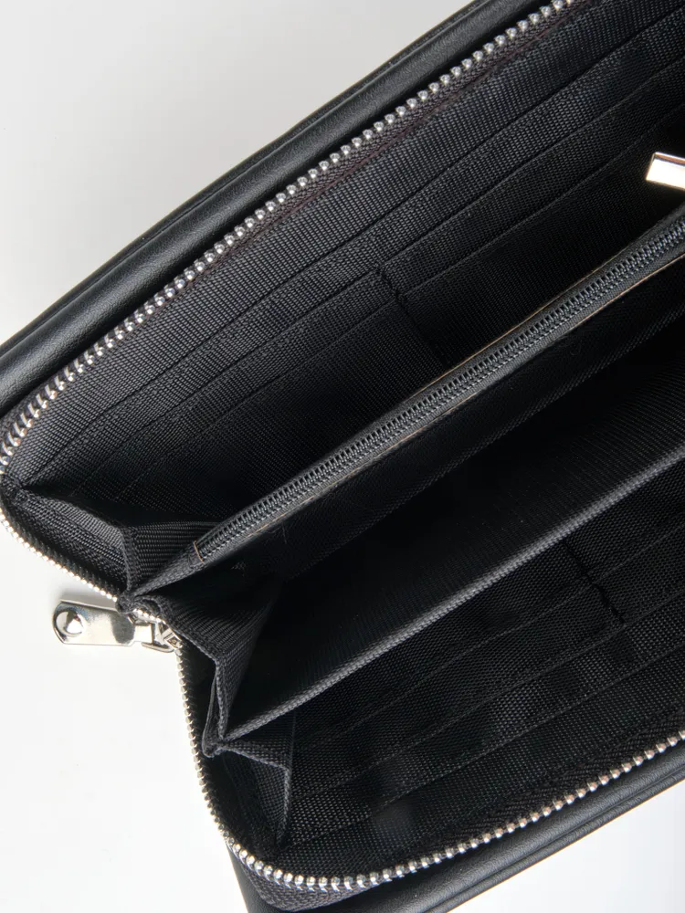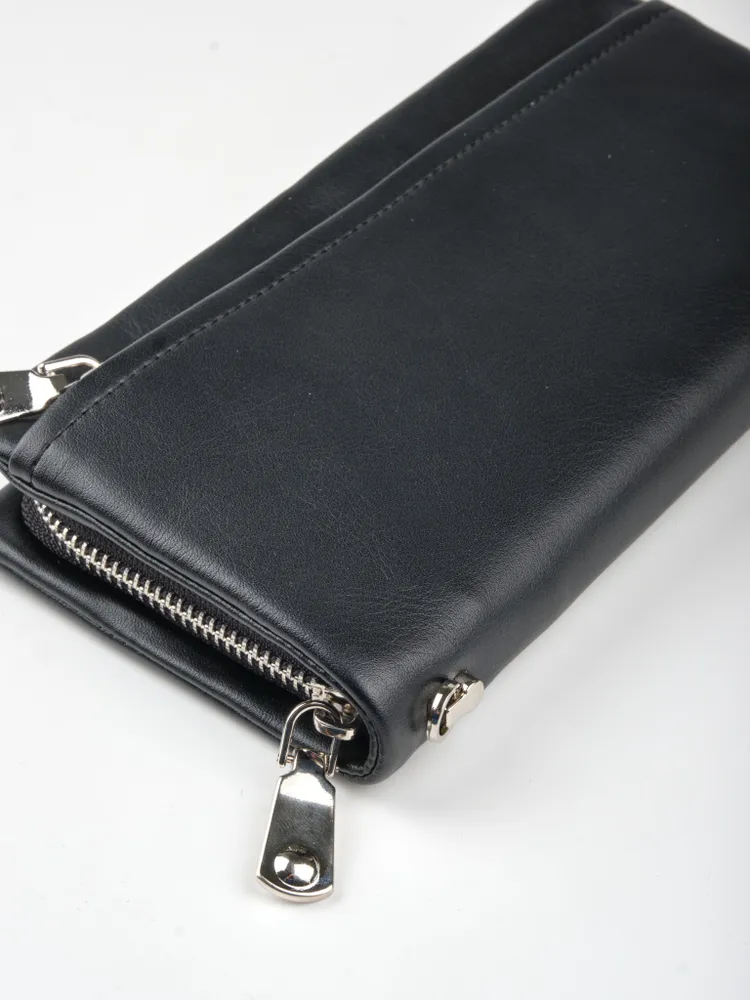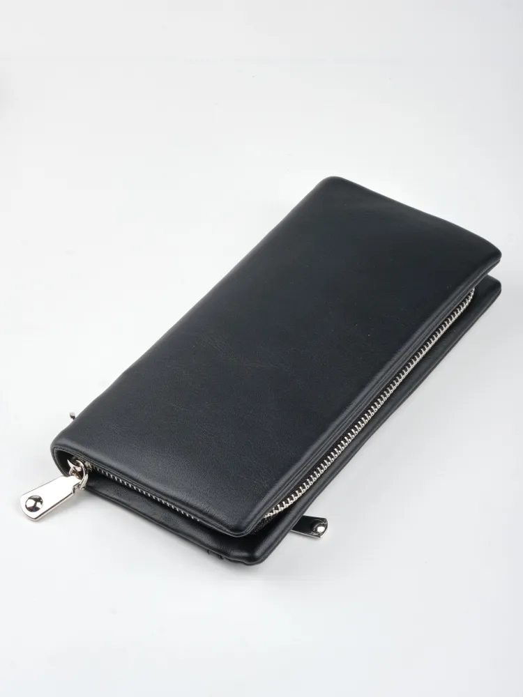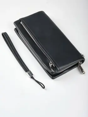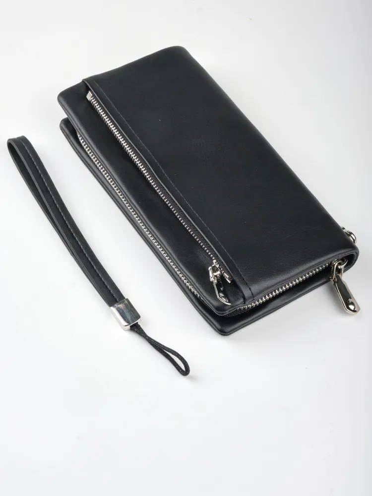 Стильный, практичный мужской портмоне - клатч позволит навести порядок в собственных карманах. Телефон, авто-документы, паспорт, деньги, банковские карты и не только - все это без проблем уместиться в нём. Три вместительных отделения разделяют две перегородки, из которых одна карман-перегородка на молнии. Есть 2 внутренних боковых кармана и 8 кармашков для банковских карт. Имеется внешний карман на молнии. Прилагается петля на запястья для удобства ношения портмоне. Мягкая структура материала приятная на ощупь. Данный клатч прекрасный подарок мужчине.