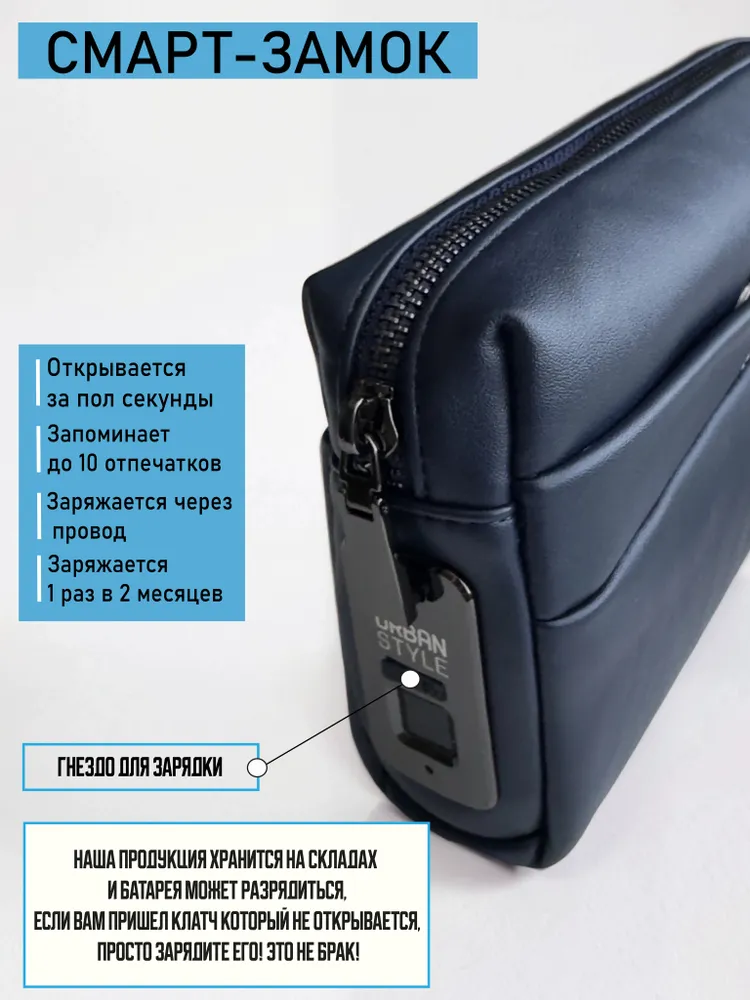 Мужской клатч из премиальной искусственной кожи: стиль и технологии в каждой детали Представляем стильный мужской клатч — идеальный аксессуар для тех, кто ценит современный дизайн и передовые решения. Эта модель гармонично сочетает черты классической барсетки и функционального портмоне, становясь универсальным спутником в повседневной жизни. Выполненный из премиальной искусственной кожи чёрного цвета, клатч выглядит респектабельно и при этом остаётся практичным. Лаконичный дизайн делает его уместным как в деловом, так и в повседневном образе — он дополнит любой лук, подчеркнув ваш безупречный вкус. Почему стоит выбрать этот клатч? Безопасность на новом уровне. Встроенный замок по отпечатку пальца обеспечивает надёжную защиту содержимого. Устройство запоминает до 10 отпечатков — вы можете настроить доступ для себя и доверенных лиц. Больше не нужно беспокоиться о ключах или кодах! Премиальное качество. Искусственная кожа высокого качества не уступает натуральной по внешнему виду и износостойкости. Материал устойчив к повседневным нагрузкам и надолго сохраняет первозданный вид. Надёжная фурнитура. Все элементы конструкции, от застёжек до креплений, выполнены с особым вниманием к деталям. Это гарантирует долгий срок службы даже при активном использовании. Универсальность. Модель удачно объединяет функции клатча, барсетки и портмоне: в ней удобно хранить документы, карты, смартфон и другие необходимые мелочи. Компактные размеры и продуманная эргономика позволяют носить клатч в руке или во внутреннем кармане пиджака — он не доставит дискомфорта и всегда будет под рукой. Выбирайте аксессуар, который говорит за вас: современный, стильный и надёжный мужской клатч чёрного цвета станет изюминкой вашего повседневного образа и подчеркнёт статус своего владельца. Добавьте этот клатч в свою коллекцию — пусть каждый день будет стильным и безопасным!