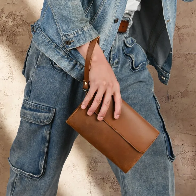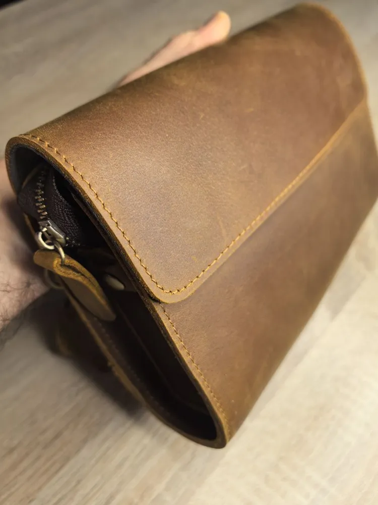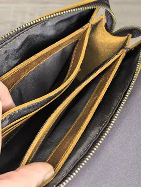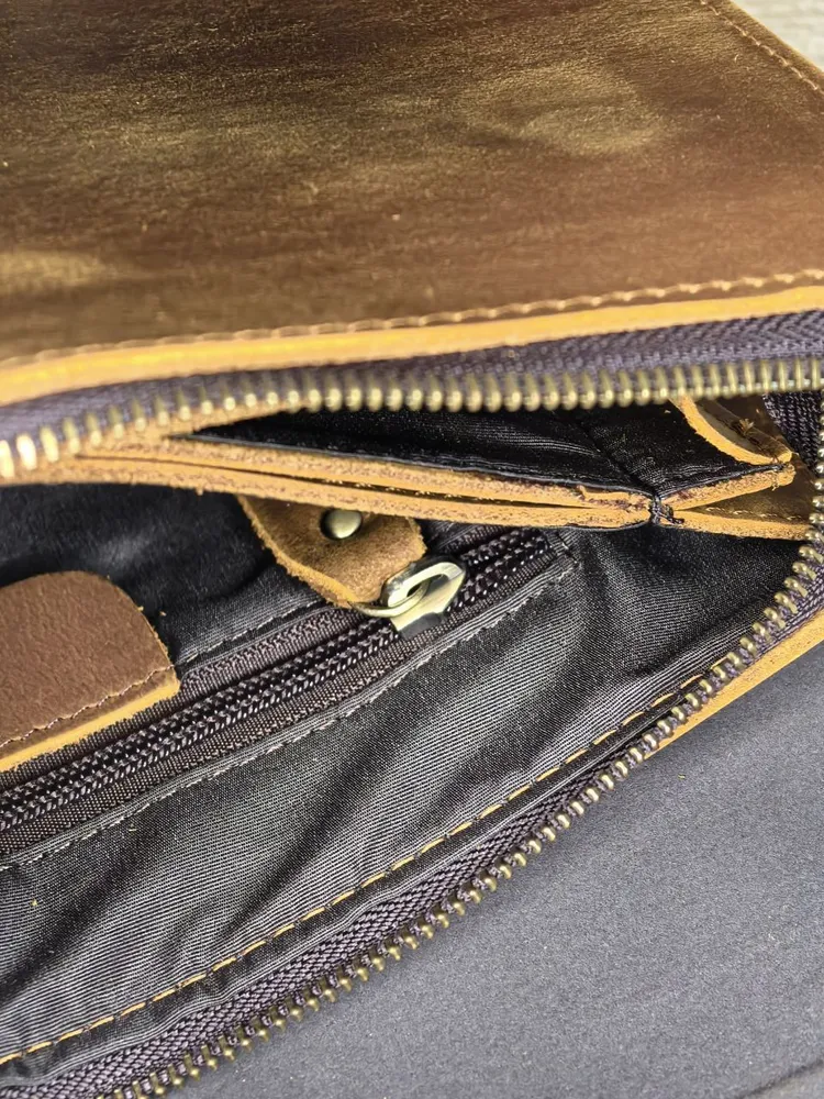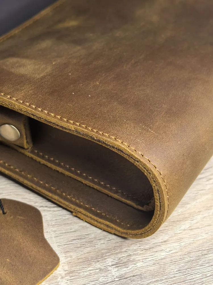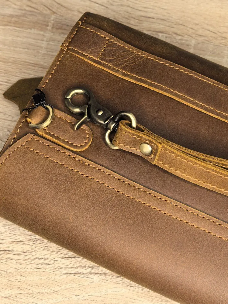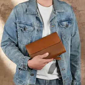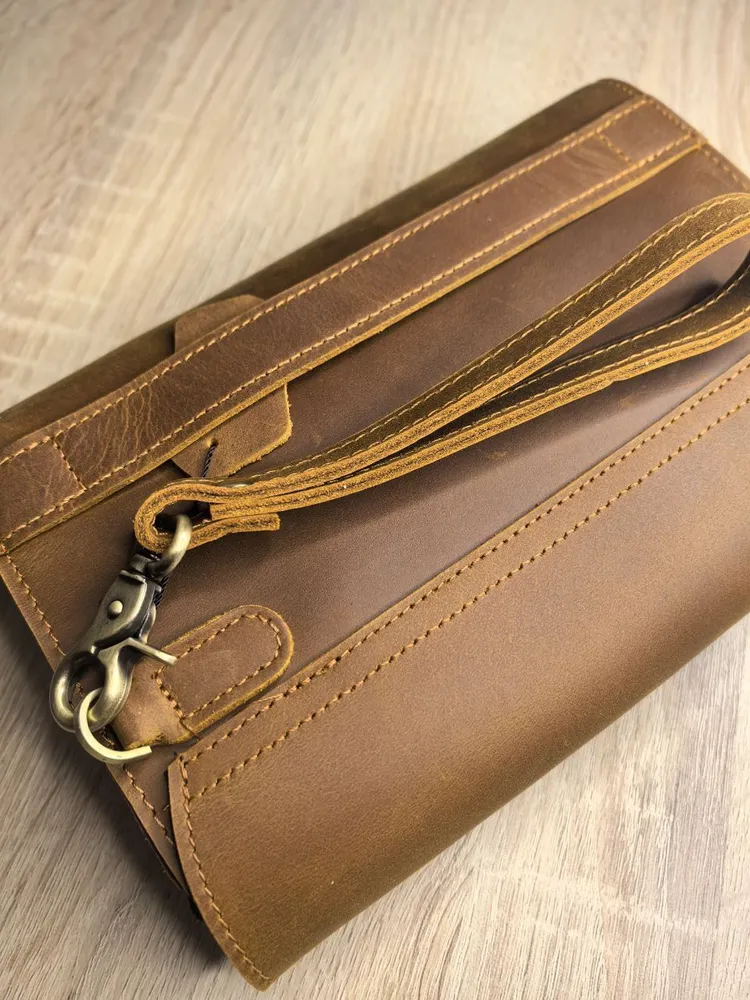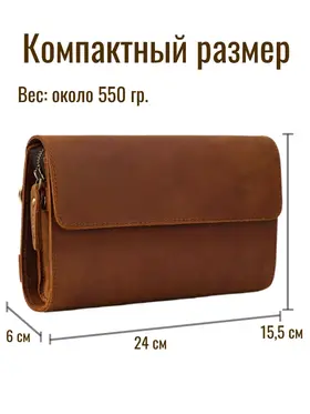 Описание товара: Мужской кожаный клатч — это аксессуар, который подчеркнет ваш безупречный вкут и статус. Модель изготовлена из прочной воловьей кожи «Крейзи Хорс» благородного коричневого оттенка. Со временем на материале появляется уникальный паттина-налет, который придает изделию индивидуальный шарм и брутальный вид в стиле ретро. Ключевые преимущества: ПРЕМИАЛЬНЫЙ МАТЕРИАЛ: Натуральная кожа «Crazy Horse» отличается повышенной износостойкостью, тактильной приятностью и уникальным эффектом старения. С каждым годом клатч выглядит только лучше. ФУНКЦИОНАЛЬНЫЙ ДИЗАЙН: Продуманная конструкция позволяет удобно разместить телефон, зарядное устройство, повербанк, банковские карты, наличные деньги, визитки и другие мелочи. Все необходимое всегда под рукой. СТИЛЬ И ИНДИВИДУАЛЬНОСТЬ: Классический коричневый цвет и элементы ретро-дизайна делают этот клатч универсальным аксессуаром для делового и повседневного образа. ИДЕАЛЬНЫЙ ПОДАРОК: Аксессуар поставляется в подарочной упаковке. Это готовое решение для подарка на День рождения, 23 февраля, юбилей или другой важный праздник для мужчины. Характеристики: Материал: Натуральная воловья кожа Crazy Horse Цвет: Коричневый Стиль: Ретро, классика Назначение: Мужской кошелек-клатч Подарите себе или близкому человеку аксессуар, в котором безупречная стильность сочетается с надежностью и функциональностью.