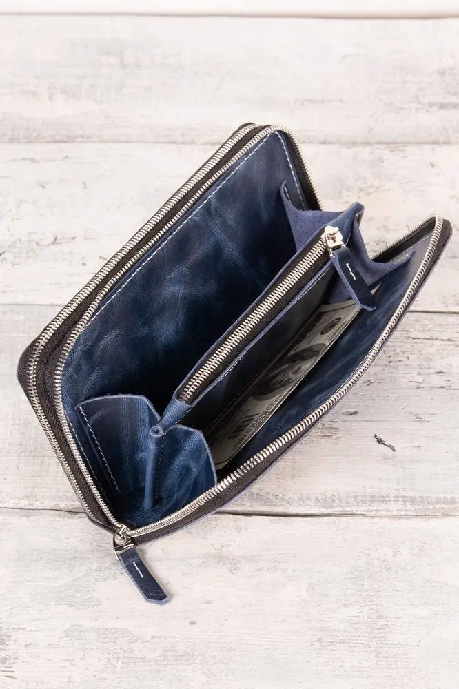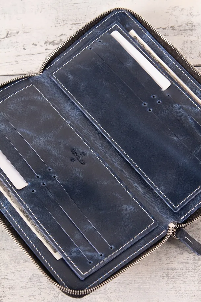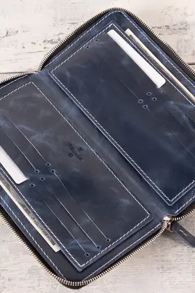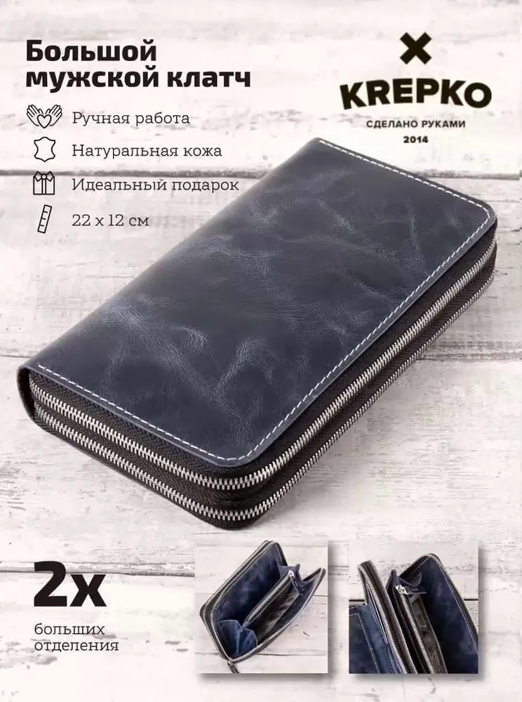 Портмоне из натуральной кожи от KREPKO Кожаный органайзер KREPKO — мужской клатч-портмоне на двух молниях ручной работы. Вместительные отделения для карт, визиток, купюр, автодокументов, паспорта. Компактный размер: 22×12 см. Стильный и надежный аксессуар для порядка. Отличный подарок на 23 февраля, Новый год, ДР! Купите премиум-функционал! Характеристики ‣ Материал: Натуральная кожа премиум-класса (ручная работа) ‣ Отделения: Карты, визитки, купюры, автодокументы, паспорт ‣ Закрытие: Две молнии для безопасности ‣ Размер: 22×12 см — карманный клатч ‣ Дизайн: Компактный, вместительный ‣ Уход: Протирать влажной тканью Для офиса и автомобиля. Преимущества ‣ Функциональность: Все документы и карты в идеальном порядке. ‣ Долговечность: Премиум-кожа сохраняет вид десятилетиями. ‣ Удобство: Две молнии, компактный мужской формат. ‣ Стиль: Эстетика для ценителей качества. ‣ Подарок: Мужу, брату, коллеге на любой праздник. Надежный спутник водителя! Добавьте в корзину — подарок готов! Уникальность натуральной кожи Натуральная кожа pull up - это высококачественный материал, который изготавливается из цельных кожевенных шкур высшего качества. Его называют "тянущейся" или "скрученной" кожей, так как она легко поддаётся механическим воздействиям и при этом сохраняет свою эластичность и прочность. Преимущества кожи Pull Up ‣ Износостойкость: Служит годами без потери вида. ‣ Уникальность: Естественный рисунок — каждое изделие эксклюзивно. ‣ Натуральные оттенки: Не выцветает, подходит для аксессуаров и мебели. ‣ Дышащие свойства: Комфорт в жару/холод, легкий уход (протирать тканью). ‣ Главное — красота и долговечность: инвестиция в стиль на годы.