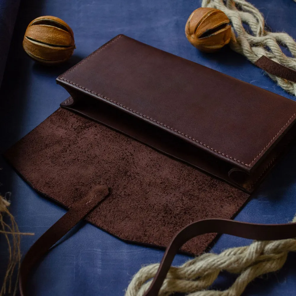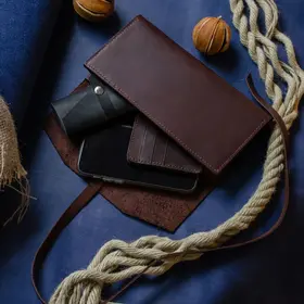 Небольшой, но вместительный кожаный клатч. Хорошо лежит в руке. Подойдет как для девушек, так и для мужчин. В него помещаются телефон, ключи документы, кошелек и прочие мелочи. Закрывается на хлястик. Положите его в сумку и используйте как дополнительный аксессуар, в моменты когда сумка не нужна. Так же клатч будет отличным отдельным аксессуаром, который всегда можно взять с собой.