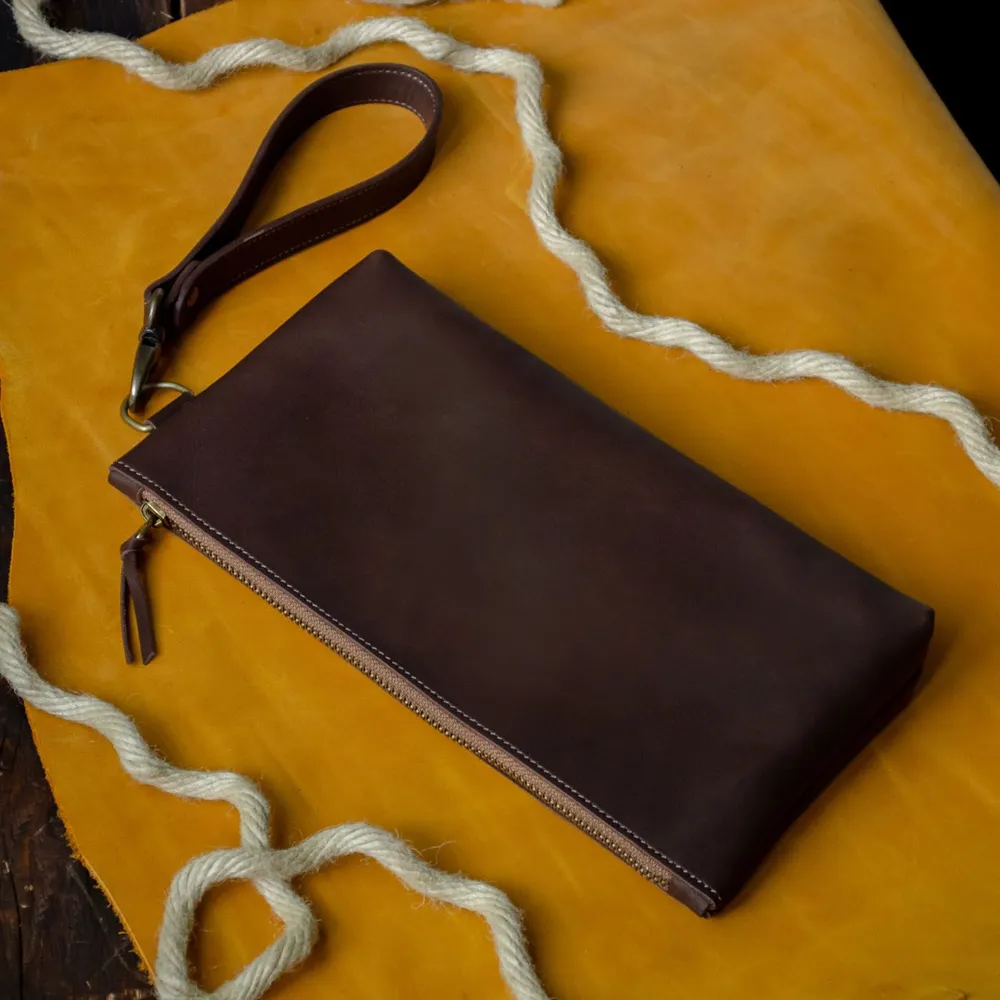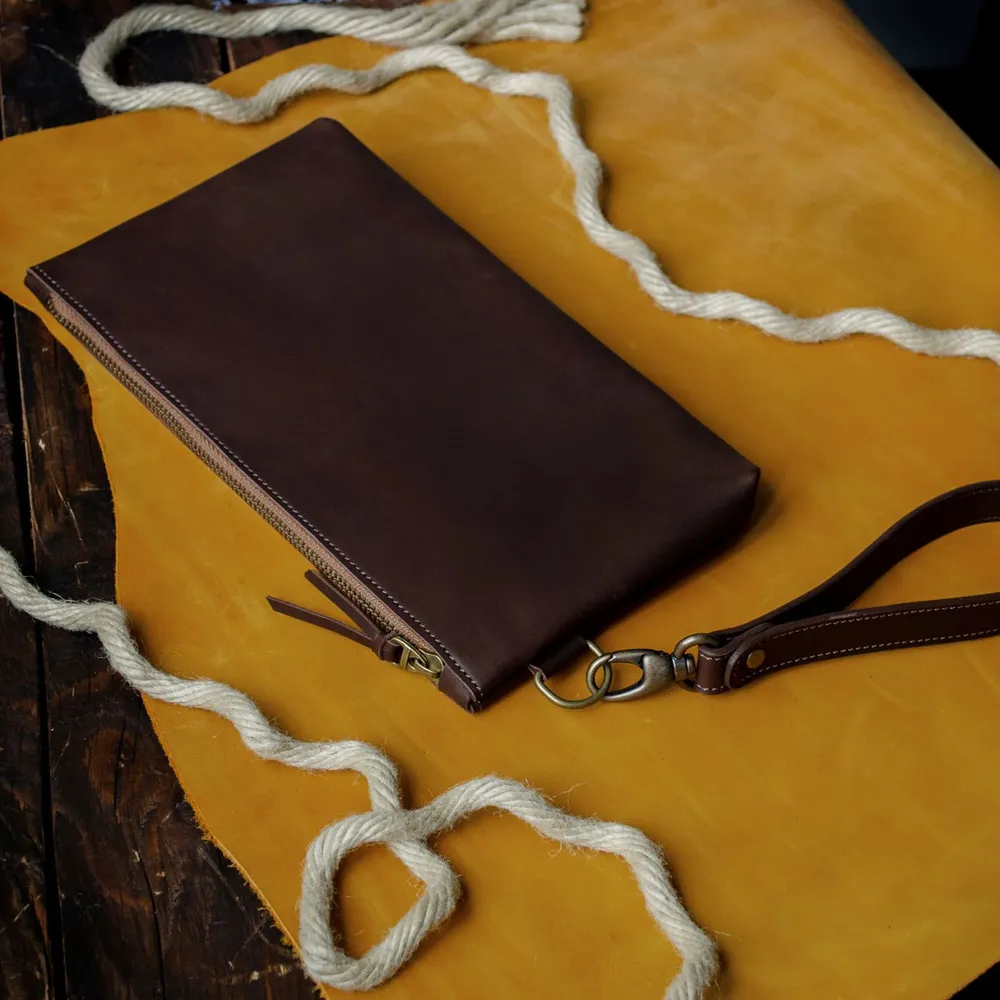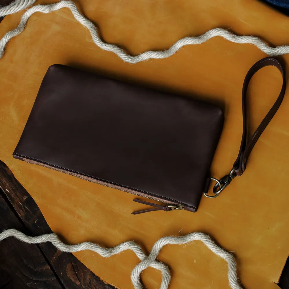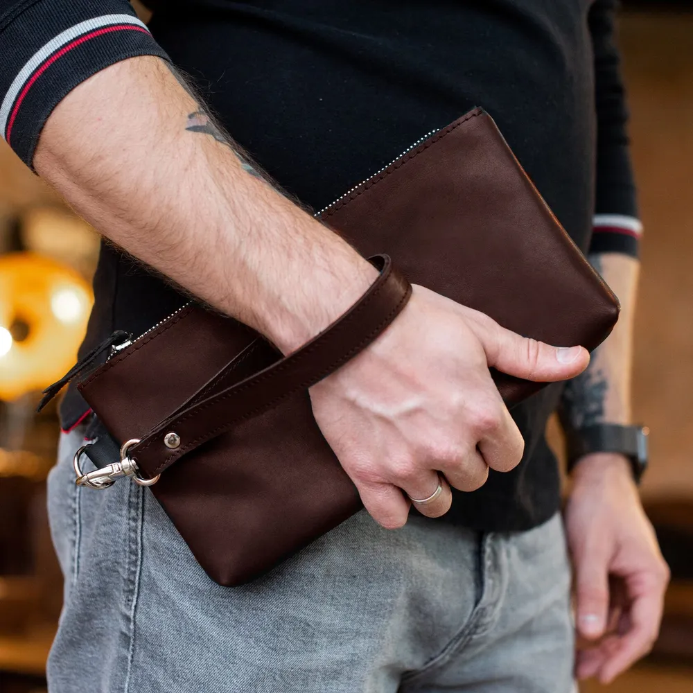 Вместительная борсетка для мужчин. На молнии с хлятиком для руки. Одно отделение