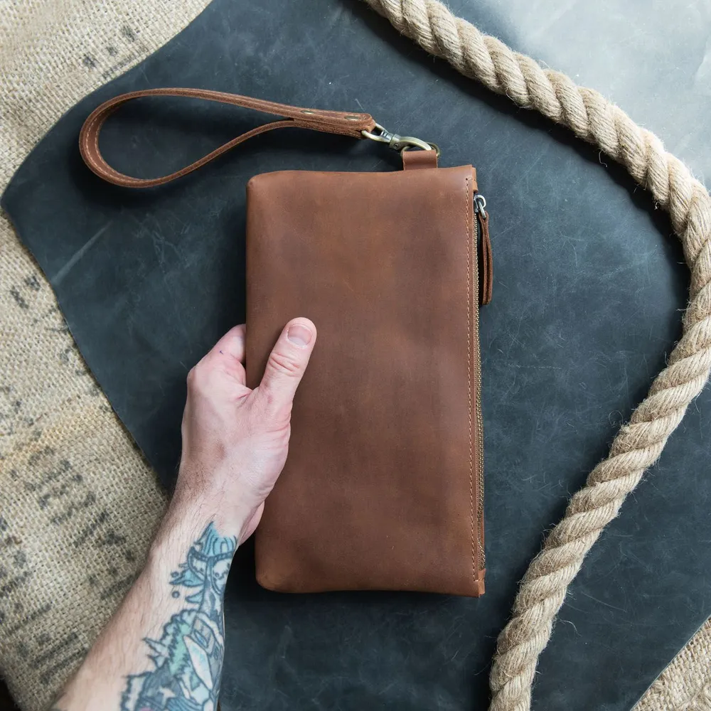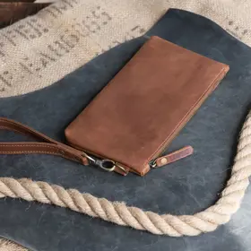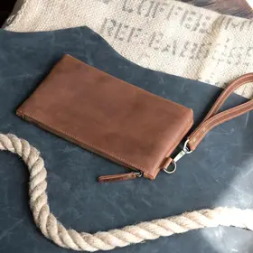 Вместительная борсетка для мужчин. На молнии с хлятиком для руки. Внутри отделение на молнии. Отделение для паспорта и карточек.