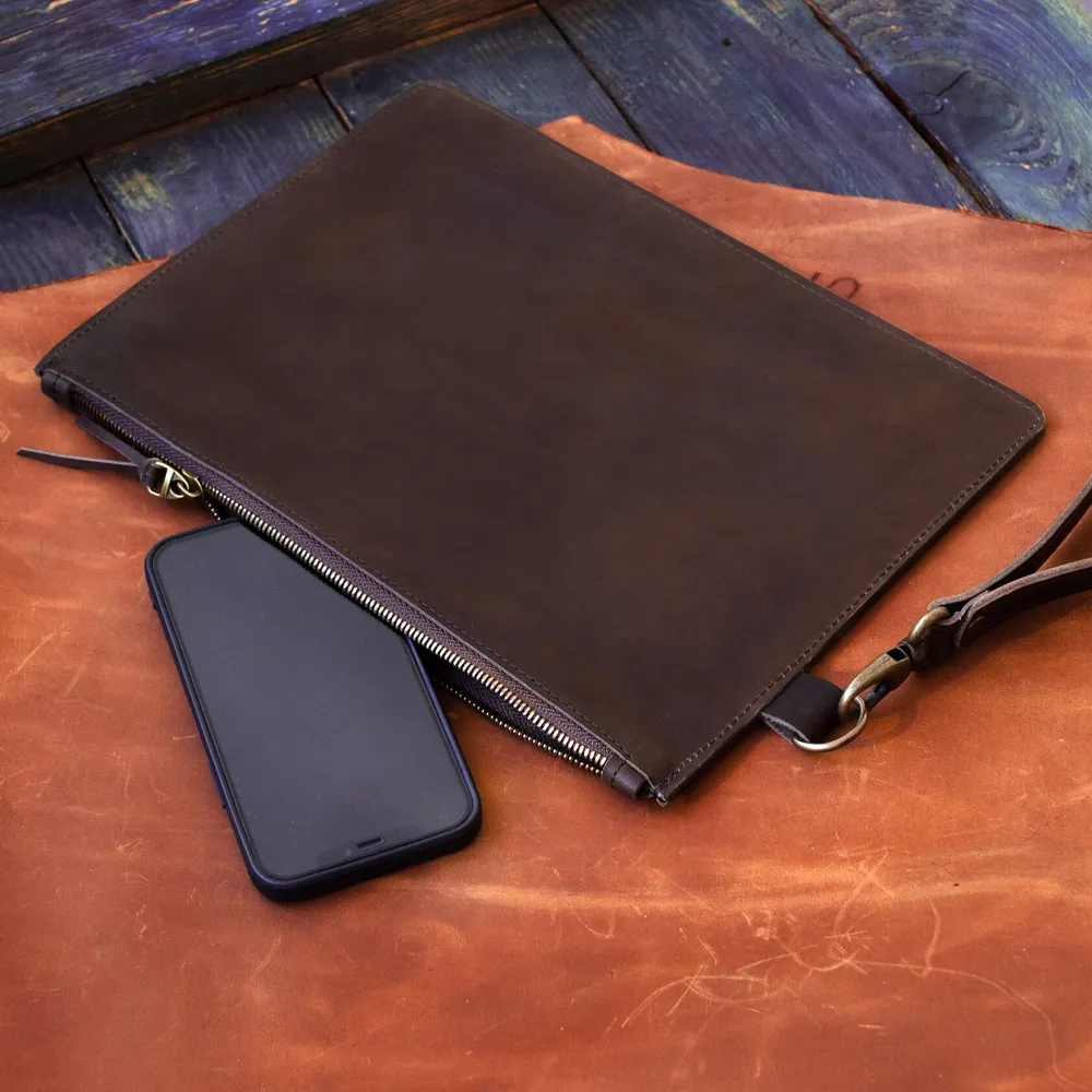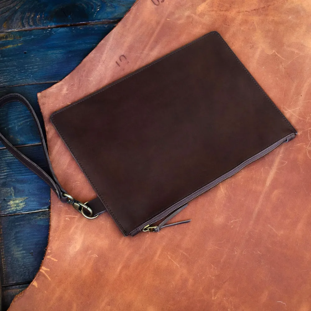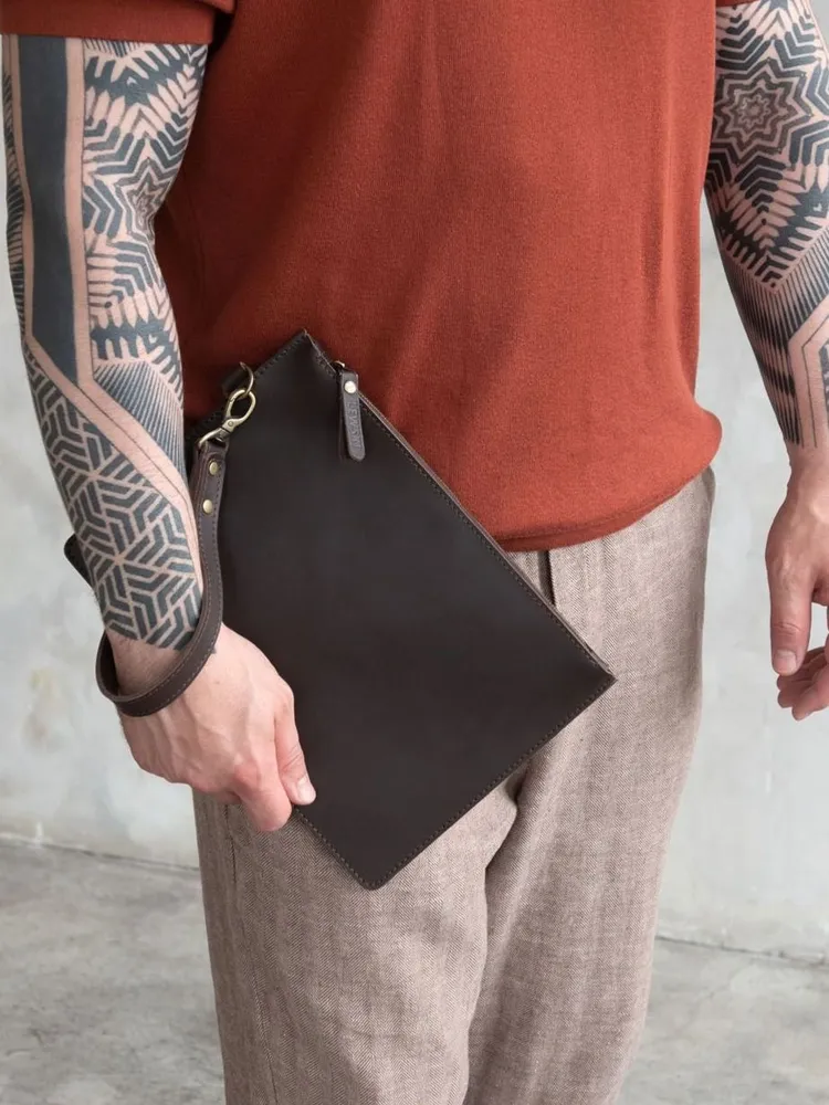 Вместительная борсетка для мужчин. На молнии с хлятиком для руки. Внутри отделение на молнии. Отделение для паспорта и карточек.