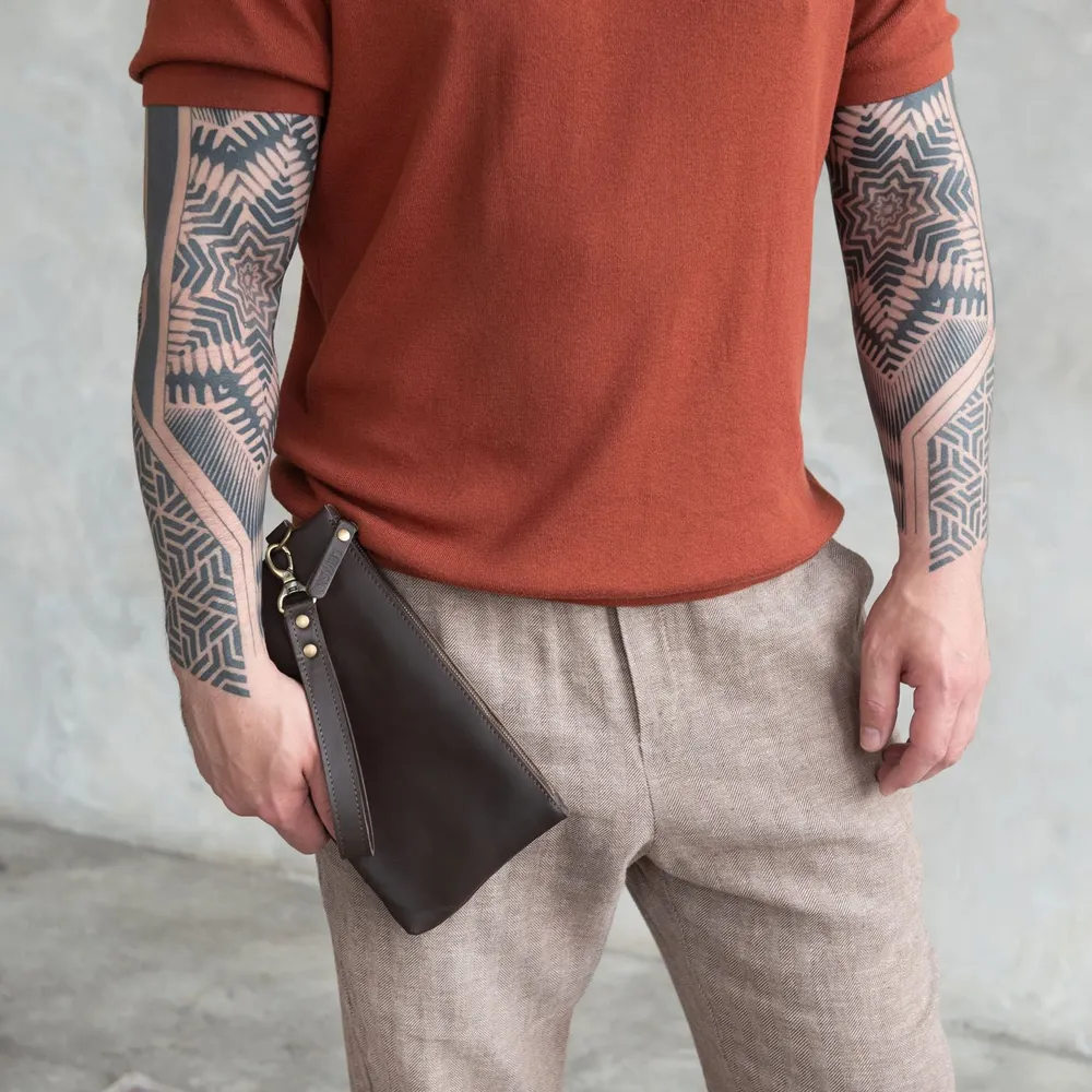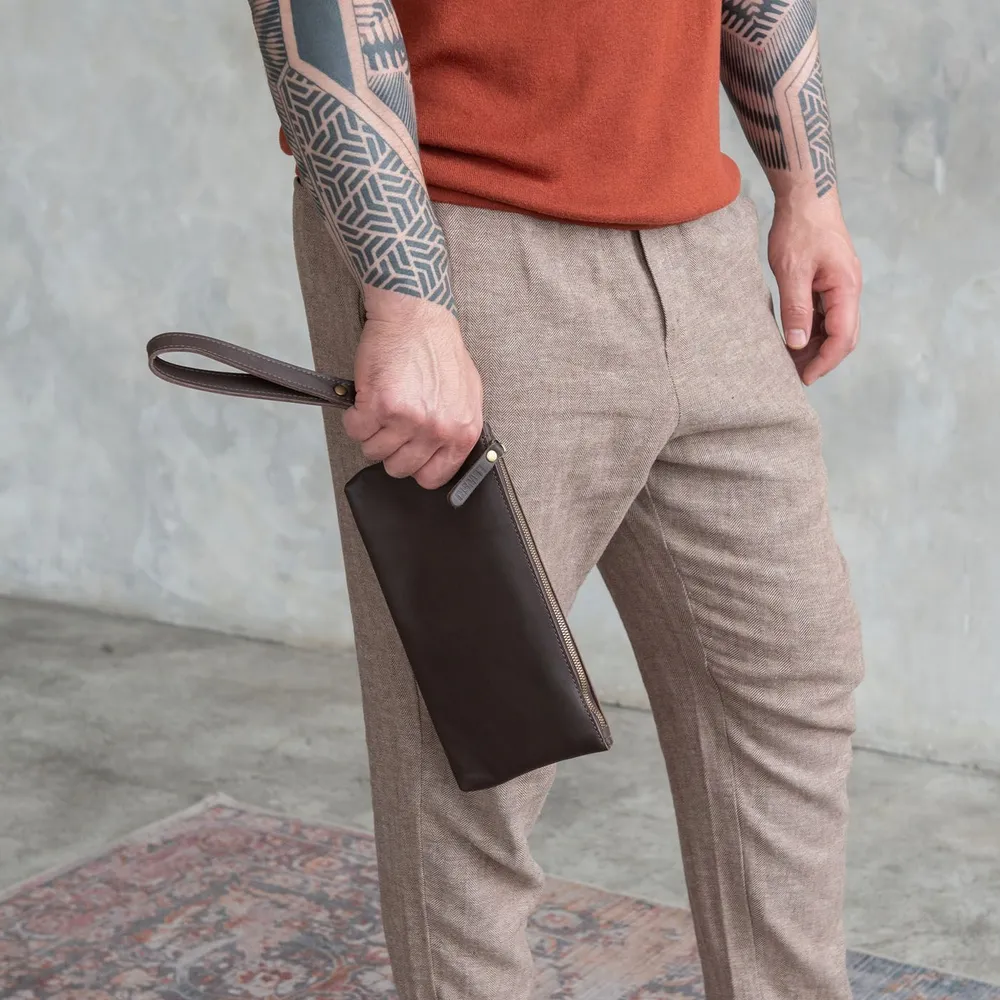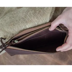 Вместительная борсетка для мужчин. На молнии с хлятиком для руки. Внутри отделение на молнии. Отделение для паспорта и карточек.