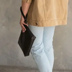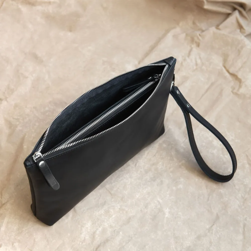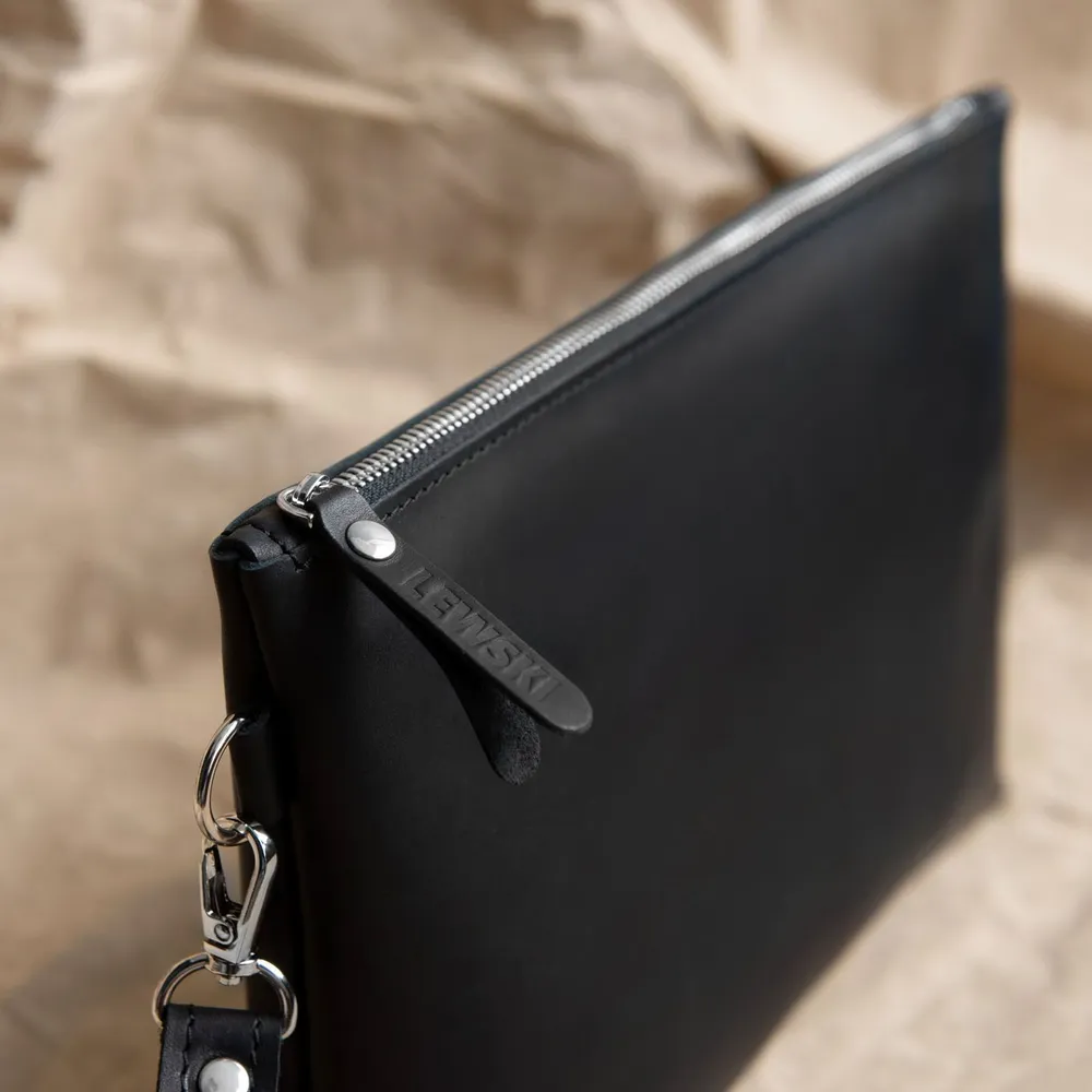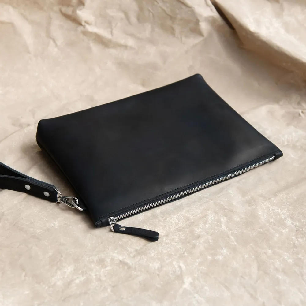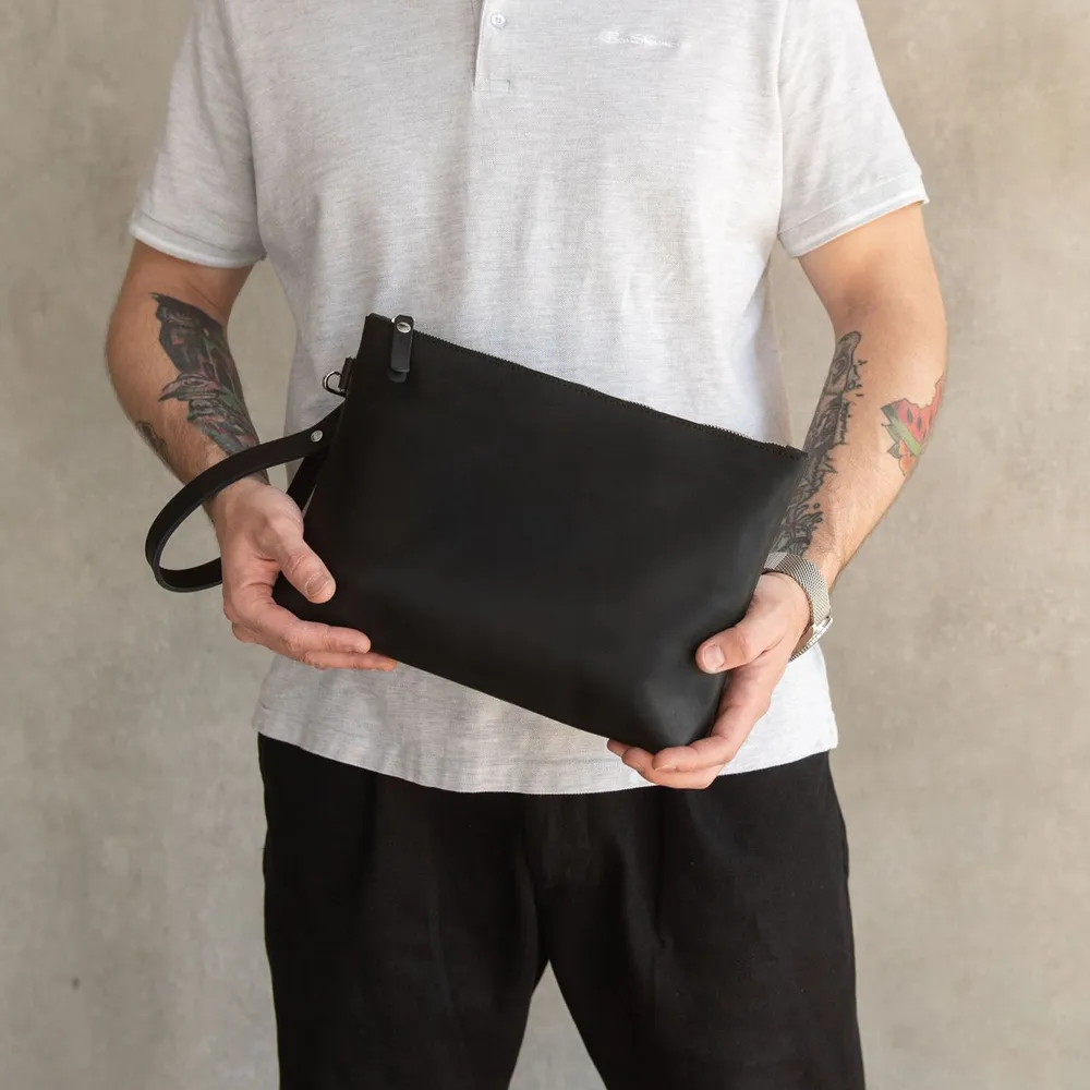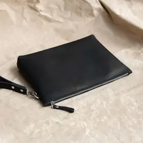 Вместительный кожаный мужской клатч на молнии из натуральной плотной кожи.Внутри есть карман на молнии и два отделения.
