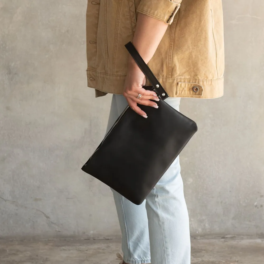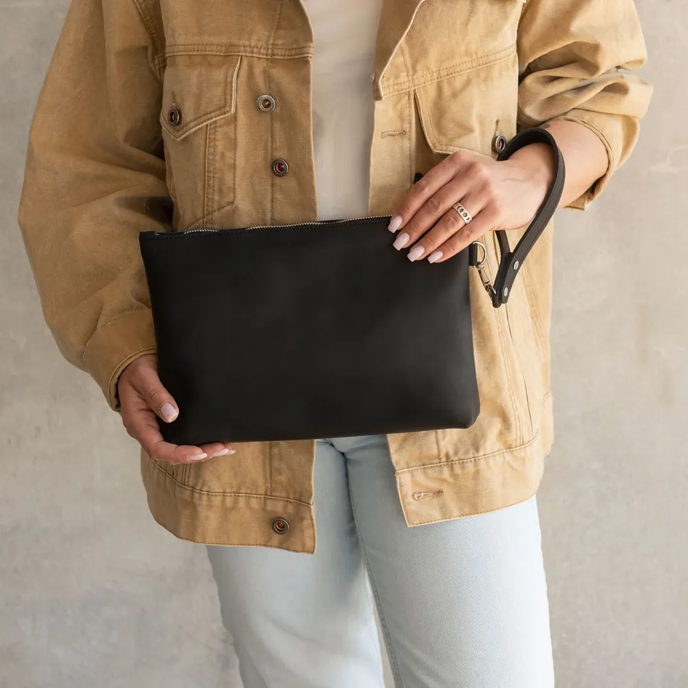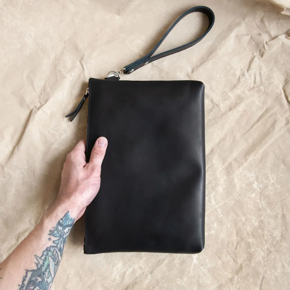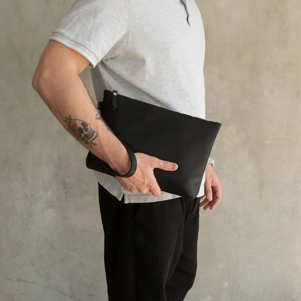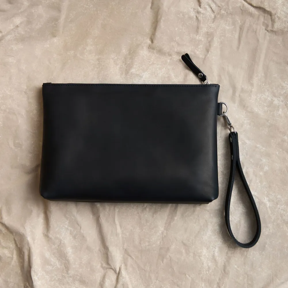 Вместительный кожаный мужской клатч на молнии из натуральной плотной кожи.Внутри есть карман на молнии и два отделения.