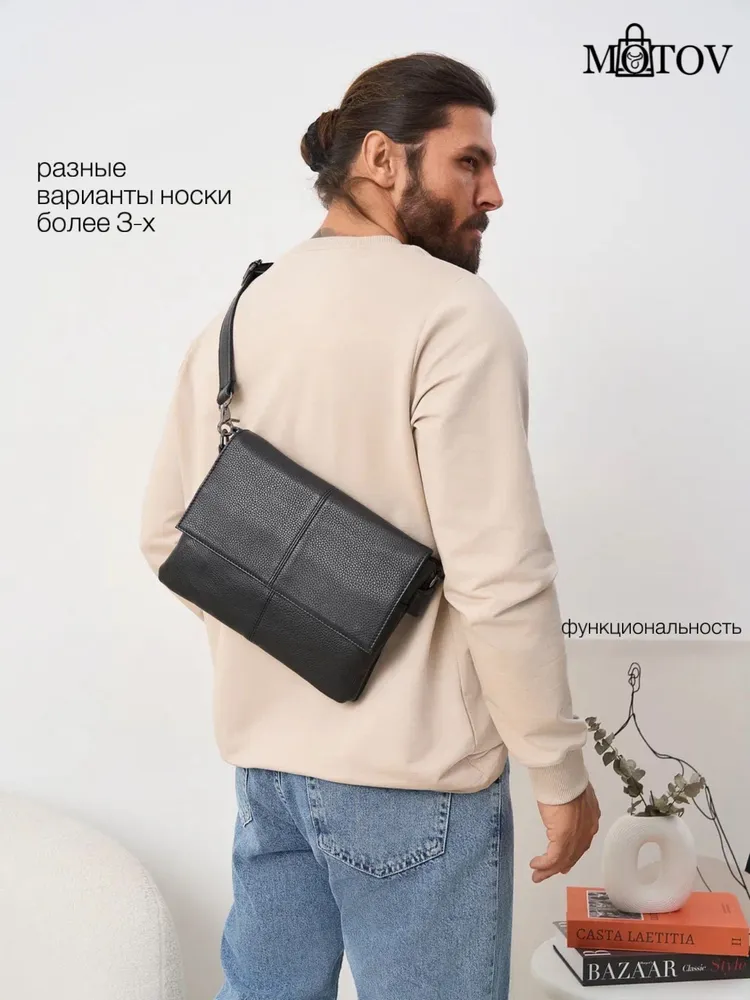 Мужская сумка через плечо кожаная представляет собой стильный и удобный аксессуар, идеально подходящий для повседневного и делового стиля. Сумка клатч из натуральной воловьей кожи, что обеспечивает ее долговечность и привлекательность. Сумка комфортная в носке, подходит как взрослым мужчинам, так и подросткам, привнося модный элемент в любой наряд. Аксессуар универсален благодаря своей многофункциональности, впишется в базовый гардероб. Барсетка мужская позволяет носить необходимые вещи всегда под рукой. Модель водонепроницаема, материалы премиум - качества, что делает ее практичной при любых погодных условиях. Нагрудная конструкция на внутренней стороне обеспечивает защиту ваших вещей. Внутренние карманы организованно размещают ключи, зажигалки, телефон, документы и другие мелочи. Благодаря ремням барсетку маленькую можно носить на плече, как портмоне на руку может быть использована также как сумка на запястье или на грудь. Выбор стороны ношения: его можно носить на правую, и на левую сторону, что добавляет комфорта владельцу. Надежные замки на молнии гарантируют безопасность содержимого внутри. Эта не маленькая аксессуар модная ручная кладь. Вписывается в любой стиль - от кэжуал до офисного дресс-кода - адаптируясь к различным образам минимализму в дизайне. Подходит для путешествий благодаря своей вместительности, имеет карман антивор. Подойдет в колледж, университет студенту. Барсетка выступает прекрасным подарком для мужчин в день рождения и на торжественные случаи благодаря своему элегантному внешнему виду и практической пользе. Черный клатч удачно дополнит внешний облик мужчину, мужу, парню, любимому, который ценит качество и стильность деталей своего гардероба. Модная новинка бренда также использоваться для удобного хранения нужных комнатных приборов или личных вещей ежедневно или во время активного отдыха. Мы, как Фамильный бренд MOTOV специализируемся на изделиях из натуральной воловьей кожи, и можем Вас порадовать фабричным качеством по приятным ценам.