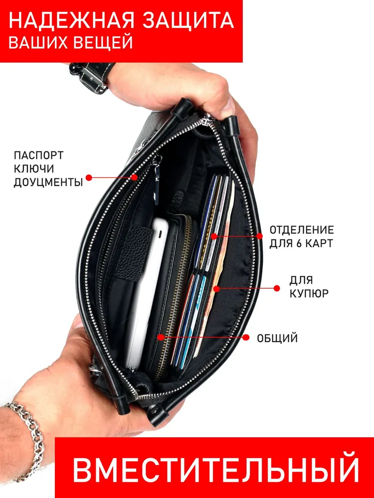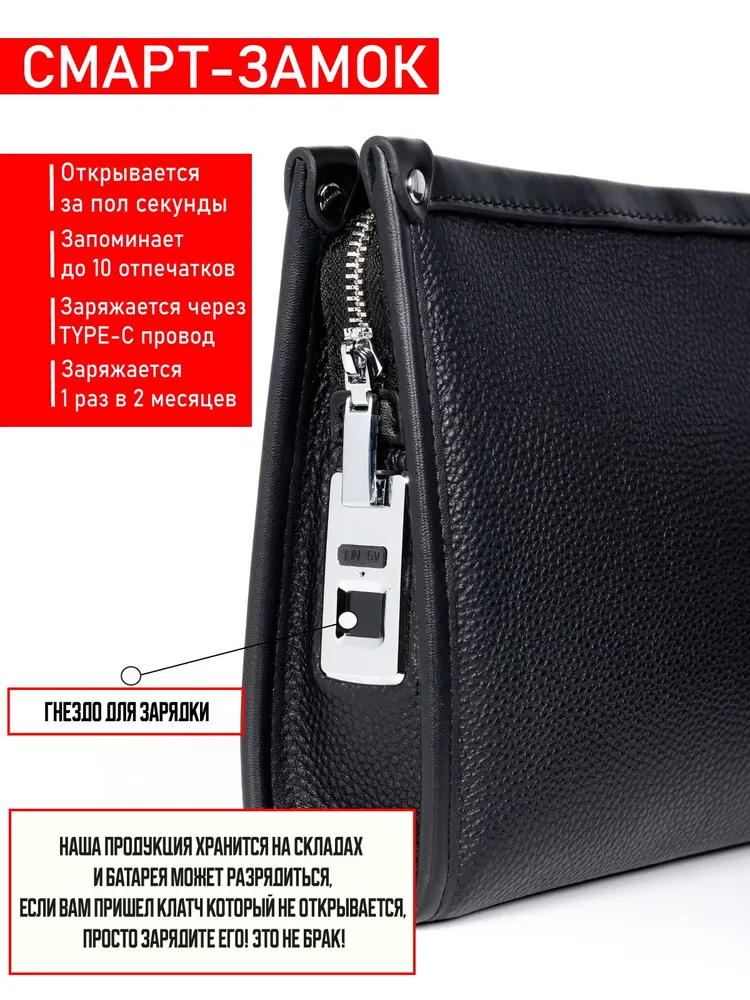Стильная мужская барсетка с замком по отпечатку пальца из натуральной кожи ревратите повседневный аксессуар в символ технологичного стиля! Наша барсетка-портмоне из натуральной кожи сочетает элегантность, функциональность и инновации. Это не просто кошелек — это надежный хранитель ваших ценностей и безупречного имиджа. Презентабельная упаковка портмоне Барсетка поставляется в подарочной упаковке, что делает его отличным вариантом для подарка близким или коллегам. Надежность на долгое время. Благодаря крепкой фурнитуре, качественному покрытию и прочным швам, этот мужской портмоне прослужит вам долгое время! Практичный размер Стильный и практичный аксессуар для мужчин, которые ценят Минимализм и современные тренды. Внутреннее пространство продумано до мелочей. Портмоне кожаное оснащено несколькими карманами для карт, что позволяет удобно организовать ваши банковские и дисконтные карты. Стиль и элегантность вашего образа. Эта барсетка станет отличным дополнением к любому гардеробу и незаменимым атрибутом для активной жизни. Выбор в пользу натуральной кожи гарантирует долгий срок службы, а также сохранение презентабельного внешнего вида на протяжении многих лет. Идеальный подарок для мужчины Упаковано в элегантную коробку. Удивите на день рождения, 23 февраля, юбилей или просто без повода. Практично, технологично, солидно! Для кого эта барсетка? — Для тех, кто ценит безопасность и инновации. — Для поклонников минимализма с харизматичным акцентом. — Для деловых людей, которые выбирают премиум-качество. Натуральная кожа. Умная защита. Неповторимый стиль. Подарите себе или близкому мужчине аксессуар, который подчеркнет его индивидуальность и заботу о деталях! СМАРТ - ЗАМОК Заряжается через TYPE - C Держит заряд до 2 месяцев Замок по отпечатку пальца Замок по отпечатку пальца с памятью до 10 отпечатков — ваш сейф в миниатюре! Настройте доступ для себя и своих близких. Универсальный Мужской клатч идеально подходит для карт, документов, купюр и мелочи. Стильный аксессуар дополнит и деловой образ, и повседневный лук.