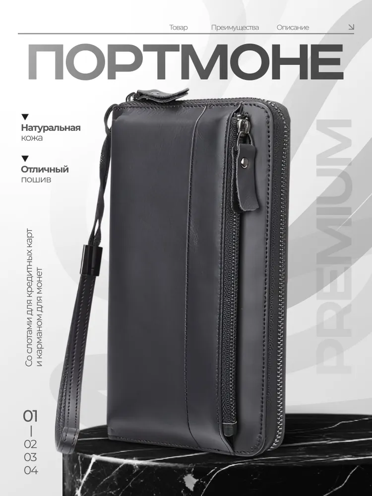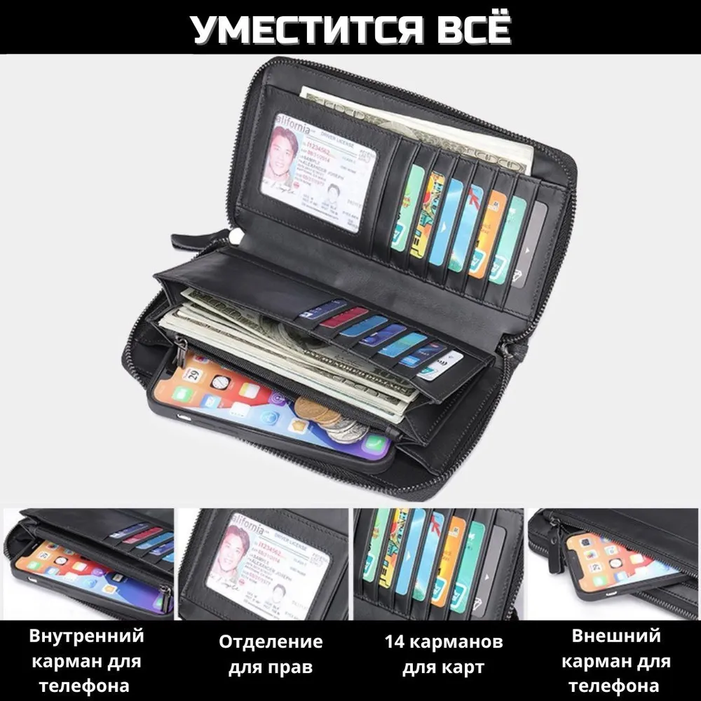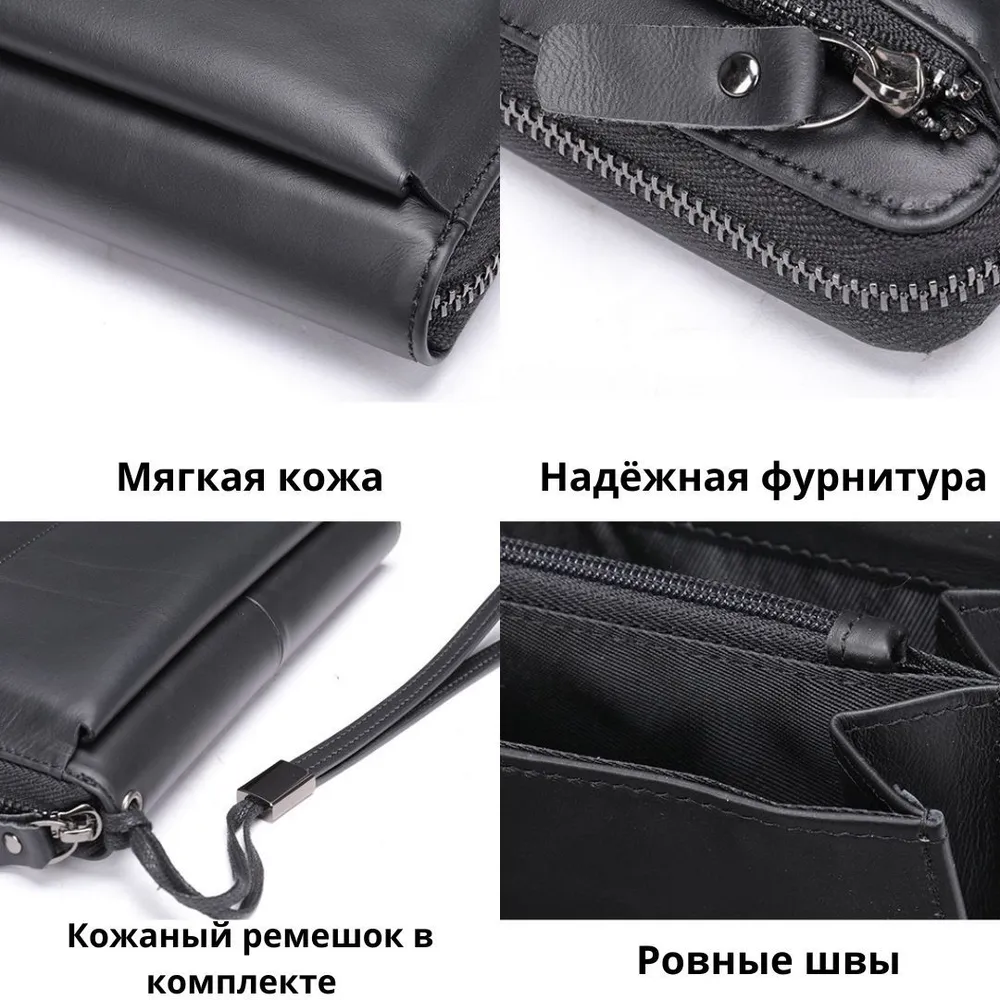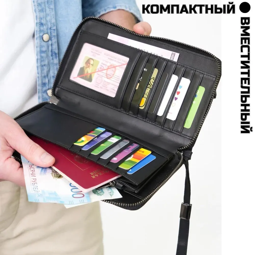 Клатч мужской Стильное портмоне для мужчин, выполненное из натуральной кожи, станет идеальным аксессуаром для повседневного использования. Оно сочетает в себе функциональность и элегантность, что делает его отличным выбором для деловых встреч и повседневных задач. Удобный размер Благодаря размерам, кошелек легко держать в руках, что обеспечивает его привлекательность и практичность для каждого мужчины Внутри вы найдете множество отделений для хранения документов, водительских прав и банковских карт. Органайзер поможет удобно расположить все необходимые вещи. Кошелек также имеет специальное отделение для телефона, что обеспечивает легкий доступ к устройству в любое время. Ремешок добавляет дополнительную практичность, позволяя носить его как клатч или использовать как портмане под документы. Большое внимание уделено качеству исполнения: кожа обладает прочностью и долговечностью, что гарантирует долгий срок службы Этот аксессуар прекрасно подойдет как подарок взрослому мужчине на любой случай будь то на 23 февраля или день рождения