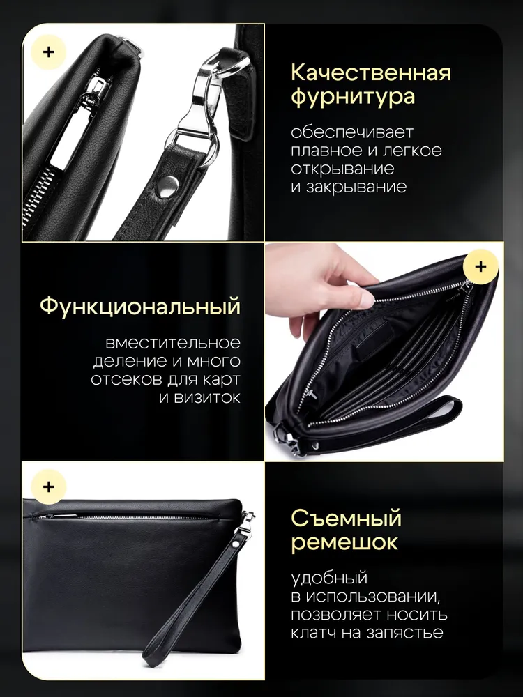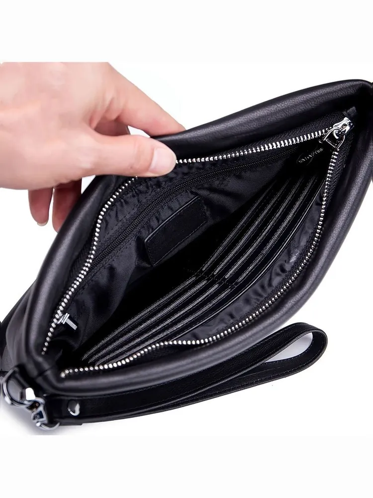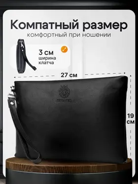 Портмоне мужское Элегантное мужское портмоне из натуральной кожи черного цвета – это стильный и практичный аксессуар, который идеально подойдет для повседневного использования. Клатч мужской из натуральной кожи сочетает в себе лаконичный дизайн и функциональность, делая его незаменимым спутником современного мужчины. Эргономичность Внутри мужского портмоне для документов и денег предусмотрены специальные кармашки для банковских карт, а также достаточно места для хранения всего необходимого. Натуральная кожа Это кожаное портмоне мужское выполнено из высококачественной натуральной кожи, что гарантирует долговечность и приятную текстуру. Его компактные размеры 27 на 19 см позволяют удобно хранить документы, деньги и другие важные мелочи Компактный дизайн Кожаный портмоне – не просто аксессуар, а надежный помощник для хранения важных вещей. Если вы ищете мужской клатч из натуральной кожи или портмоне мужское для документов, этот вариант станет отличным выбором.