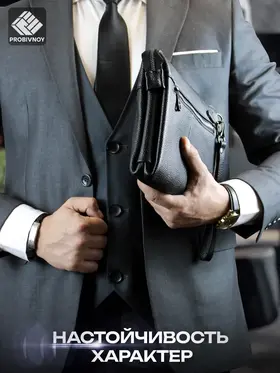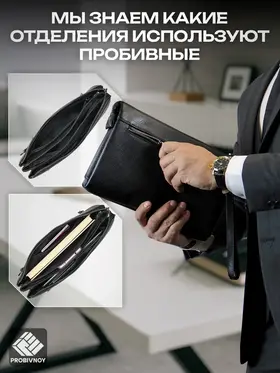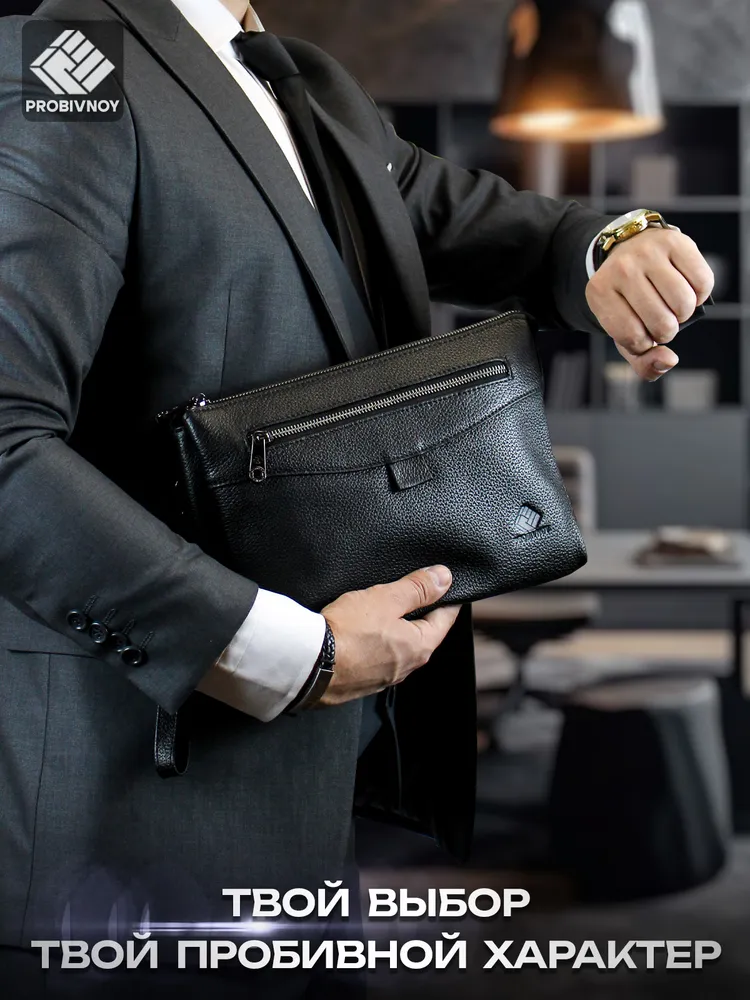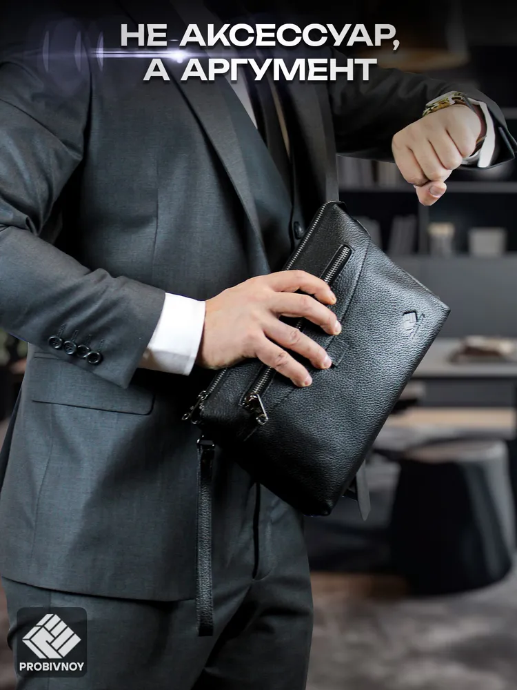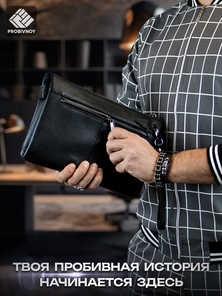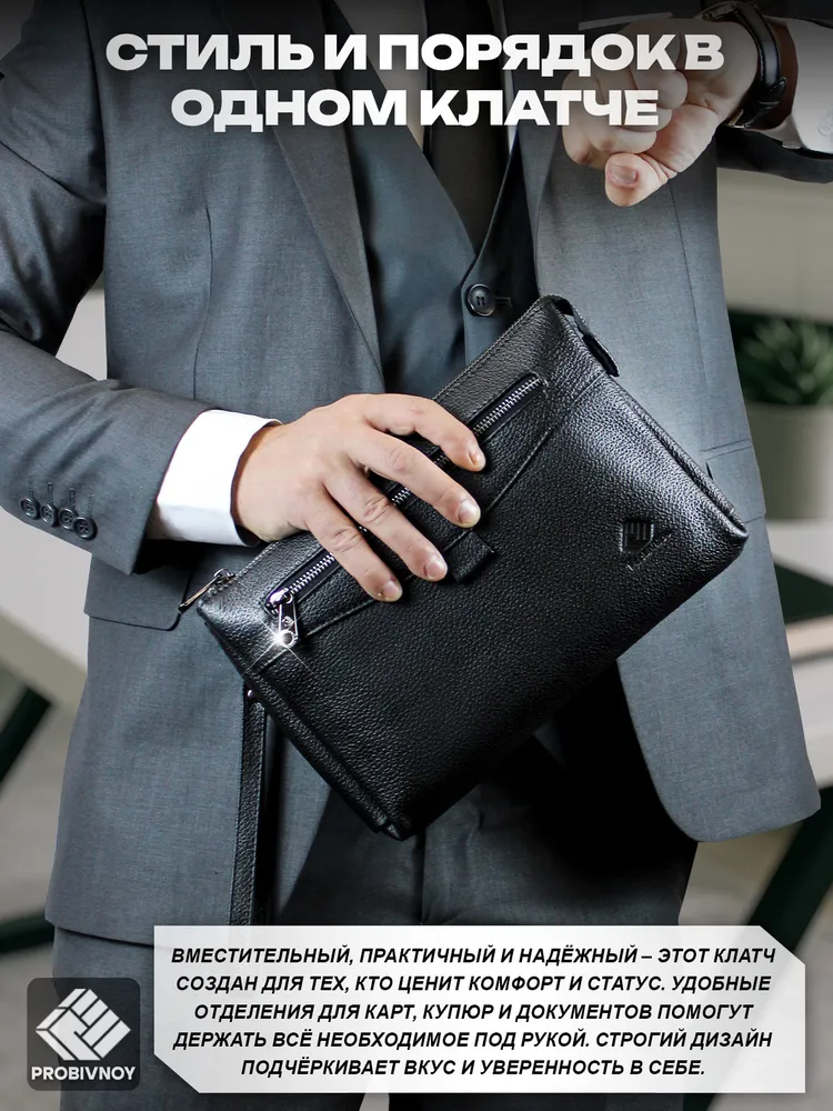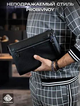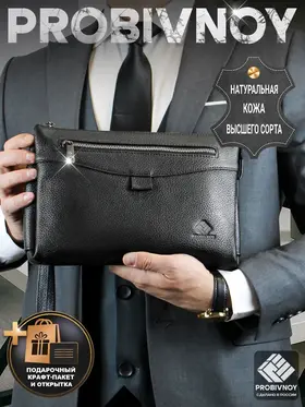Стильный клатч мужской натуральная кожа черный от бренда PROBIVNOY – это идеальное сочетание функциональности и статусного внешнего вида. Наш клатч мужской из натуральной кожи изготовлен из отборных кожевенных материалов. Этот клатч мужской кожаный прекрасно подойдет как мужской клатч под документы для деловых встреч, так и в качестве клатча мужского для телефона и повседневных мелочей. Удобный мужской кожаный органайзер с продуманными отделениями позволит содержать все необходимое в идеальном порядке. Для ценителей классики предлагаем элегантные барсетки мужские кожаные из коллекции PROBIVNOY. Барсетка мужская натуральная кожаная выполнена в лучших традициях кожевенного мастерства – это не просто аксессуар, а мужская барсетка натуральная, которая подчеркнет ваш статус. В ассортименте представлена барсетка из натуральной кожи мужская различных размеров, включая компактную барсетку мужскую натуральную кожаную и вместительную мужскую кожаную сумку-планшет. Особое внимание заслуживает кожаная сумка-конверт с минималистичным дизайном. Каждый аксессуар бренда Пробивной – будь то мужской кожаный кошелек-клатч, стильное портмоне или ультратонкий slim-портфель из кожи – это воплощение безупречного качества и внимания к деталям. Российское производство гарантирует долговечность и премиальную фактуру каждого изделия. ПРОБИВНОЙ - это об идеальных подарках вашим близким. Этот элитный клатч мужской для документов станет отличным презентом для: мужчины — мужу, отцу, брату, сыну или коллеге ; девушки — для стильных и практичных женщин ; начальника — статусный аксессуар для руководителя клатч мужской для телефона. Эта сумка для документов мужская А5 натуральная кожа станет идеальным подарком на 23 Февраля, День рождения, Новый год, юбилей или выпускной - практичный презент для защитника Отечества, стильный аксессуар для успешного человека или роскошный подарок на особую дату. Выбирайте PROBIVNOY – выбирайте аксессуары, которые созданы чтобы подчеркнуть ваш стиль и статус!