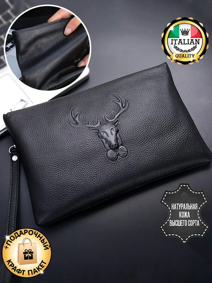 Стильный клатч мужской натуральная кожа черный от бренда PROBIVNOY – это идеальное сочетание функциональности и статусного внешнего вида. Наш клатч мужской из натуральной кожи изготовлен из отборных кожевенных материалов. Этот клатч мужской кожаный прекрасно подойдет как мужской клатч под документы для деловых встреч, так и в качестве клатча мужского для телефона и повседневных мелочей. Удобный мужской кожаный органайзер с продуманными отделениями позволит содержать все необходимое в идеальном порядке. Для ценителей классики предлагаем элегантные барсетки мужские кожаные из коллекции PROBIVNOY. Барсетка мужская натуральная кожаная выполнена в лучших традициях кожевенного мастерства – это не просто аксессуар, а мужская барсетка натуральная, которая подчеркнет ваш статус. В ассортименте представлена барсетка из натуральной кожи мужская различных размеров, включая компактную барсетку мужскую натуральную кожаную и вместительную мужскую кожаную сумку-планшет. Особое внимание заслуживает кожаная сумка-конверт с минималистичным дизайном. Каждый аксессуар бренда Пробивной – будь то мужской кожаный кошелек-клатч, стильное портмоне или ультратонкий slim-портфель из кожи – это воплощение безупречного качества и внимания к деталям. Российское производство гарантирует долговечность и премиальную фактуру каждого изделия. ПРОБИВНОЙ - это об идеальных подарках вашим близким. Этот элитный клатч мужской для документов станет отличным презентом для: мужчины — мужу, отцу, брату, сыну или коллеге ; девушки — для стильных и практичных женщин ; начальника — статусный аксессуар для руководителя клатч мужской для телефона. Эта сумка для документов мужская А5 натуральная кожа станет идеальным подарком на 23 Февраля, День рождения, Новый год, юбилей или выпускной - практичный презент для защитника Отечества, стильный аксессуар для успешного человека или роскошный подарок на особую дату. Выбирайте PROBIVNOY – выбирайте аксессуары, которые созданы чтобы подчеркнуть ваш стиль и статус!
