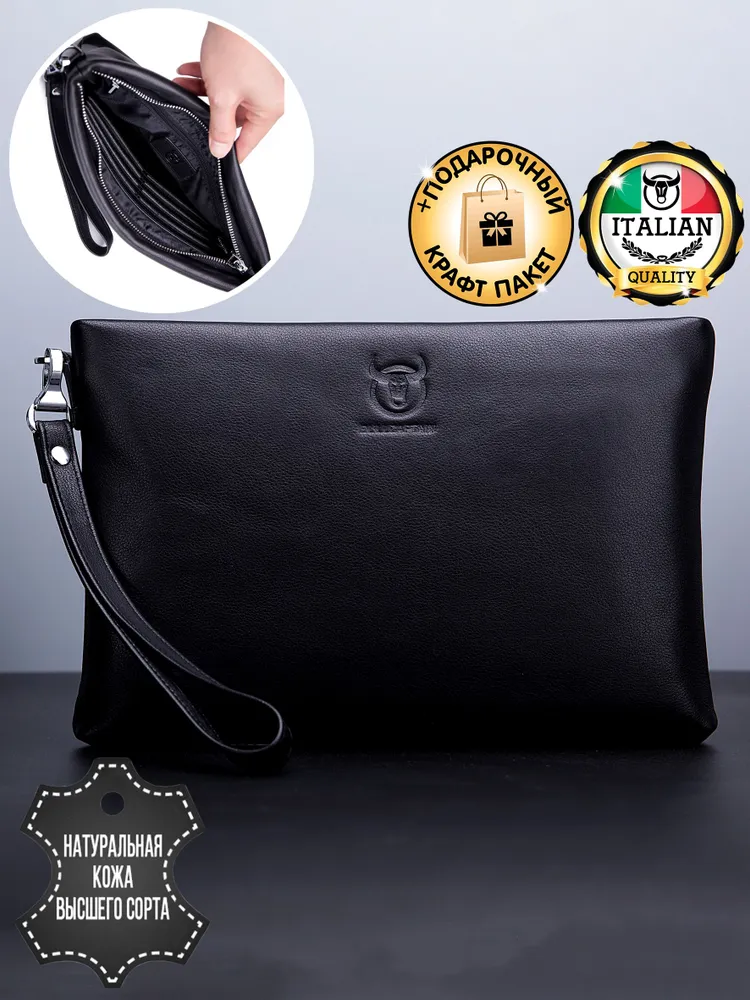 Стильный клатч мужской натуральная кожа черный от бренда PROBIVNOY – это идеальное сочетание функциональности и статусного внешнего вида. Наш клатч мужской из натуральной кожи изготовлен из отборных кожевенных материалов. Этот клатч мужской кожаный прекрасно подойдет как мужской клатч под документы для деловых встреч, так и в качестве клатча мужского для телефона и повседневных мелочей. Удобный мужской кожаный органайзер с продуманными отделениями позволит содержать все необходимое в идеальном порядке. Для ценителей классики предлагаем элегантные барсетки мужские кожаные из коллекции PROBIVNOY. Барсетка мужская натуральная кожаная выполнена в лучших традициях кожевенного мастерства – это не просто аксессуар, а мужская барсетка натуральная, которая подчеркнет ваш статус. В ассортименте представлена барсетка из натуральной кожи мужская различных размеров, включая компактную барсетку мужскую натуральную кожаную и вместительную мужскую кожаную сумку-планшет. Особое внимание заслуживает кожаная сумка-конверт с минималистичным дизайном. Каждый аксессуар бренда Пробивной – будь то мужской кожаный кошелек-клатч, стильное портмоне или ультратонкий slim-портфель из кожи – это воплощение безупречного качества и внимания к деталям. Российское производство гарантирует долговечность и премиальную фактуру каждого изделия. ПРОБИВНОЙ - это об идеальных подарках вашим близким. Этот элитный клатч мужской для документов станет отличным презентом для: мужчины — мужу, отцу, брату, сыну или коллеге ; девушки — для стильных и практичных женщин ; начальника — статусный аксессуар для руководителя клатч мужской для телефона. Эта сумка для документов мужская А5 натуральная кожа станет идеальным подарком на 23 Февраля, День рождения, Новый год, юбилей или выпускной - практичный презент для защитника Отечества, стильный аксессуар для успешного человека или роскошный подарок на особую дату. Выбирайте PROBIVNOY – выбирайте аксессуары, которые созданы чтобы подчеркнуть ваш стиль и статус!