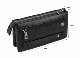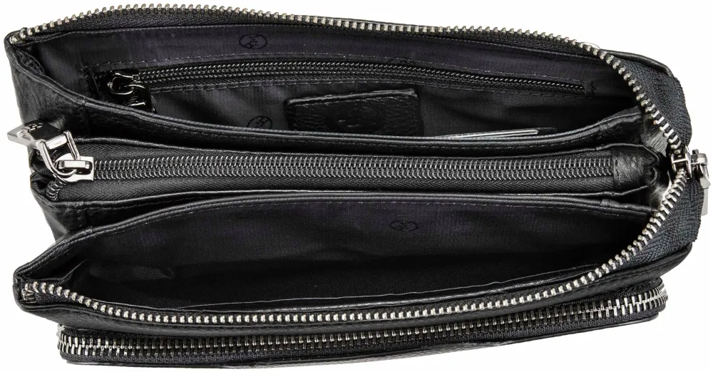 Внутри основного отделения: четыре открытых кармашка, пара потайных карманов на молнии для самых важных бумаг и еще один, спрятанный на задней стенке. Снаружи, спереди, – удобный карман на молнии для телефона, чтобы всегда был под рукой, а сзади – еще один карман на молнии и удобная петля, чтобы носить в руке. В комплекте идет изящный ремешок-хлястик на запястье и пыльник для бережного хранения. Размеры идеальны: 22 см в ширину, 13 см в высоту и всего 5 см в толщину. 3038 5215-5