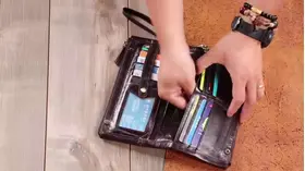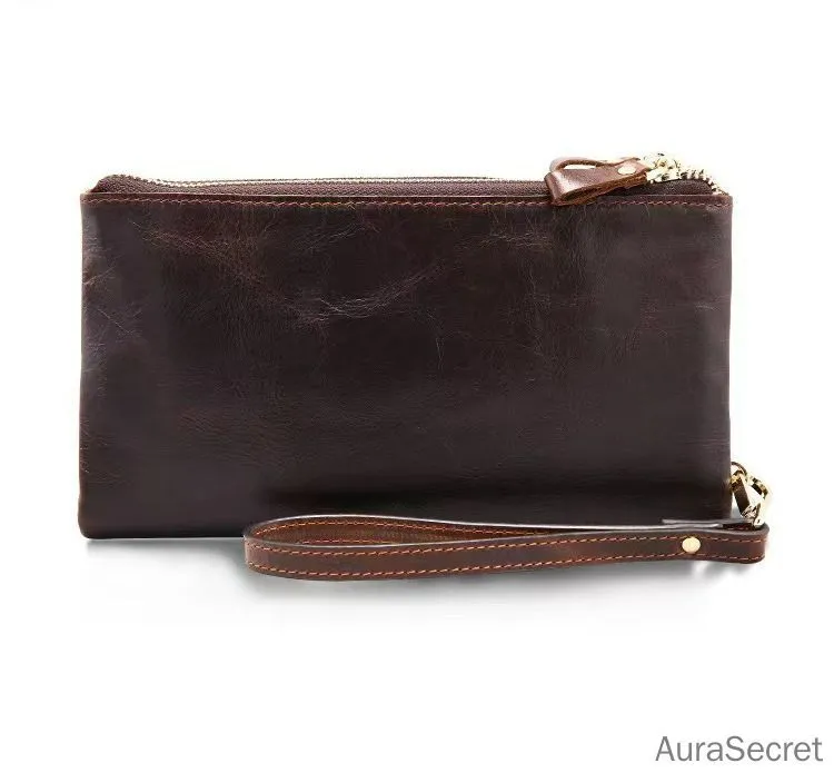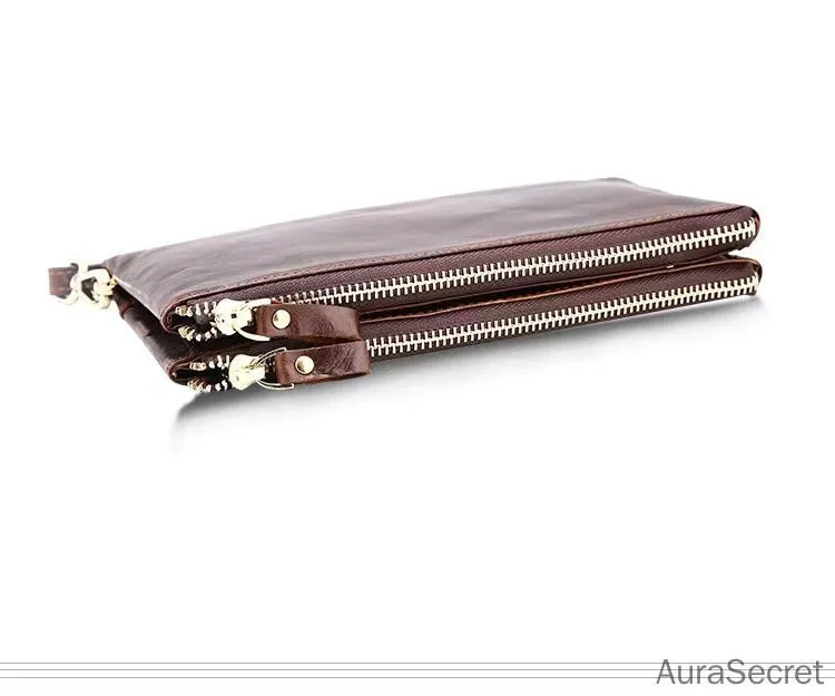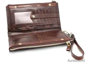 Материал: натуральная кожа Способ открывания: застежка-молния Текстура подкладки: полиэстер Размер: 22 * 12 * 3,5 см
