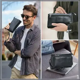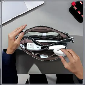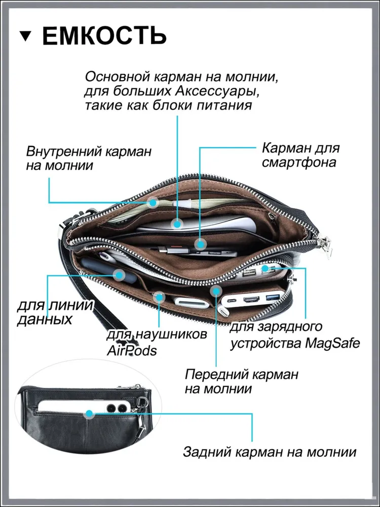 Как выбрать топовый органайзер для гаджетов? Фишка этой модели все провода и девайсы всегда под рукой. Вмещает телефон, пауэрбанк, наушники и мелочевку. Материал: натуральная кожа Размер: 22.5x13x5 см Вес: 300 г Цвет: кофейный Совет от эксперта: бери с собой в поездки вещицы не растеряются!
