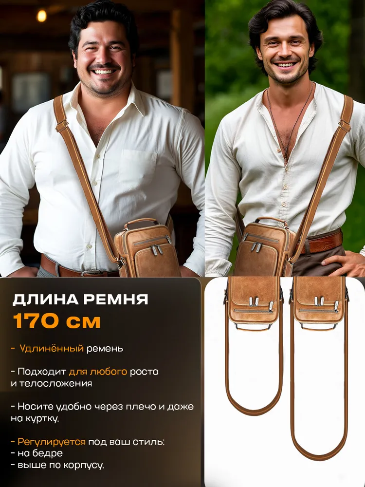 Мужская сумка через плечо Мужская кожаная сумка через плечо от бренда Borse Per La Vita - идеальный аксессуар для стильного и успешного мужчины. Сумка барсетка изготовлена из натуральной кожи высокого качества, что гарантирует ее долговечность и прочность. Регулируемый ремень сумки на плечо позволяет комфортно носить ее мужчинам любого роста и размера. Сумка имеет множество карманов и два больших отделения что идеально подходит для документов, телефона, планшета и других необходимых вещей. Натуральная кожа Классический цвет и текстура маслянистой кожи позволяет ей выделяться, но сочетаться с любым стилем одежды и обуви. Кросс боди – станет удачным решением для подростка студента в колледж или университет, а также для тех, кто ценит комфорт и удобство в повседневной жизни. Она идеально подходит как для повседневного использования, так и для особых случаев, таких как учеба, работа или деловые встречи.