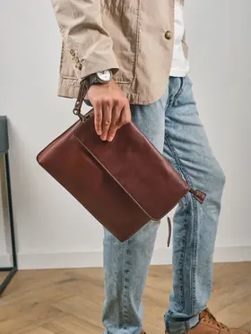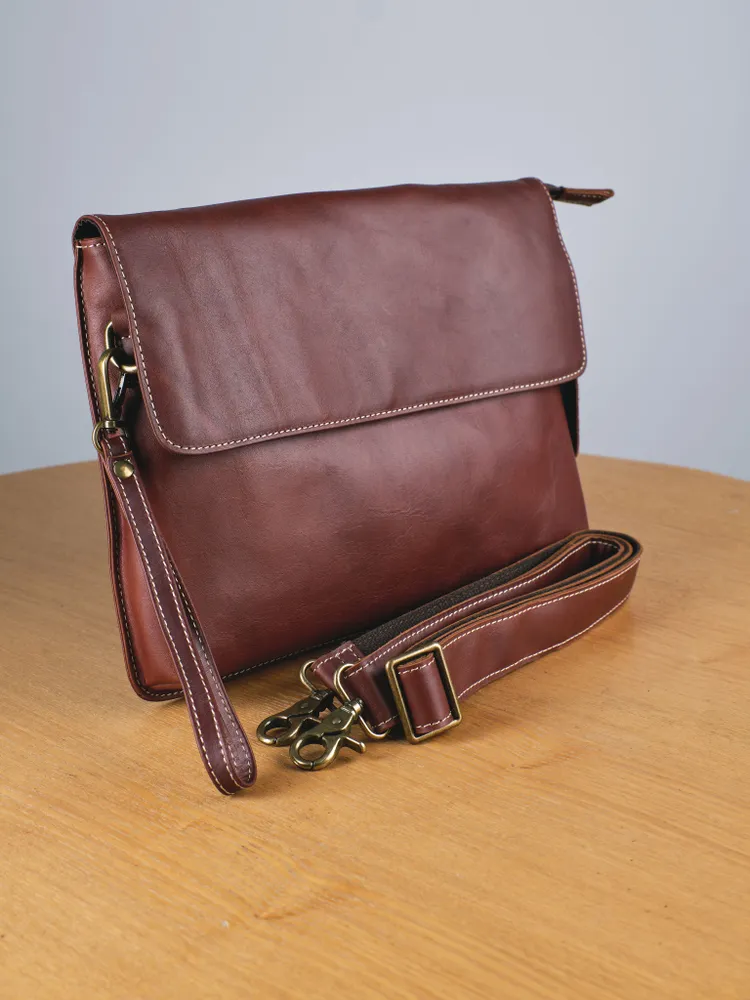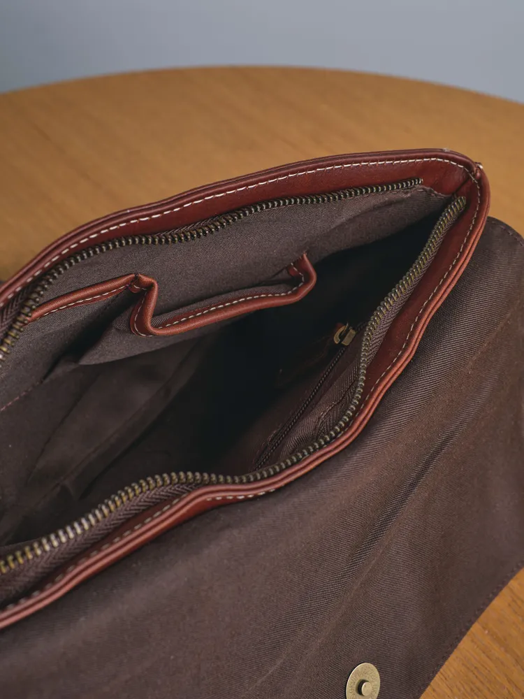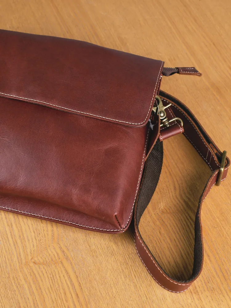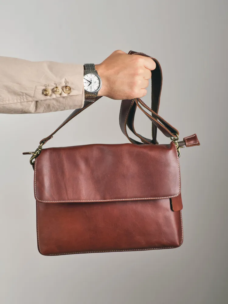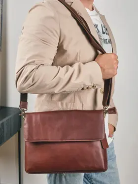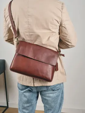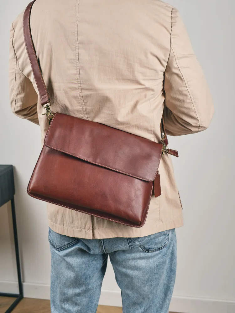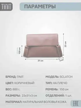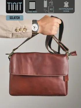 Cумка TINIT Sclatch Cтанет идеальным спутником в ежедневных поездках по городу и прогулках на природе! Качество, функциональность, стиль и компактный размер - вот, что нужно современному мужчине! Красота в мелочах Стильная сумка на плечо выполнена из прочной и приятной на ощупь натуральной воловьей кожи качества PREMIUM. Ровные, аккуратные швы, надежная фурнитура из латуни делают эту сумку через плечо притягательной и эстетически красивой, а также - долговечной и удобной в использовании. Будь уникальным, носи сумки от TINIT! Практичная Конструкция кожаной сумки продумана с учетом потребностей современного активного мужчины. Прочные швы, плавные и надежные молнии TINIT Sclatch создают впечатление полноценности аксессуара. Сумка из натуральной кожи долговечная и устойчива к загрязнению и влаге, не боится резких перепадов температур, а чистится легко и быстро с помощью влажной салфетки и подручных средств и сохранит первоначальный вид долгие годы. Латунная фурнитура не подвержена коррозии. Вместительная Сумка через плечо имеет габариты 31х23х3, а просторное основное отделение вместит все необходимое - бумажник, мобильный телефон, планшет, ключи и мелочь. При этом сумка из натурально кожи не теряет привлекательности и внутри - благодаря отделке из холщовой ткани премиум-качества и продуманного расположения внутренних отделений. Дополнительные карманы позволяют организовать вещи по секциям. Эстетичная Внешне мягкая и приятная на ощупь натуральная кожа невольно останавливает на себе взгляд. Идеально ровные строчки и естественные изгибы высококачественной кожи, надежные молнии, оптимальное расположение внутренних карманов и холщовая ткань высочайшего качества внутри - все вместе создает притягательное желание владеть этой сумкой из натуральной кожи каждый день. Основные характеристики: - ДхШхВ: 31х3х23 см - вес: 0,6 кг - материал: натуральная воловья кожа - подкладка: полиэстер и хлопок - материал фурнитуры: металл -1 основное отделение -1 карман