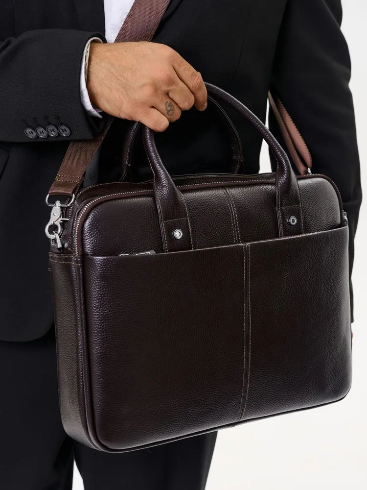 Кожгалантерея FAUSTINI FAUSTINI — это бренд изделий из натуральной кожи, который сочетает европейские стандарты качества, долговечность материалов и внимание к деталям. Продукция FAUSTINI создаётся для тех, кто ценит надёжность, функциональность и эстетичный внешний вид кожаных аксессуаров. Каждое изделие проходит строгий контроль качества: от отбора сырья до финального этапа обработки. Натуральная кожа премиального класса обеспечивает долгий срок службы, сохраняет форму, не трескается и со временем приобретает благородный внешний вид. FAUSTINI делает акцент на практичности — продуманная внутренняя организация, прочная фурнитура, надёжная прошивка и современные технологии обработки кожи делают каждую модель бренда долговечной и комфортной в использовании. Сумка для документов кожаная FAUSTINI Стильный и вместительный портфель FAUSTINI выполнен из высококачественной натуральной кожи с приятной зернистой текстурой. Он идеально сочетает солидный внешний вид, долговечность и практичность — это аксессуар, который подчёркивает статус и подходит как для ежедневной работы, так и для деловых встреч. Корпус портфеля выполнен из плотной, износостойкой кожи, которая не трескается, держит форму и со временем приобретает благородный оттенок. Мягкие удобные ручки и прочный регулируемый ремень обеспечивают комфорт при ношении в руке или на плече. Внутреннее пространство продумано до мелочей: отделения позволяют удобно разместить ноутбук, документы формата А4, блокнот, зарядку и личные вещи. Внешний карман на молнии обеспечивает быстрый доступ к часто используемым предметам. Металлические элементы изготовлены из прочной фурнитуры: замки работают плавно, а карабины надёжно фиксируют ремень. Портфель выполнен в лаконичном современном дизайне, который подходит как мужчинам, так и женщинам. Преимущества портфеля: ✔ Натуральная кожа премиум-класса ✔ Вместительный и продуманный функционал ✔ Прочная фурнитура и усиленные швы ✔ Подходит для ноутбука и документов ✔ Удобные ручки и съёмный ремень ✔ Подходит для офиса, путешествий и повседневного использования ✔ Стильный внешний вид, подчёркивающий статус владельца Стильный лаконичный дизайн Регулируемый ремень в комплекте Удобная внутренняя организация Поддержка и помощь в любой ситуации! Если качество товара вас не устроило или возникли любые сложности, пожалуйста, напишите нам в чат продавца — мы обязательно поможем решить ваш вопрос.