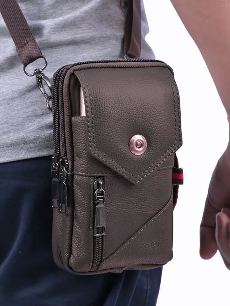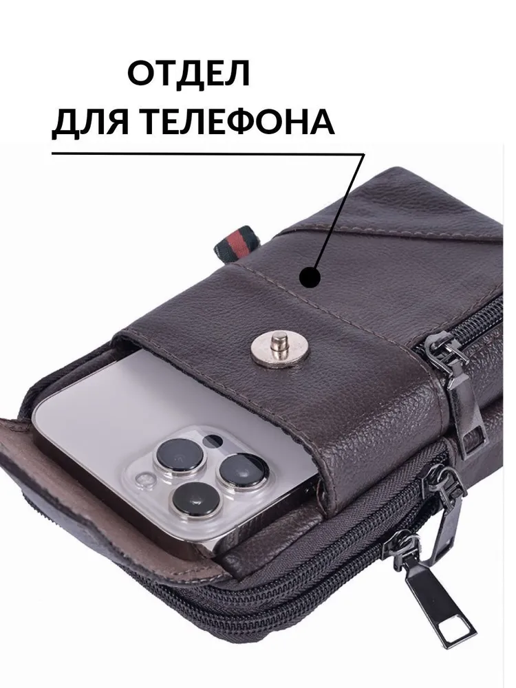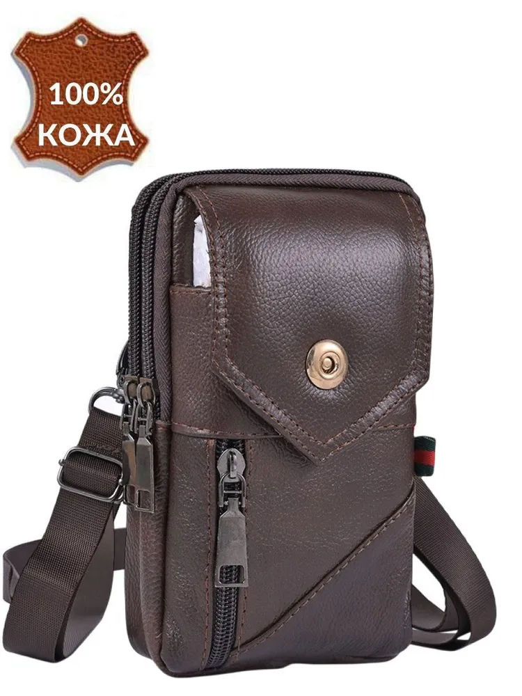 Компактная мужская поясная сумка изготовлена из качественной натуральной кожи. Сумка имеет размеры 20*10*6 см, при этом она очень функциональна и вместительна для своих размеров: она имеет 2 внутренних отделения и 2 наружных. Сумка может носится через плечо так и на поясном ремне. Мужская сумка маленькая - сумка-чехол - отличный вариант, когда необходимо взять с собой небольшое количество вещей! Сумка на плечо мужская с лёгкостью вмещает документы, телефон, блокнот и кошелёк! Классическая поясная сумка (сумка-органайзер для телефона) подойдёт для хранения самых необходимых в повседневной жизни вещей. Сумка через плечо мужская - это отличный подарок брату, папе, дедушке, другу, коллеге мужчине на 23 февраля, новый год, день рождения или день отца.