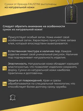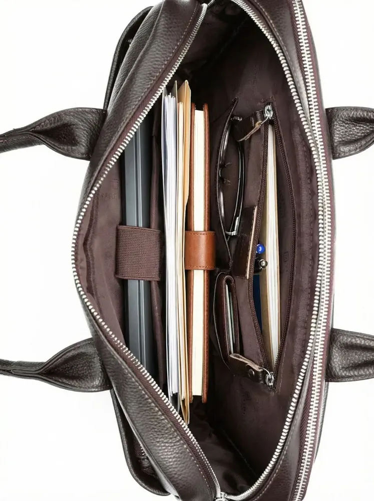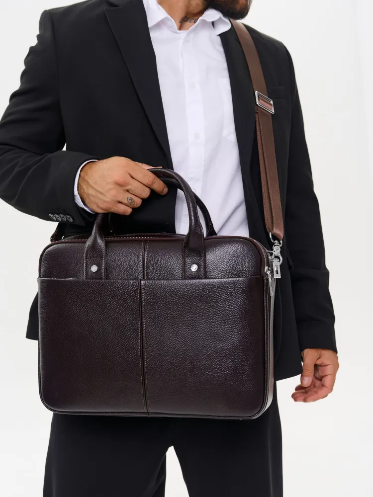 Сумка для документов кожаная FAUSTINI Сумка мужская кожаная для документов Faustini — идеальный выбор для современных мужчин, которые ценят стиль и функциональность. Эта сумка на плечо станет вашим надежным спутником в деловых поездках, учебе или повседневной жизни. Изготовленная из высококачественной кожи, она не только привлекает внимание своим элегантным дизайном, но и обеспечивает долговечность и практичность. Сумка подходит для документов формата А4, что делает её отличным аксессуаром для хранения важных бумаг, ноутбука и других необходимых предметов. Удобные внутренние и внешние карманы помогут вам организовать пространство и быстро находить нужные вещи. Несмотря на компактные размеры, вместительность этой модели вас приятно удивит. Классический портфель мужской кожаный дополнит ваш образ, независимо от стиля одежды. Он подходит как для деловых встреч, так и для повседневного ношения, подчеркивая ваш статус и вкус. Сумка для документов также станет прекрасным подарком для друзей, коллег или родственников, которые ценят качество и стиль. Одним из ключевых достоинств этой модели является её универсальность. Она легко сочетается с любыми нарядами: от строгих костюмов до casual-образов, добавляя изысканности и шарма. Вы можете носить её на плече или в руке, в зависимости от ваших предпочтений. Не упустите возможность приобрести эту великолепную сумку для документов, которая станет не только практичным аксессуаром, но и стильным элементом вашего гардероба. Она отвечает всем требованиям современных мужчин и станет отличным дополнением к вашему образу, обеспечивая при этом надежность и комфорт в использовании.