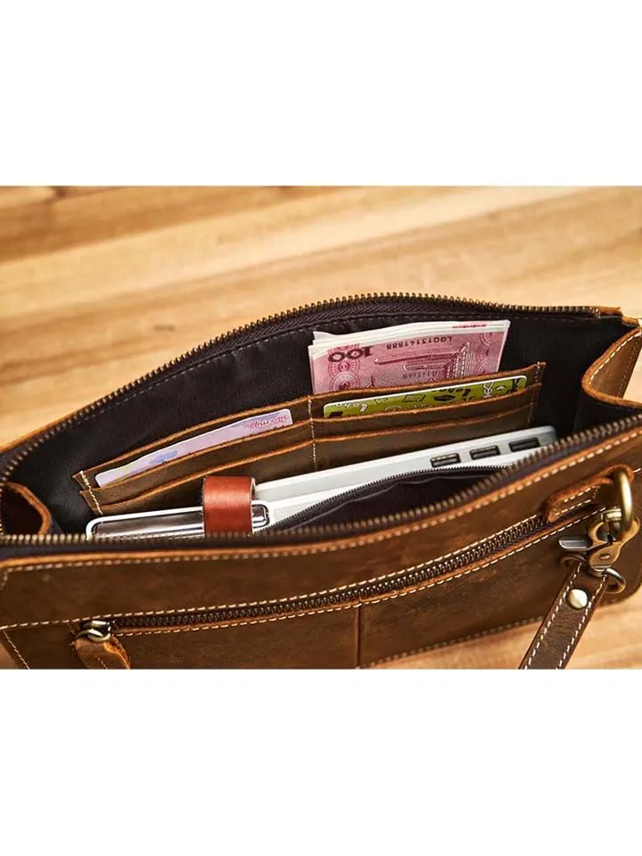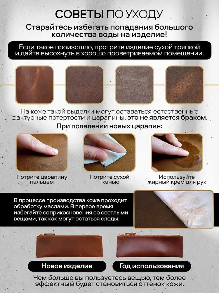 Информация о продукте Материал: Натуральная кожа (отделка кожей) Подкладка полиэфирное волокно Стиль: простой, повседневный, деловой Вес: около 0,4 кг Размер: 27*17*6,5 см Пол: Мужской Особенности продукта (1) Удобно для путешествий, есть шесть карманов для карт, один карман на молнии и один карман для мобильного телефона внутри и один карман на молнии снаружи. (2) Высокое качество аппаратных средств, молния металлическое покрытие, более прочный. (3) Полный процесс защиты от подделок, нелегко упасть. (4) Кожаные ручки, универсальное оборудование, легко разобрать (5) Подходит для 7,9-дюймового iPad. Список упаковки 1 x Сумка-клатч 1 x Ремешок для руки Теплые советы. (1) 1 дюйм = 2,54 см, 1 см = 0,39 дюйма. (2) Цвета могут немного отличаться из-за различных настроек монитора компьютера. (3) Из-за различных методов измерения, размер будет иметь отклонение 1-3 см.