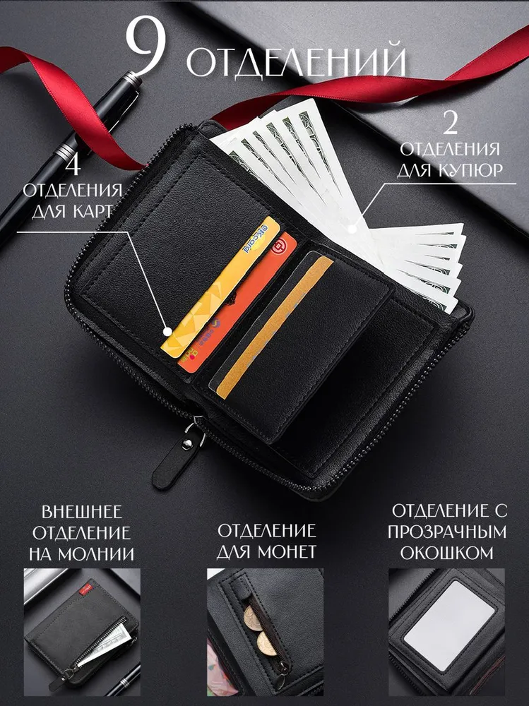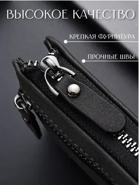 PREMIUM ЭКОКОЖА Кошелёк из премиальной экокожи сочетает в себе натуральную текстуру и мягкость, обеспечивая элегантный внешний вид и приятные тактильные ощущения. Материал устойчив к износу, легко очищается и сохраняет презентабельный вид даже при ежедневном использовании. ПРОЧНЫЕ ШВЫ Аккуратная строчка с усиленной нитью обеспечивает долговечность изделия и сохраняет форму кошелька даже при интенсивном использовании. ОБРАБОТАННЫЕ КРАЯ Края изделия тщательно обработаны и заполированы, что защищает материал от расслаивания и придаёт кошельку опрятный, завершённый вид. КРЕПКАЯ ФУРНИТУРА Фурнитура выполнена из прочного металлического сплава — устойчива к износу, не теряет блеска и гарантирует долгий срок службы. КОМПАКТНЫЙ И ВМЕСТИТЕЛЬНЫЙ Всё самое важное — под рукой. Продуманная организация и крепкая молния обеспечивают быстрый доступ и безопасность ваших вещей. ПОДАРОЧНАЯ УПАКОВКА Коробка из крафтового картона защищает изделие при транспортировке и делает его идеальным решением для подарка без лишней упаковки.