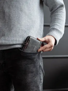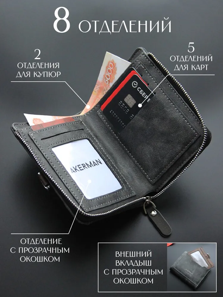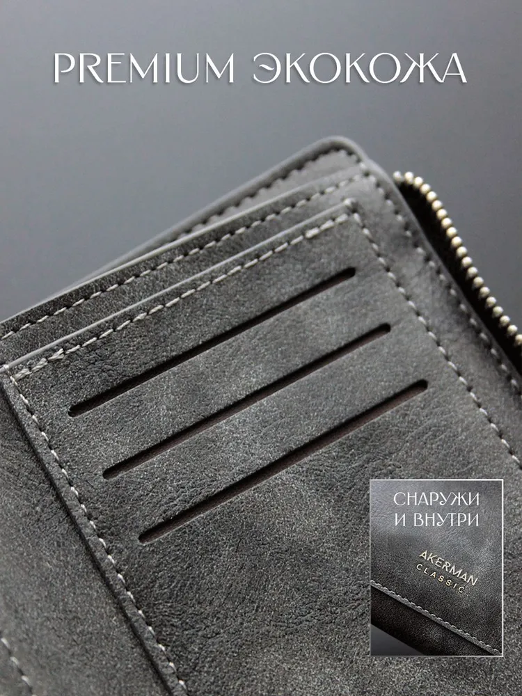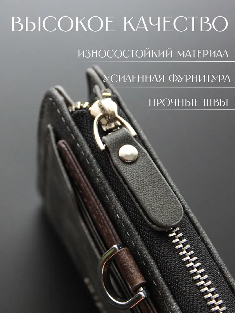 PREMIUM ЭКОКОЖА Натуральная фактура, приятная на ощупь и устойчивая к износу. Не выгорает, не трескается, легко очищается. ПРОЧНЫЕ ШВЫ Качественная прошивка нитями повышенной прочности предотвращает расхождение краёв и обеспечивает долгий срок службы изделия. Точные, ровные стежки сохраняют форму кошелька и подчёркивают его аккуратный внешний вид даже при активной эксплуатации. ОБРАБОТАННЫЕ КРАЯ Аккуратно обработанные края надёжно защищены от расслаивания и износа, что продлевает срок службы изделия. Ровная, гладкая кромка придаёт кошельку опрятный вид и подчёркивает внимание к деталям. КРЕПКАЯ ФУРНИТУРА Крепкая металлическая фурнитура устойчива к износу и не поддаётся коррозии, обеспечивая надёжную работу на протяжении всего срока службы. Замки и кнопки фиксируются чётко и без заеданий, подчёркивая практичность и качество изделия. КОМПАКТНЫЙ И ВМЕСТИТЕЛЬНЫЙ Кошелёк сочетает компактные размеры с продуманной вместимостью — он легко помещается в карман брюк или куртки, не утяжеляя образ. Внутреннее пространство организовано так, чтобы удобно разместить купюры, карты, монеты и мелкие документы. ПОДАРОЧНАЯ УПАКОВКА Фирменная подарочная упаковка обеспечивает надёжную защиту при транспортировке и сразу создаёт эффект презентабельности. Кошелёк готов к вручению — без необходимости в дополнительной обёртке или пакете.
