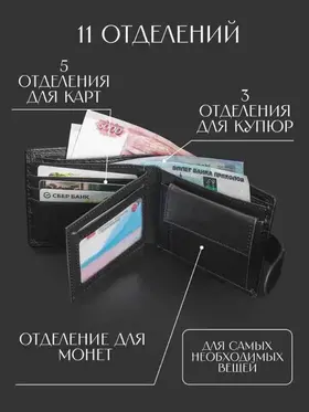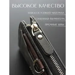 Стильный кошелек мужской из премиальной экокожи – идеальный выбор для современного мужчины, ценящего удобство и организованность в повседневной жизни. Это практичное портмоне обеспечивает надежное хранение личных вещей, гарантируя их сохранность и долговечность. Качественная не натуральная, а искусственная кожа гарантирует долговечность клатча и его презентабельный внешний вид на протяжении долгого времени. Бумажник предлагает продуманную организацию пространства: удобное отделение для денег, множество слотов для банковских карт и практичный карман для мелочи. Компактные размеры кошелька позволяют легко разместить его в кармане куртки или брюк, что делает кожаный кошелек идеальным спутником для активного образа жизни. Благодаря функциональной конструкции картхолдер мужской обеспечивает удобное хранение автодокументов и документов. Маленький и компактный кошелек мужской на застежке для карт представляет собой оптимальное решение для мужчин, ценящих стиль и функциональность аксессуаров. Выбирая данный лопатник, вы приобретаете надежного спутника для повседневных задач. Мини кошелек мужской станет органичной частью вашего имиджа, подчеркивая внимание к деталям. Функциональный гаманок помогает поддерживать порядок и быстрый доступ к необходимым вещам