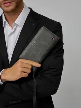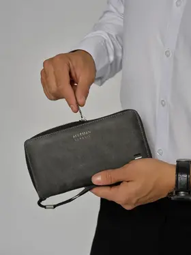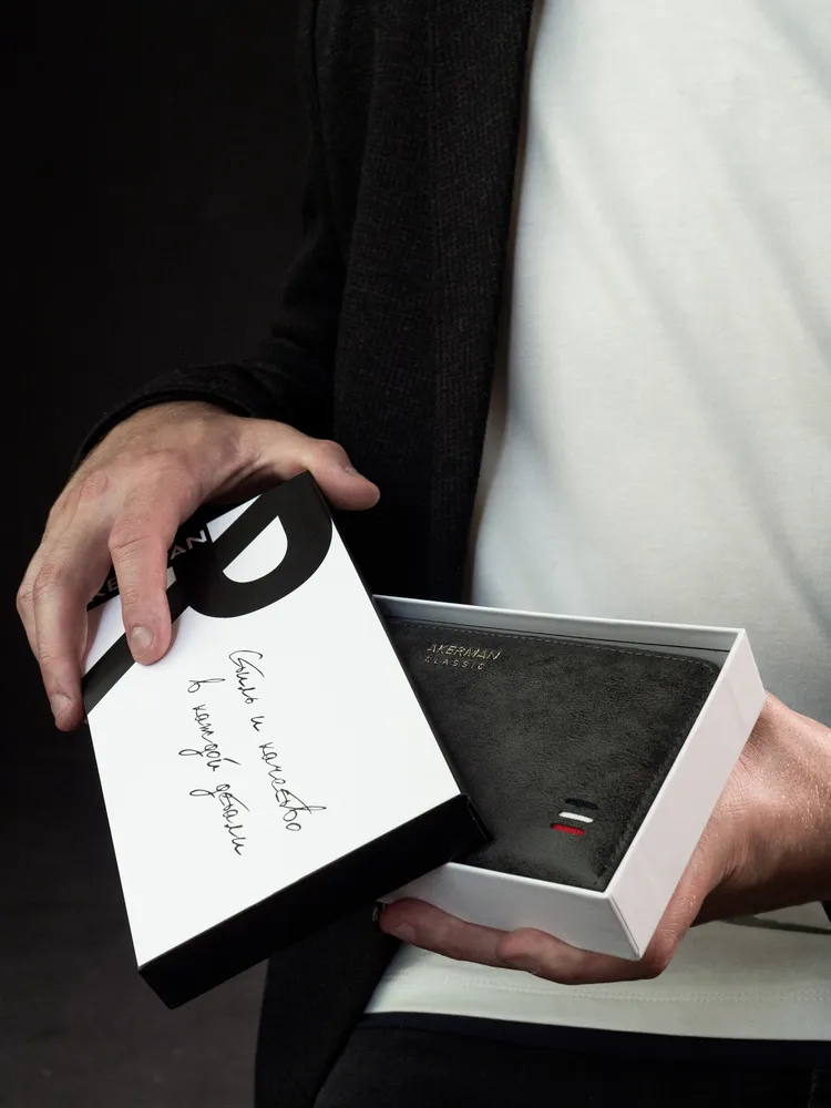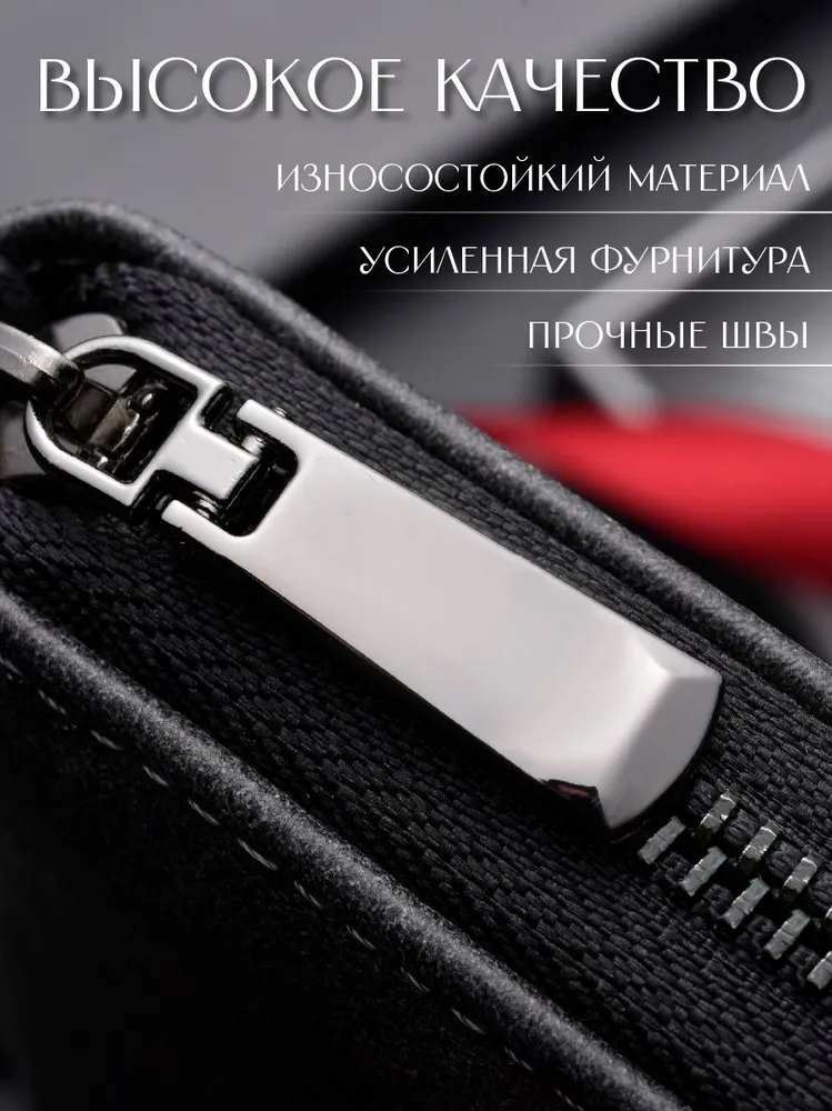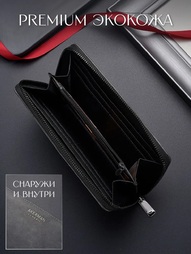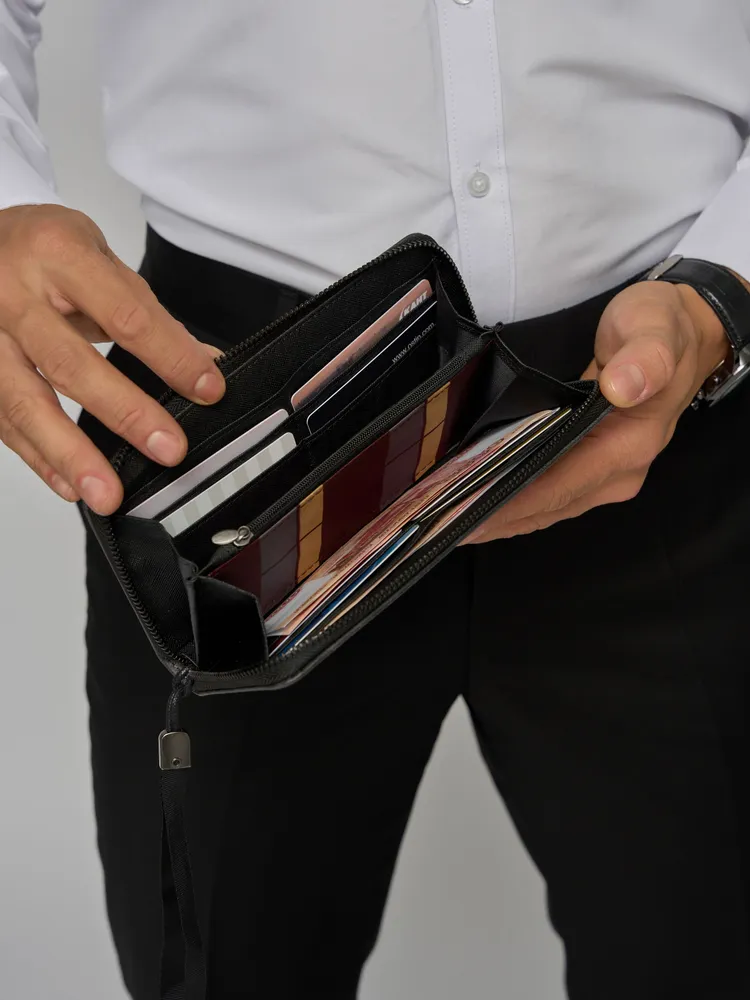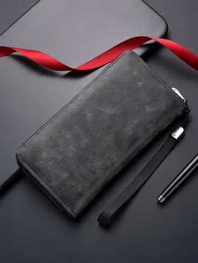 Стильный мужской кошелек портмоне из искусственной кожи Этот кошелек изготовлен из высококачественной искусственной кожи, которая выглядит роскошно и прослужит долгие годы. Материал легко чистится и не теряет своего внешнего вида со временем. Удобство и функциональность В портмоне 14 отделений, в которых у вас будет место для всех ваших карточек, денег и мелочи. Благодаря удобному размеру в нём можно хранить телефон, паспорт и водительские документы. Стильный дизайн Этот кошелек не только функционален, но и стильно выглядит. Он дополнен элегантным ремешком на запястье, который придает образу завершенность. Будьте уверены, что с таким аксессуаром вы будете выглядеть стильно в любой ситуации. Подарочная упаковка Стильная упаковка из крафтового картона позволяет не только безопасно доставить товар, но и презентовать его в качестве подарка.