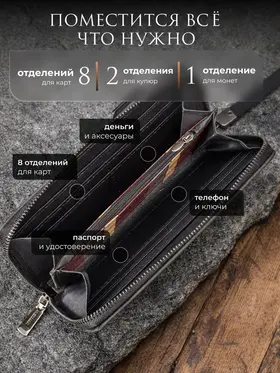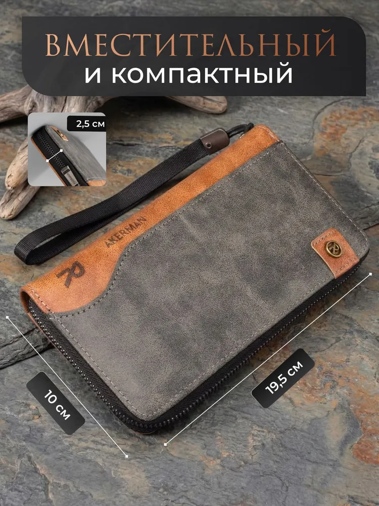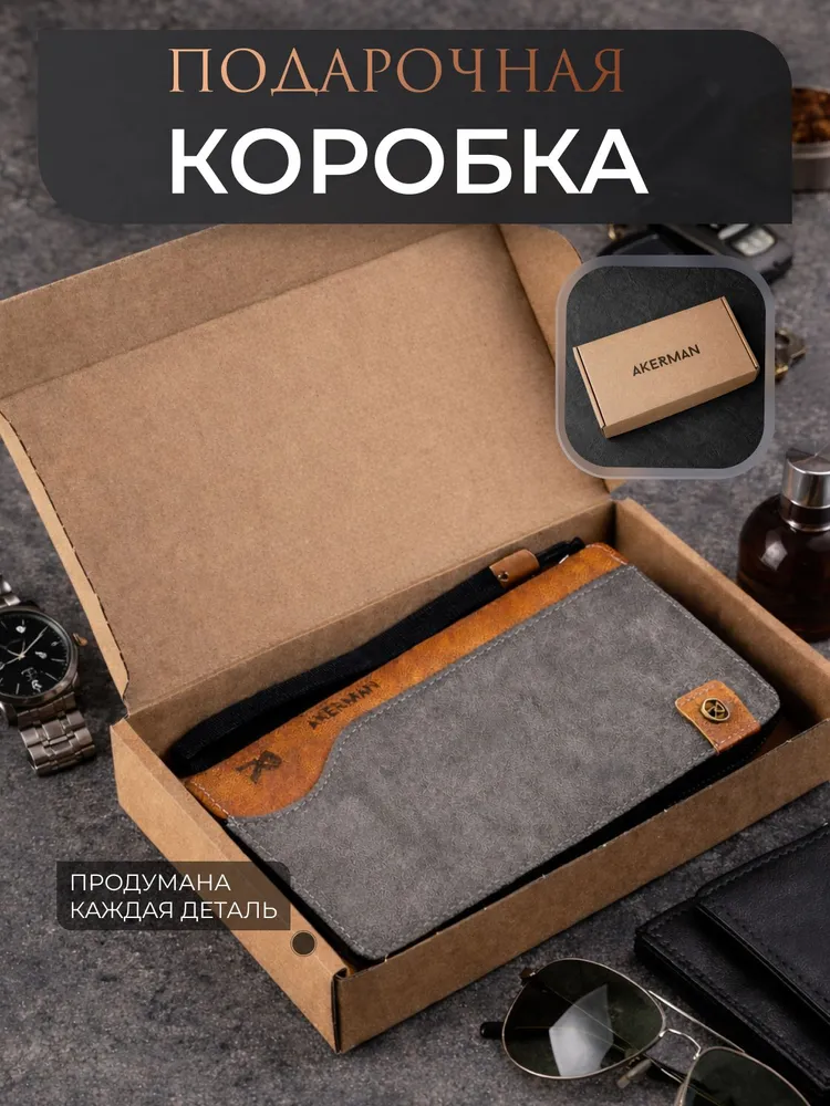Практичный и стильный мужской кошелек из натуральной кожи – идеальный вариант для любого мужчины. Этот универсальный аксессуар отлично подходит для надежного хранения денег, банковских карт, купюр и мелочи. Компактный размер кошелька обеспечивает удобное использование, он комфортно лежит в руке и не занимает много места в кармане брюк или куртки. Качественная экокожа гарантирует долговечность изделия и его презентабельный внешний вид на протяжении долгого времени. Мужской кошелек wallet разработан с учетом современных потребностей: он включает удобные отделения для купюр, монет, множества банковских карт. Надежная молния обеспечивает безопасность содержимого, предотвращая выпадение, что делает этот портмоне максимально функциональным для повседневного использования. Лаконичный дизайн мужского кошелька подчеркнет индивидуальность владельца. Стильная упаковка придает бумажнику завершенный вид и подчеркивает его статусность. Этот тип мужского кошелька остается востребованным аксессуаром для подростков и зрелых мужчин. Универсальный серый цвет делает портмоне идеальным решением для сочетания с деловым костюмом или повседневным стилем одежды. Бумажник отличается продуманным дизайном, практичностью и надежностью. Вместительный кожаный кошелек обеспечивает комфортное хранение наличных средств и важных карточек в одном месте, легко помещается в карман. Прочный материал сохраняет отличный вид даже при активной ежедневной эксплуатации.