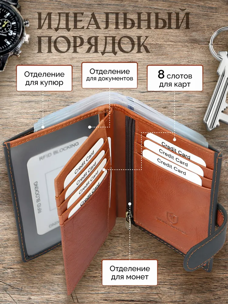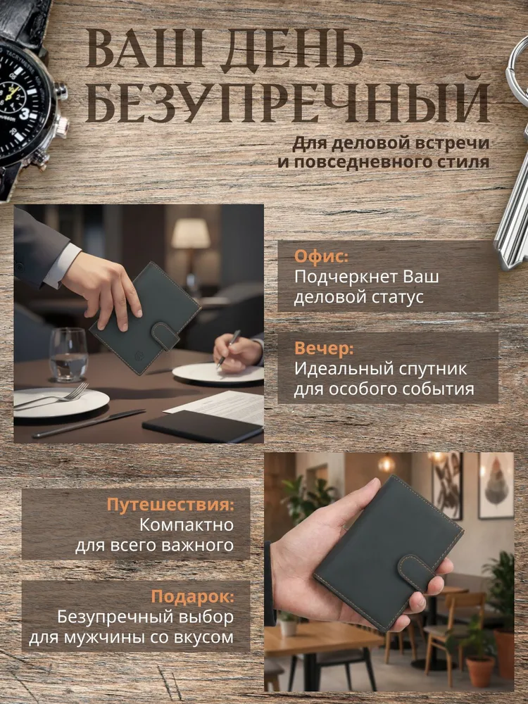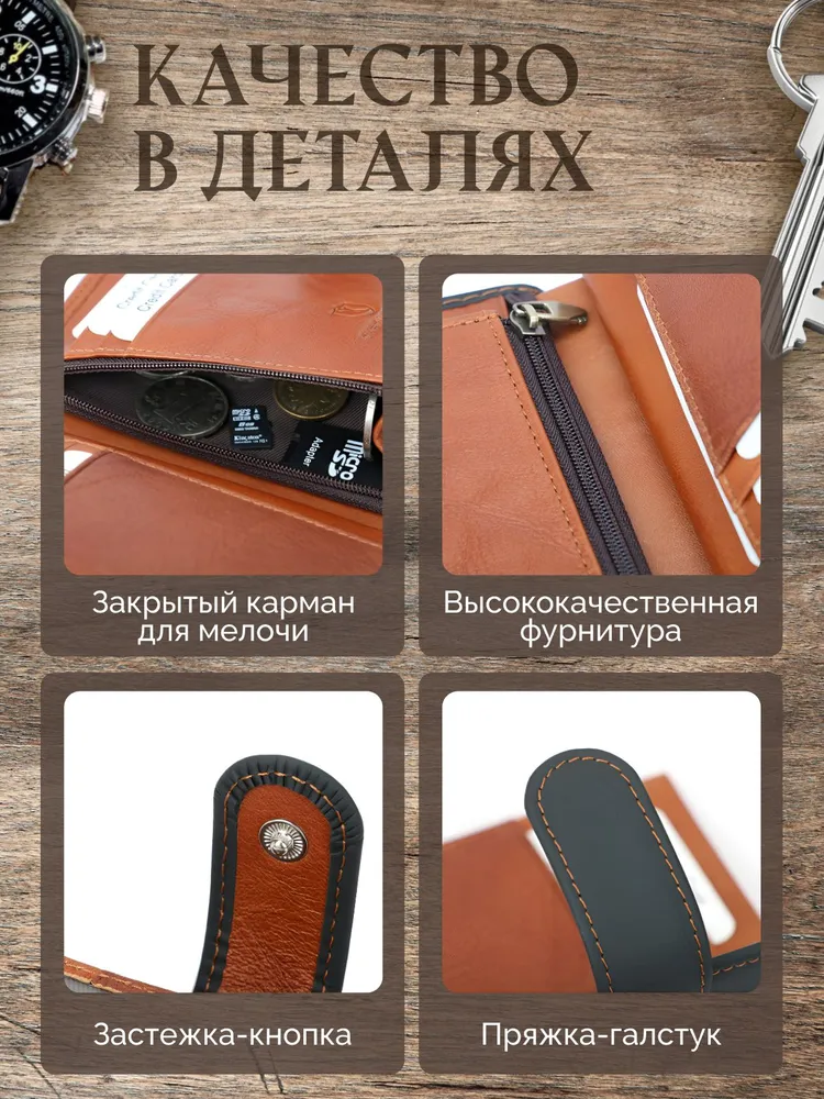 Удобный размер Кожаное портмоне — это идеальное сочетание стиля, удобства и функциональности. Оно прекрасно подойдёт для хранения самых необходимых вещей: денег, банковских карт, визиток и даже паспорта. Благодаря компактному размеру портмоне легко помещается в карман или сумку, что делает его незаменимым аксессуаром для повседневного использования. Качество Кожаное портмоне — стильный и надёжный аксессуар. Ровные швы обеспечивают прочность и долговечность. Вместительный и функциональный Кожаное портмоне — практичный аксессуар с продуманной организацией пространства. Внутри: отделение для паспорта, несколько слотов для банковских карт, вместительное отделение для купюр и удобный карман для мелочи. Компактный размер позволяет носить его в кармане или сумке.