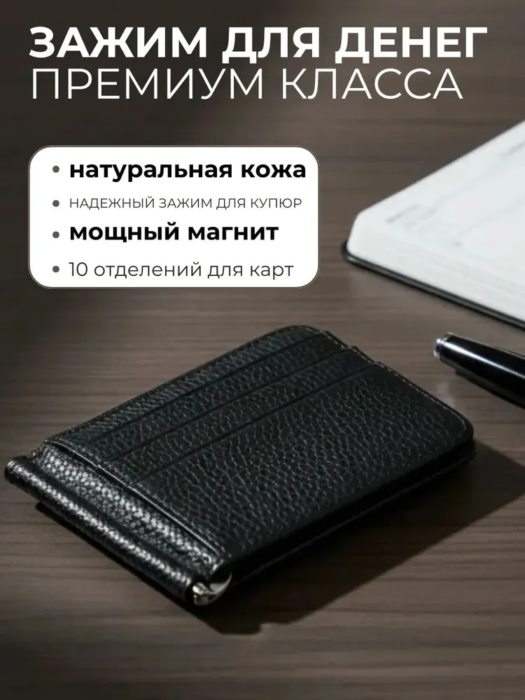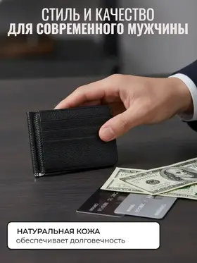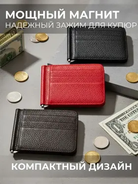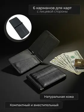 Зажим для денег очень удобный и приятный на ощупь, а его компактный размер позволяет без затруднений носить его с собой в любом кармане. Компактный и элегантный мини кошелёк, выполненный из натуральной кожи. Маленький мужской кошелек имеет несколько отделений для визиток и пластиковых карт, одно отделение для купюр на металлическом зажиме и одно классическое. Стильный кошелек из кожи не будет открываться при большом наполнении, потому что имеет надежный магнитный фиксатор. Такой кожаный мини портмоне отлично подойдёт для тех, кто предпочитает строгий стиль и минимализм. Отличный подарок на любой праздник.
