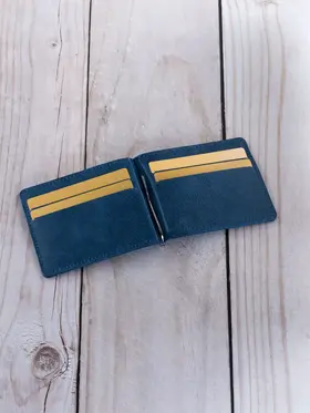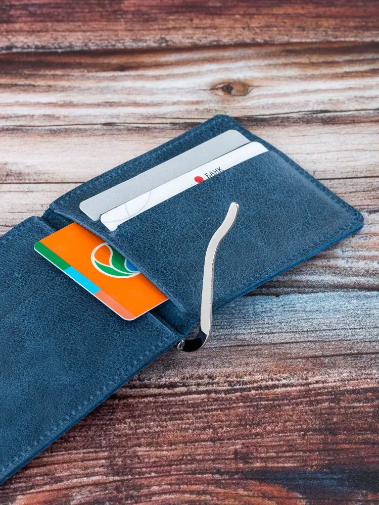 Зажим для купюр из натуральной кожи Зажим для денег выполнен из мягкой натуральной кожи с эффектом "дымка" и украшен тиснением с логотипом бренда. Внутри установлен металлический зажим для купюр который откидывается в 2 положения (до середины и полностью раскрывается). Внутри 4 кожаных кармана для кредитных или скидочных карт и 2 скрытых кармана в которые помещается по 1-3 пластиковой карте. Упакован зажим для банкнот в закрывающуюся коробку из плотного картона с логотипом. Для дополнительной сохранности внешнего вида коробка убирается в полиэтиленовый, прозрачный пакет с клеевым слоем. Размер 11х8,5см. Производство: Россия, Санкт-Петербург.